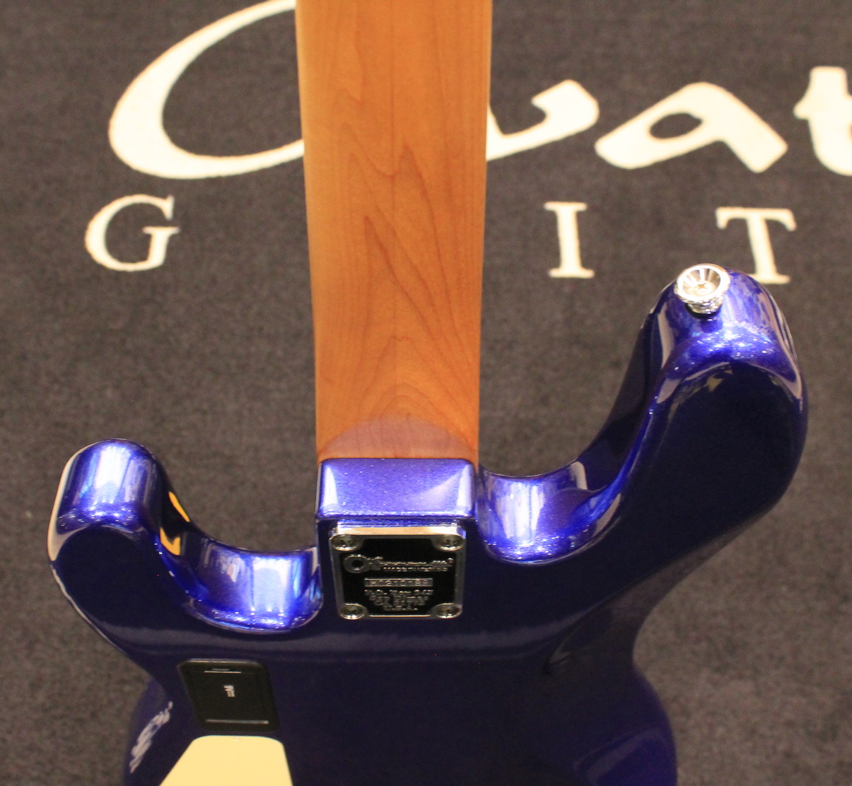 The Charvel speed bolt-on super-thin maple neck is made in the original style, with a beautiful caramel finish, graphite reinforcement, and heel-mounted truss rod wheel for easy adjustment. The caramelized maple fingerboard with a 12“-16” compound radius flattens gradually from the nut to the heel for fast, smooth playing and features rounded edges, 20 jumbo frets, and Luminlay side dots.