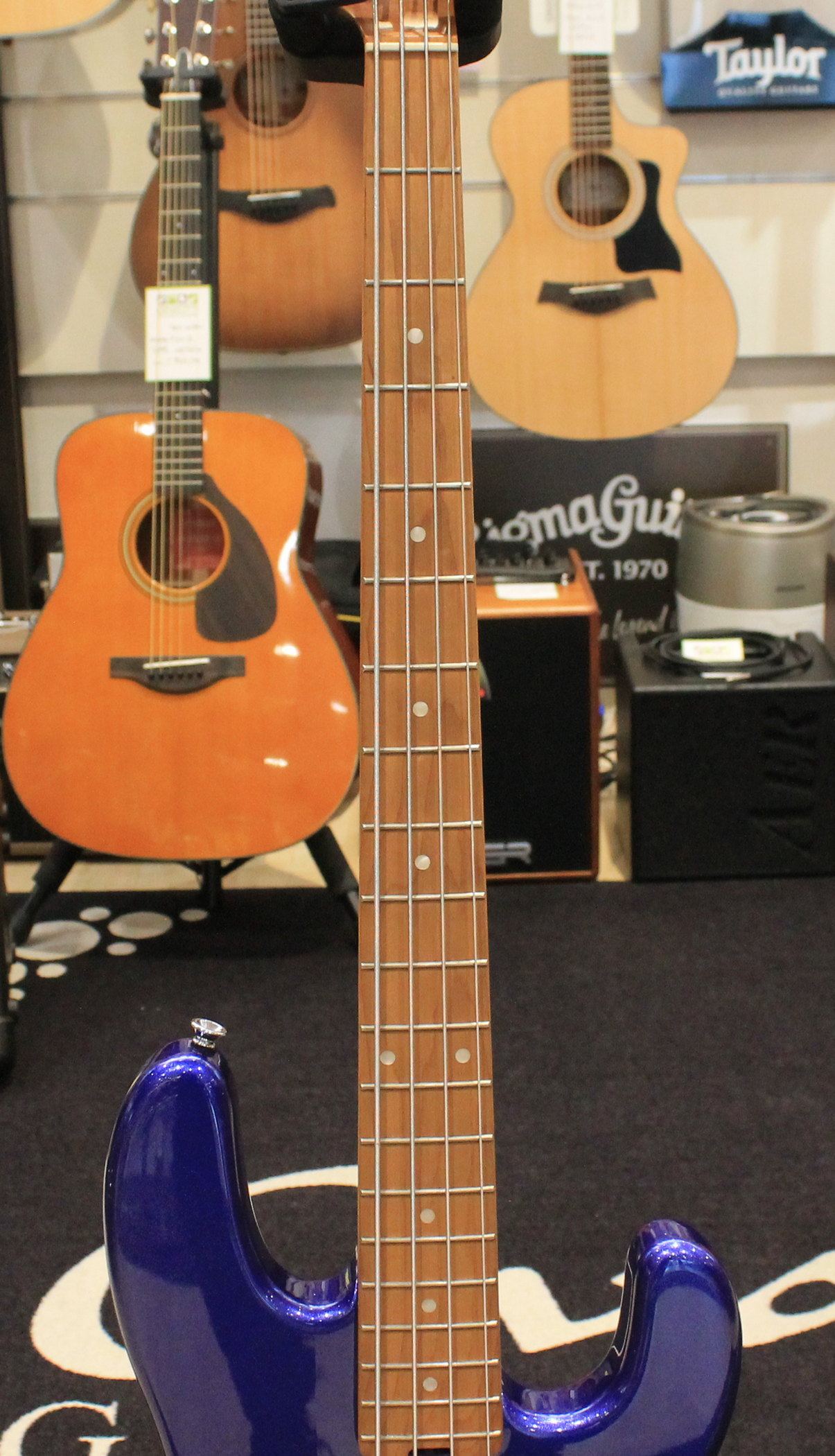 And like the originals, the Pro-Mod San Dimas Bass PJ IV features the powerful voice of DiMarzio pickups: a Model J at the bridge for an all-around punch and a Model P in the middle for a warm, fat sound with a growling midrange when pushed. Versatile electronics include a three-band active EQ, pickup blend control, and a master volume control with push/pull selector. The push/pull selector eliminates the risk of losing sound due to a dead battery, as a quick press of the volume knob bypasses the active EQ circuit and regains bass sound without the use of the battery.