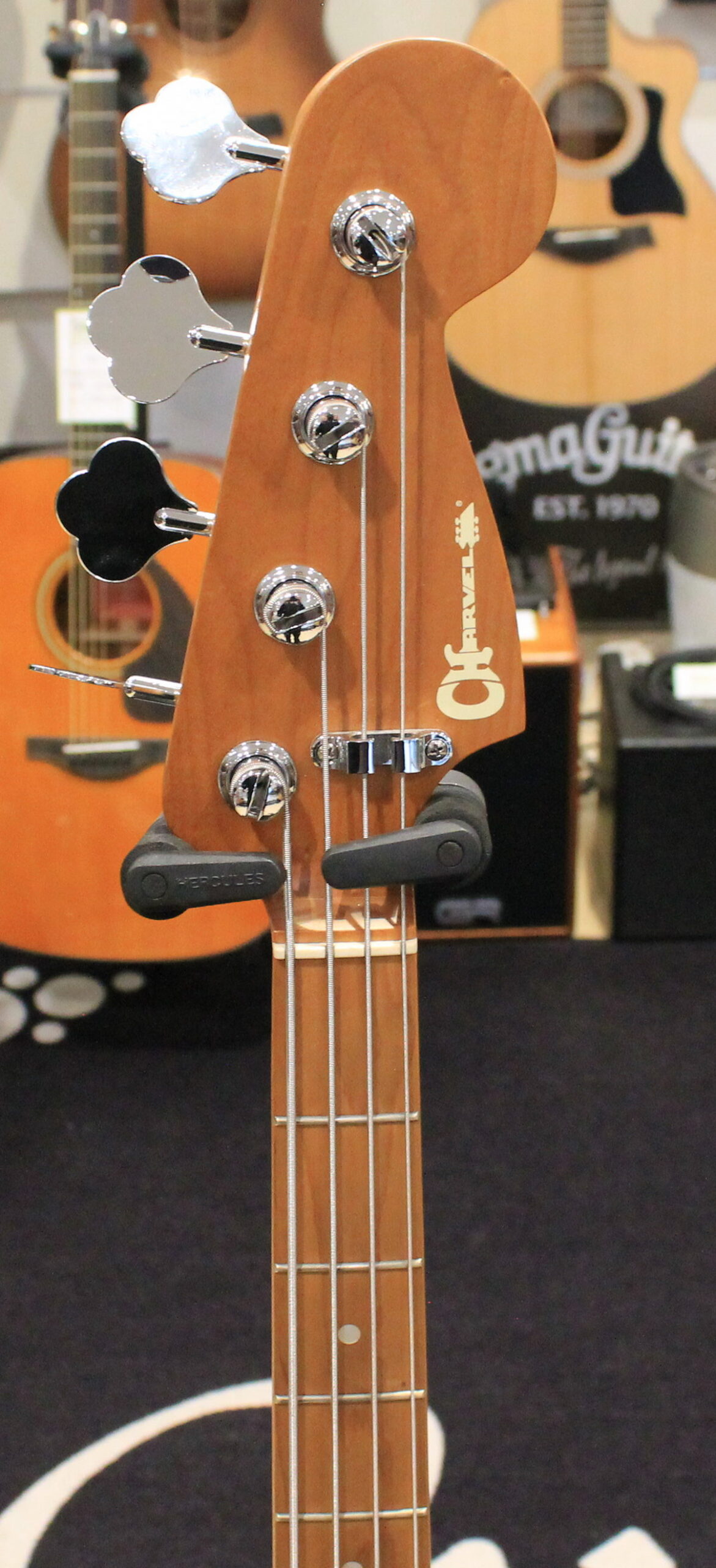 The sleek alder body shape is a direct descendant of the original Charvel San Dimas basses from the late 1970s, with a deeper cutaway that gave adventurous bassists easy access to the upper register.