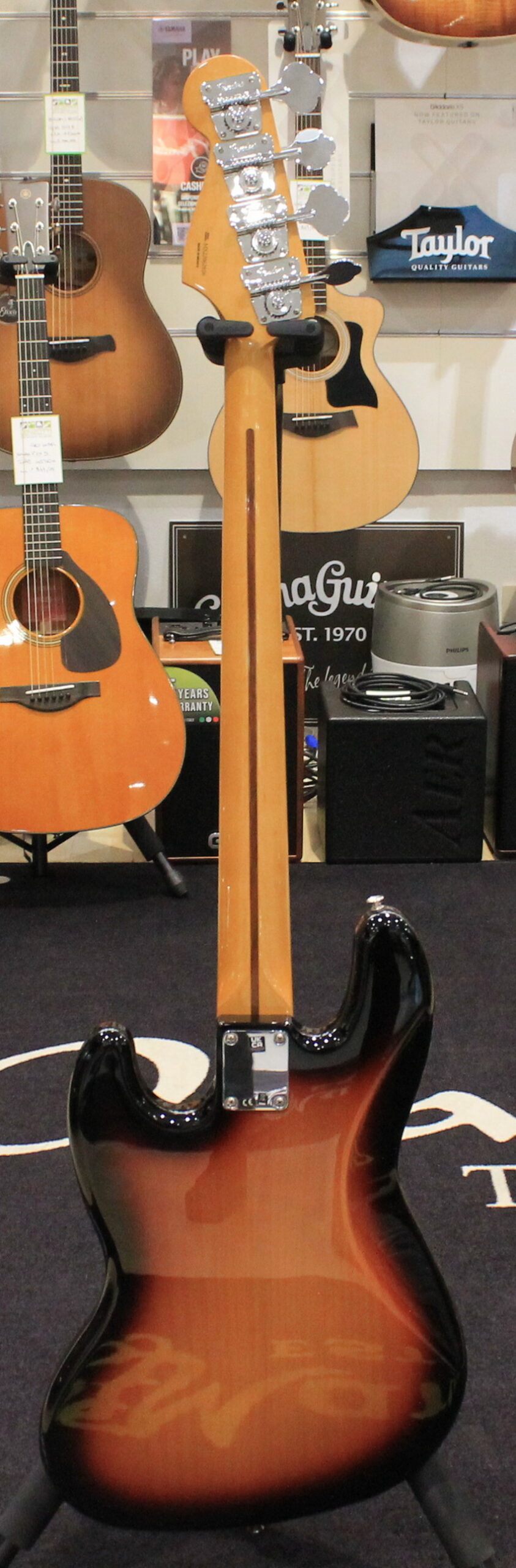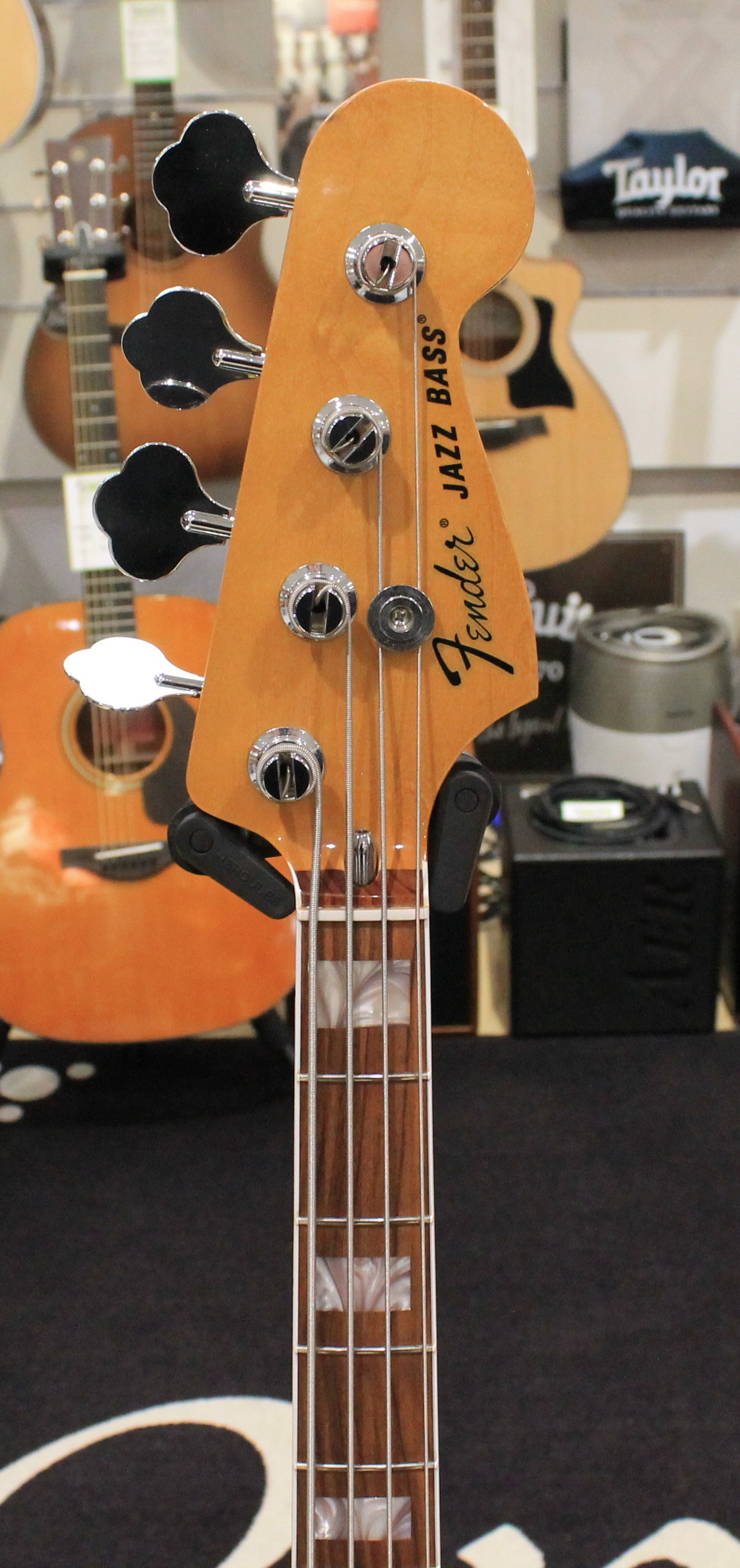 For bass players who want the style and sound of the golden age, Fender has created the Vintera ’70s Jazz Bass. Featuring the coveted characteristics that defined a decade, including the neck profile and period-accurate body, along with re-voiced pickups, this bass has all the growl that made the J Bass famous. For authentic sound, the pair of Jazz Bass single-coil pickups have been optimized to sound like the originals. Gritty and growling, they have the sound that made the J Bass popular. The ’70s C-shaped neck has a 7.25″ radius fingerboard with rectangular mother-of-pearl inlays and 20 vintage-style frets for a classic feel. A vintage-style 4-saddle bridge with open-threaded vintage ’70s-style saddles offers faithful-to-the-original aesthetics, outstanding performance, and tuning stability. Other features include a 34″ scale length, chrome hardware, and a 4-bolt neck plate. Includes a deluxe gig bag.