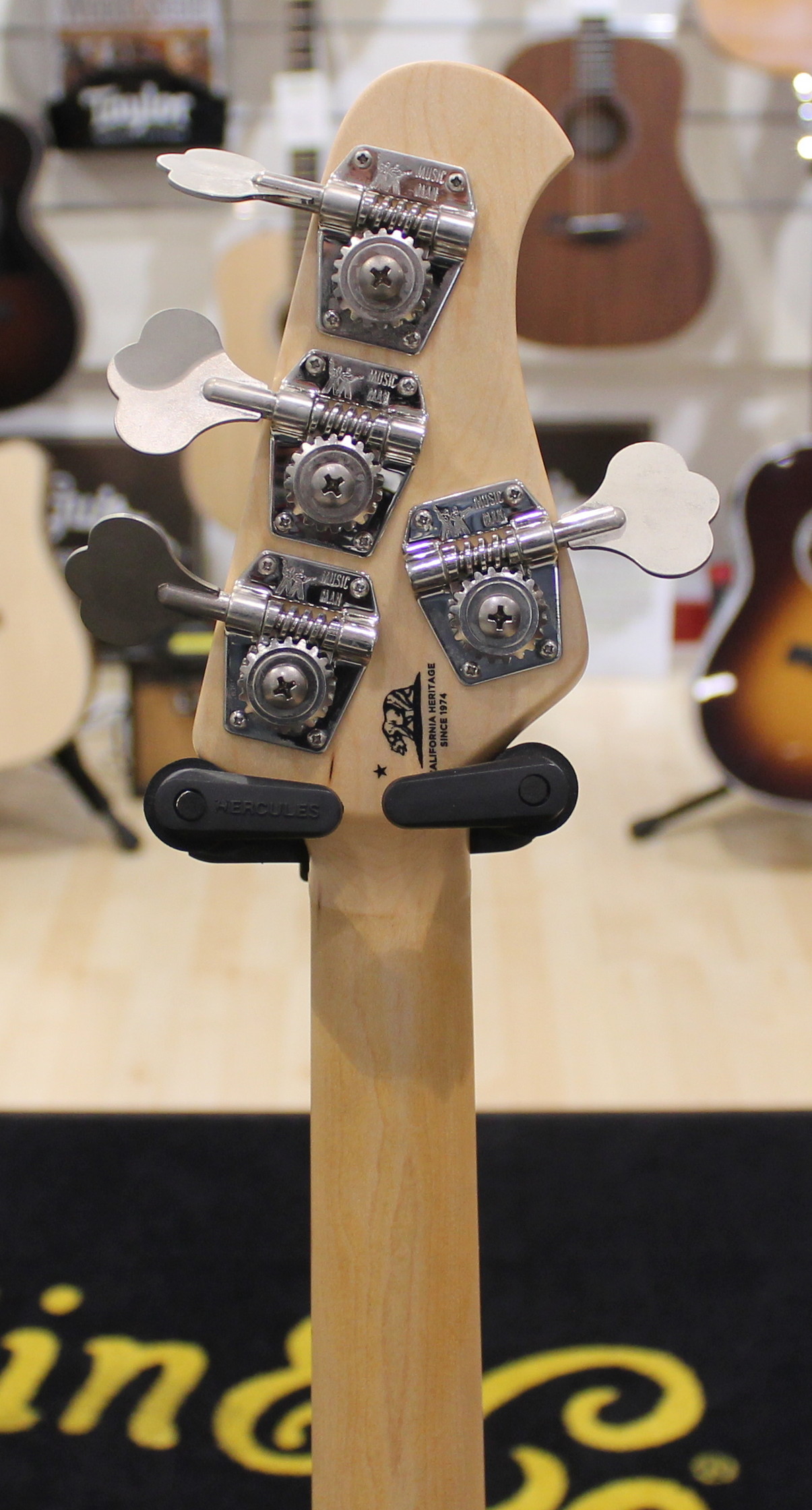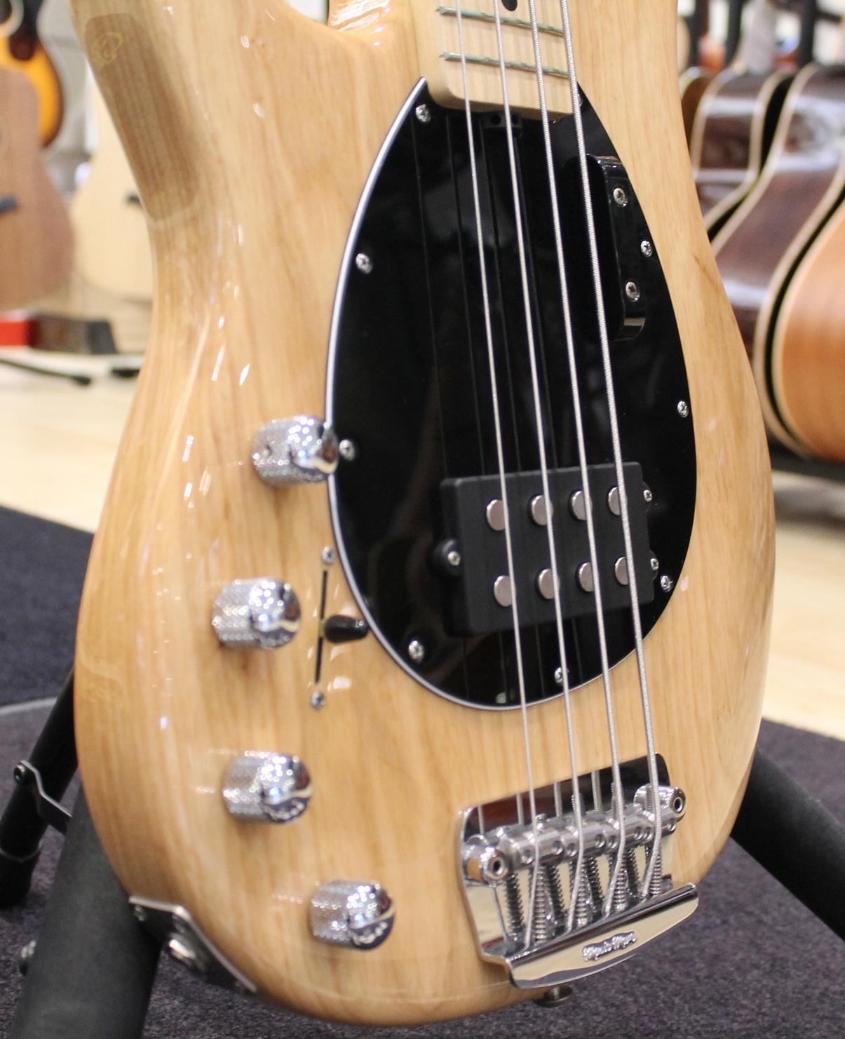 Bridge: Standard – Music Man® chrome-plated, hardened steel plate with stainless steel saddles