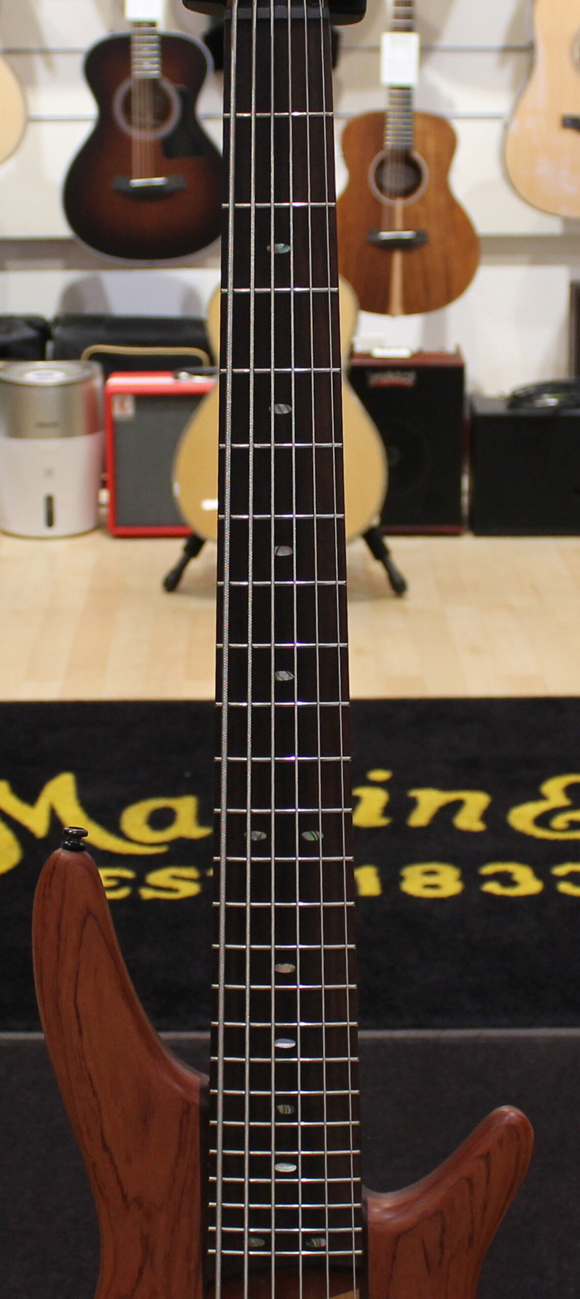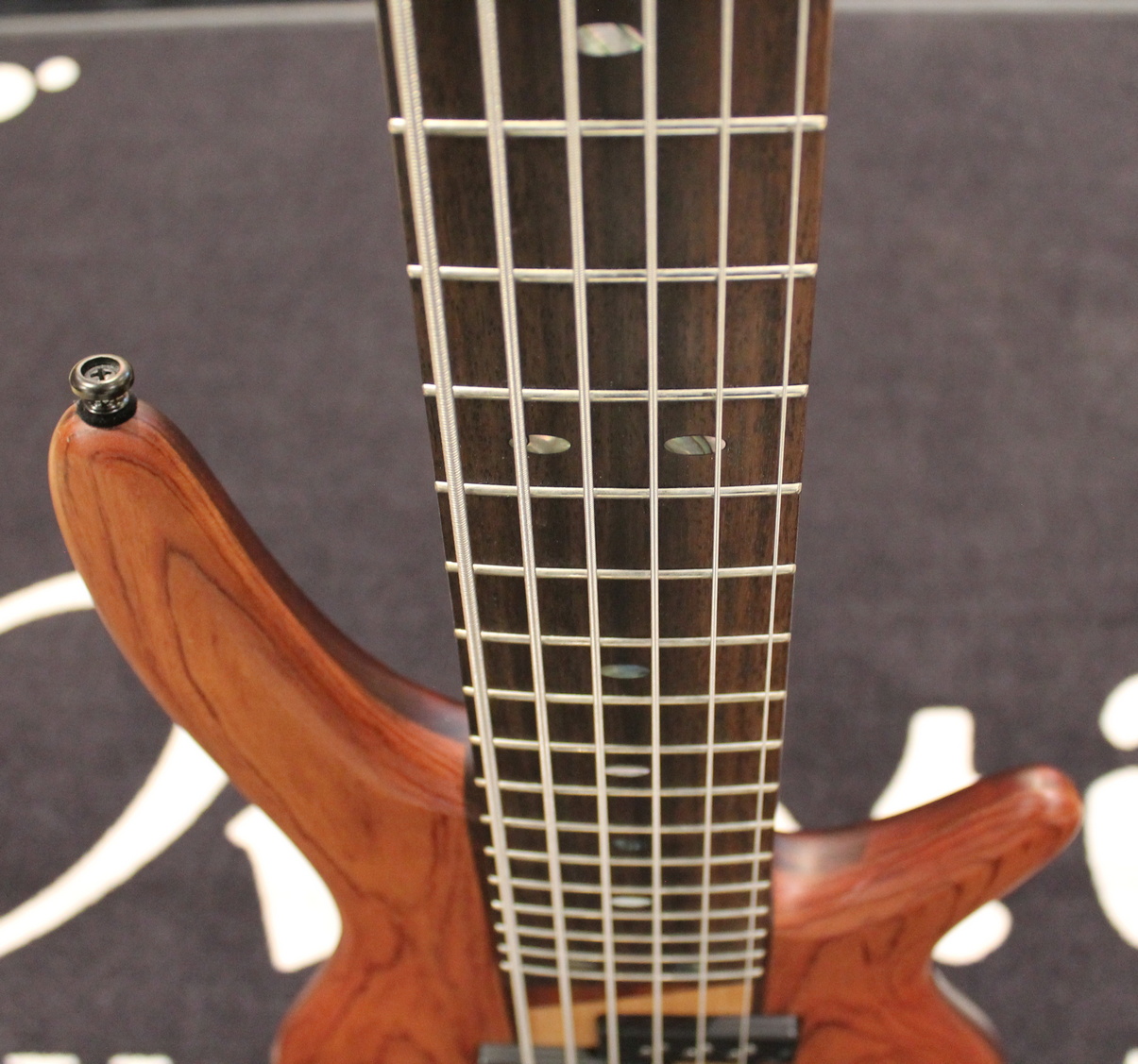 Fretboard: Rosewood, with Ibanez “Oval” inlays of abalone – a very classy looking instrument!