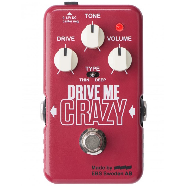 EBS-DMC – Drive Me Crazy – Distorsore per basso e per chitarra – Blue Label Series – Dotato della nuova tecnologia “True Bypass Signal Relay Switching” – Ideale sia live che in studio – Protezione contro il voltaggio eccessivo – Distorsore hi-gain – Design compatto con ingresso jack incassato per ridurre lo spazio occupato sulla pedaliera – Controlli: Drive + Tone + Volume + Type (Thin/Deep) – Switches: On/Off (True Bypass) – Alimentazione: 9-12V DC 30mA max – Dimensioni: 61x110x45mm – Peso: 310g.