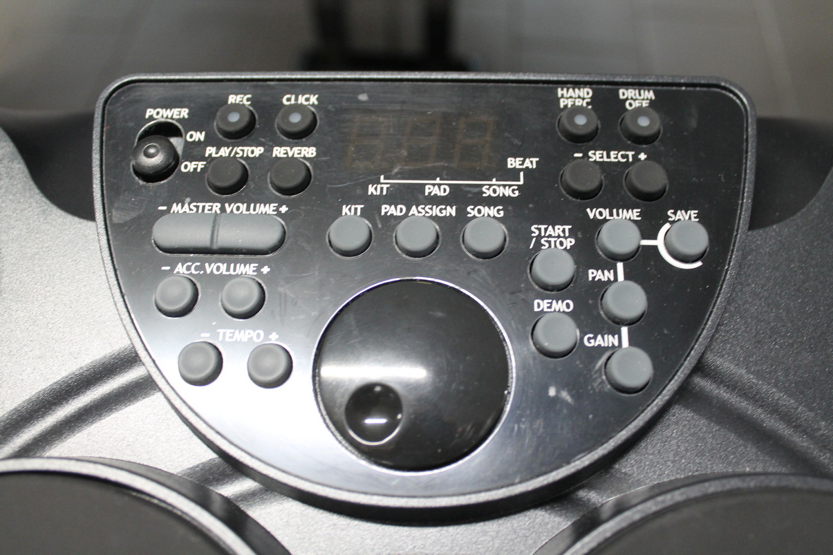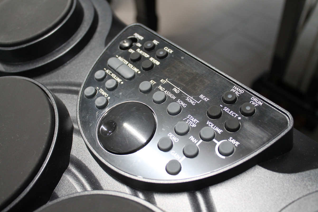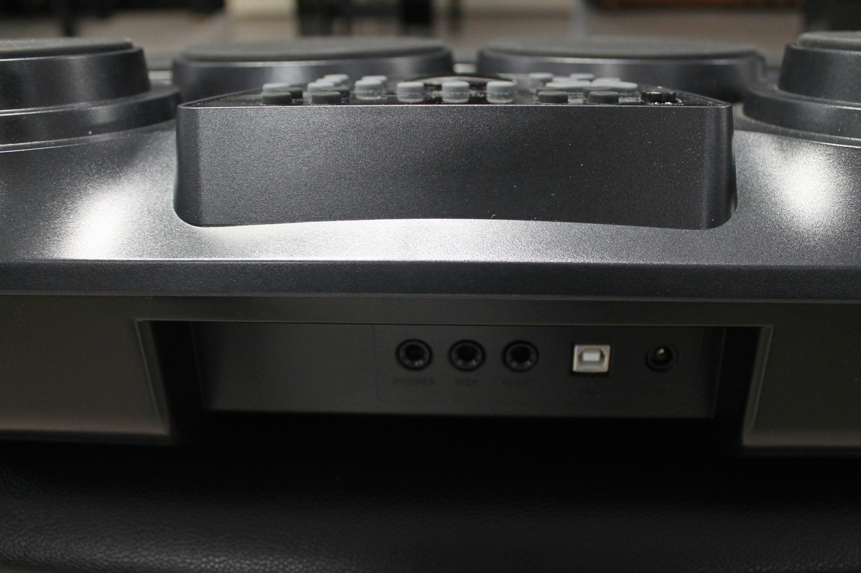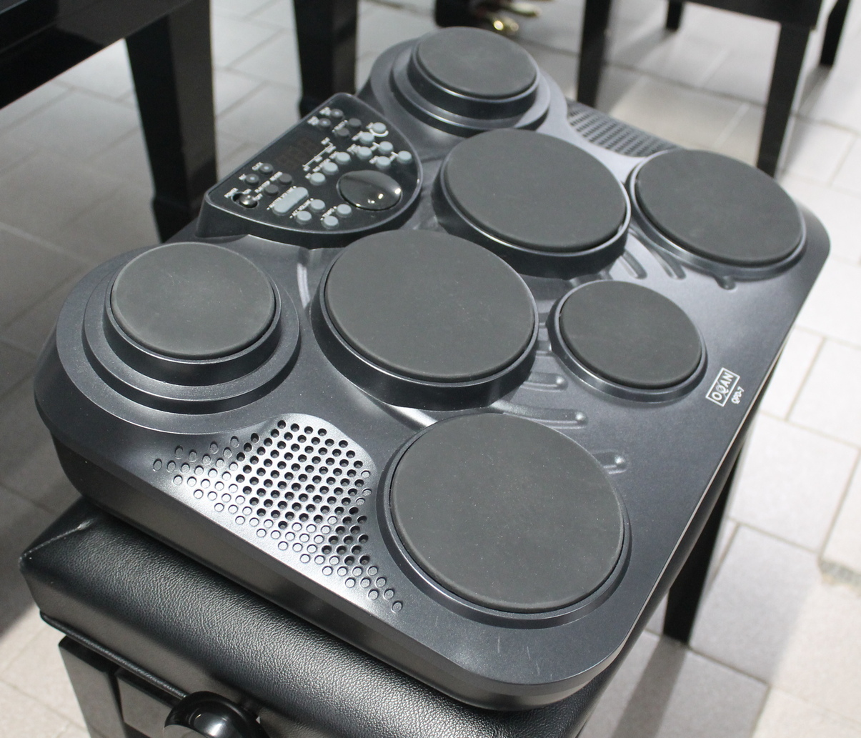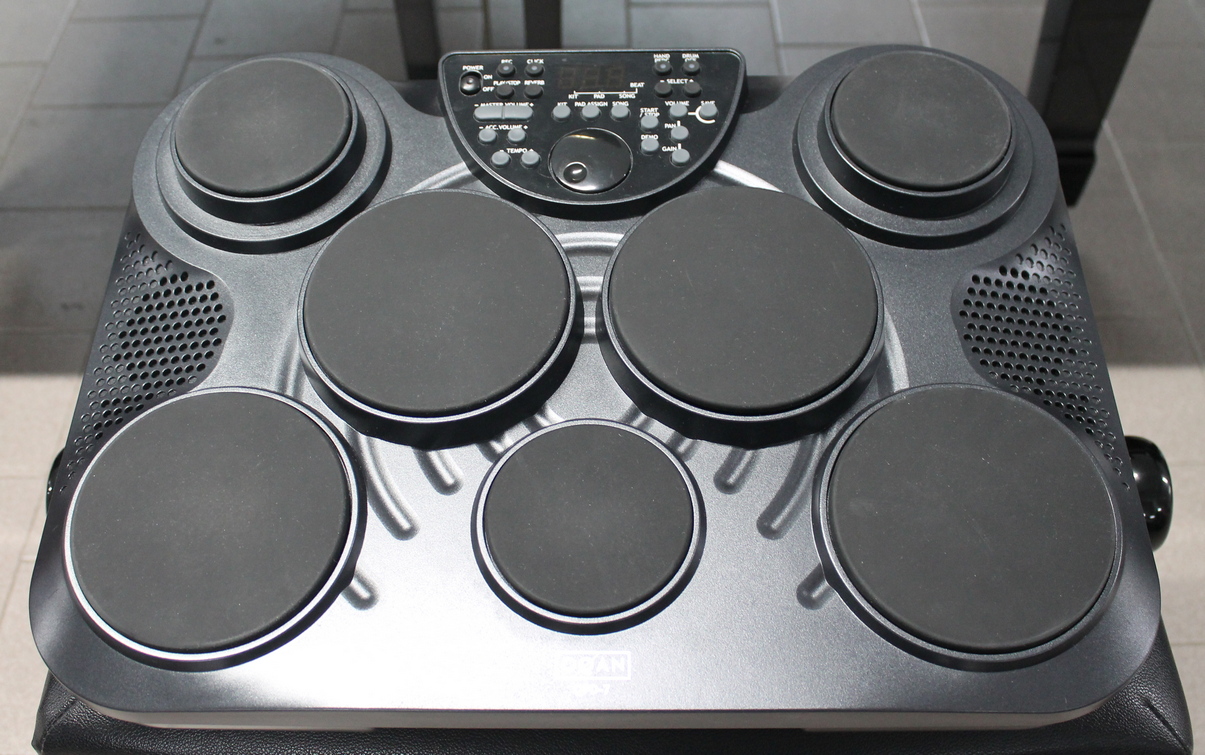 Drum pad set consisting of 7 pads with sensitivity and 2 pedals (Hi Hat and bass drum).215 percussion sounds. 25 predefined drum kits. 5 user kits. 100 tracks.