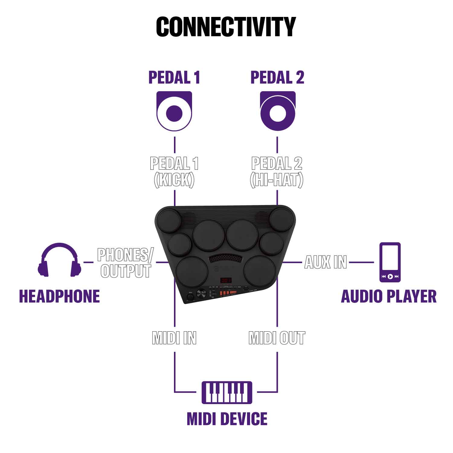 8 Pad sensibili al tocco in un layout facile da usare consente un drumming espressivo
