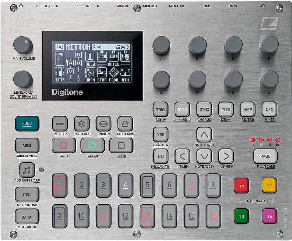 Versione speciale di Digitone in tiratura limita e numerata, caratterizzata da pannello comandi di colore argento satinato, manopole, pulsanti e case di colore grigio (a ricordare le famose Monomachine vendute in passato), logo e numero di serie impressi a laser, scocca in acciaio inox.