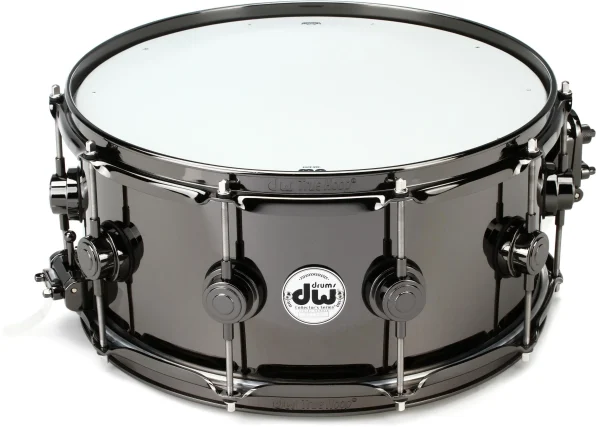 Type: Collector’s Series Snare Drum Depth: 6.5″ Drum Diameter: 14″ Shell Material: Brass Shell Construction: 1mm, Rolled Hoops: 3.0mm Triple-flanged Lugs: 10 x Turret Lugs Color: Black Nickel-plated, Polished Finish: Black Nickel-plated Hardware Heads: DW by Remo USA Manufacturer Part Number: DRVB6514SVN