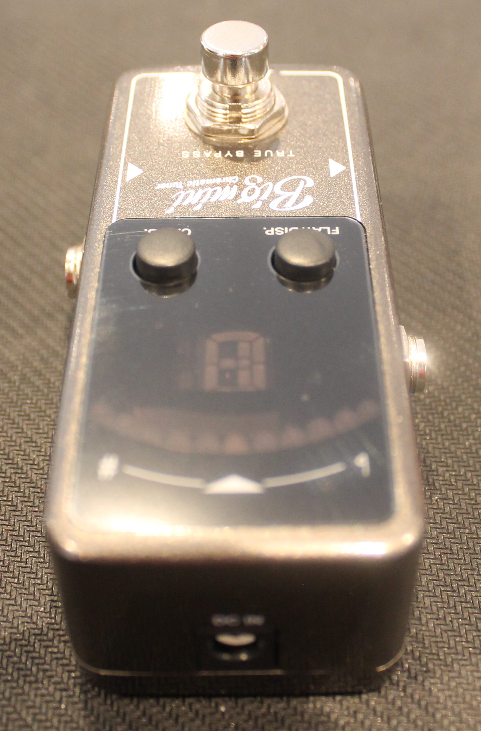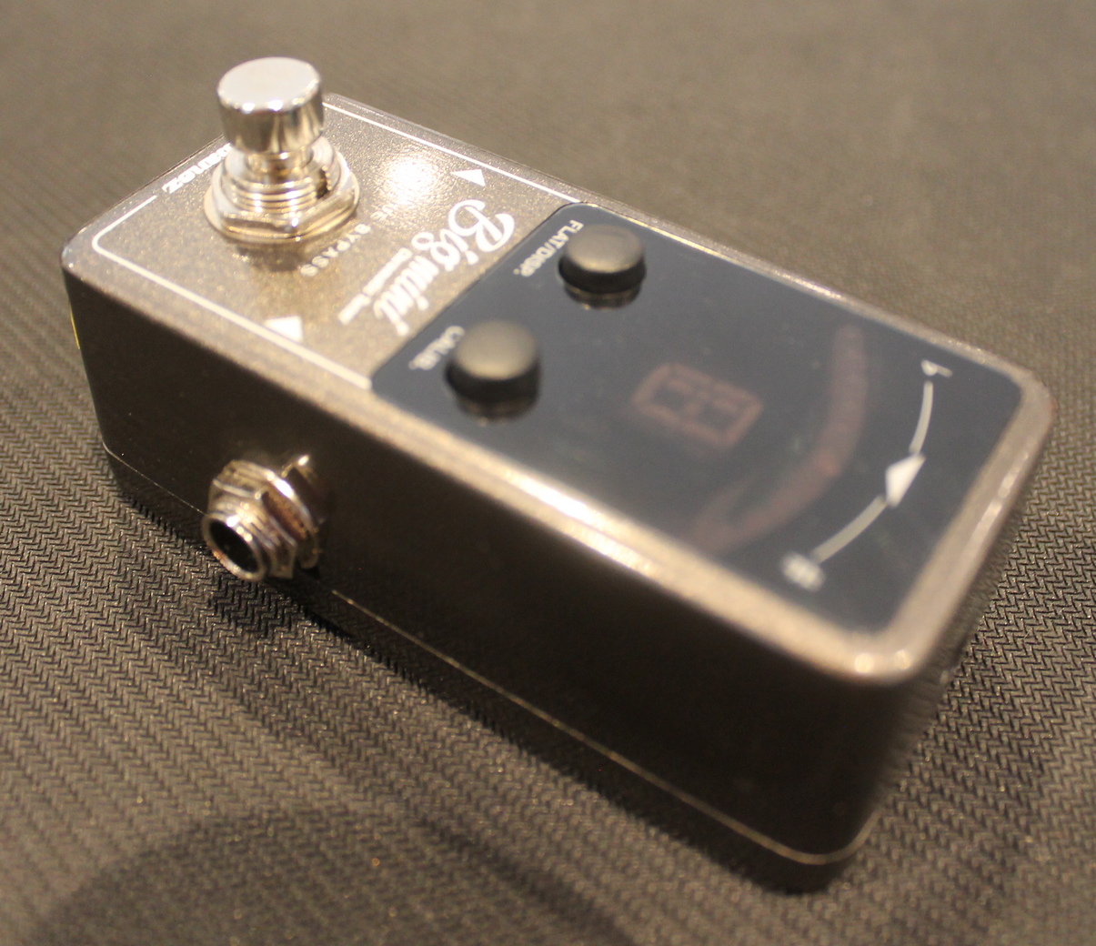 The Bigmini is a compact chromatic tuner pedal that features two different modes: needle and strobe. The tuning range is from A0 (27.5Hz) to C8 (4186Hz), which allows accurate detection of low B on a 5-string bass. The pedal has an adjustable calibration from 435Hz to 445Hz and features a flat mode for tuning flexibility. A true bypass switch provides the shortest and most direct signal path for the cleanest possible sound, while the bright LED display is clear and easy to read even on the darkest stages.