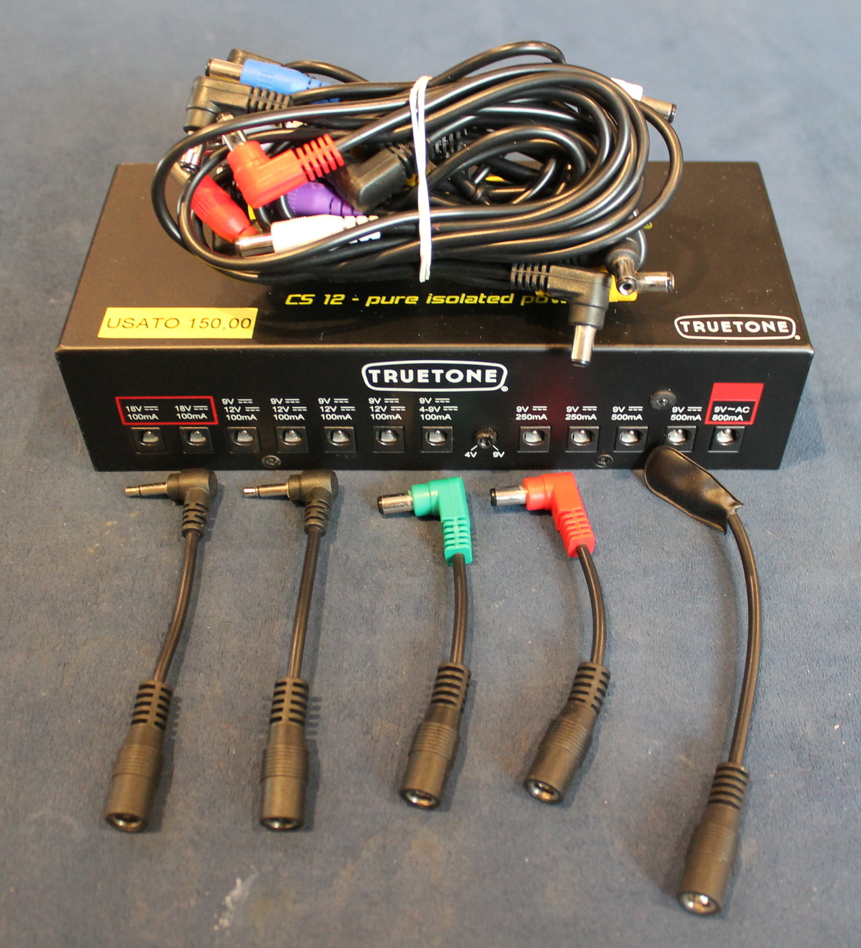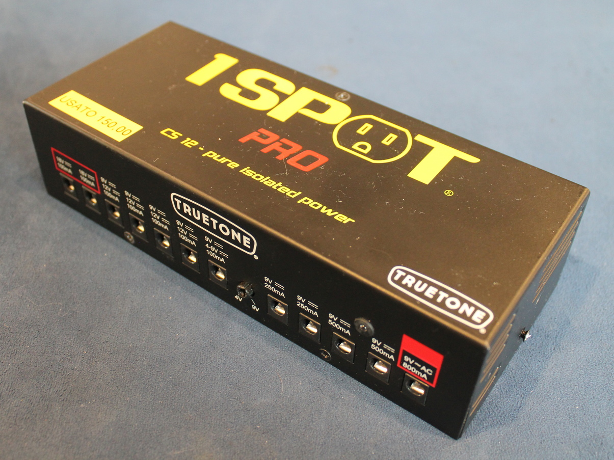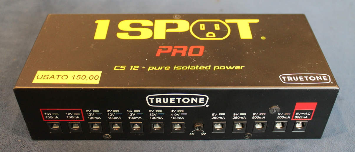 Proper powering of stompbox effects is often misunderstood or little known, but it is essential knowledge for any user who wants to process their sound through effects. In fact, it’s the difference between a pedal functioning correctly and potential damage to it. The 1 SPOT PRO CS12 is the first power supply to use 1-Spot technology. It has twelve outputs to power virtually any stompbox. All twelve outputs are fully isolated, regulated, and filtered to operate quietly and safely with your pedals. The first 11 outputs (from the left) feature jacks with a standard 5.5×2.1mm barrel connector, while output 12, which delivers 9V at 800mA, has a larger barrel connector (5.5 x 2.5mm) to help prevent accidental connection of standard 9V pedals and potential damage to them. On the bottom panel of the power supply, there are 5 mini switches that allow you to change the voltage of the corresponding outputs 3 through 7, selecting 9V (switch in the OFF position) or Features