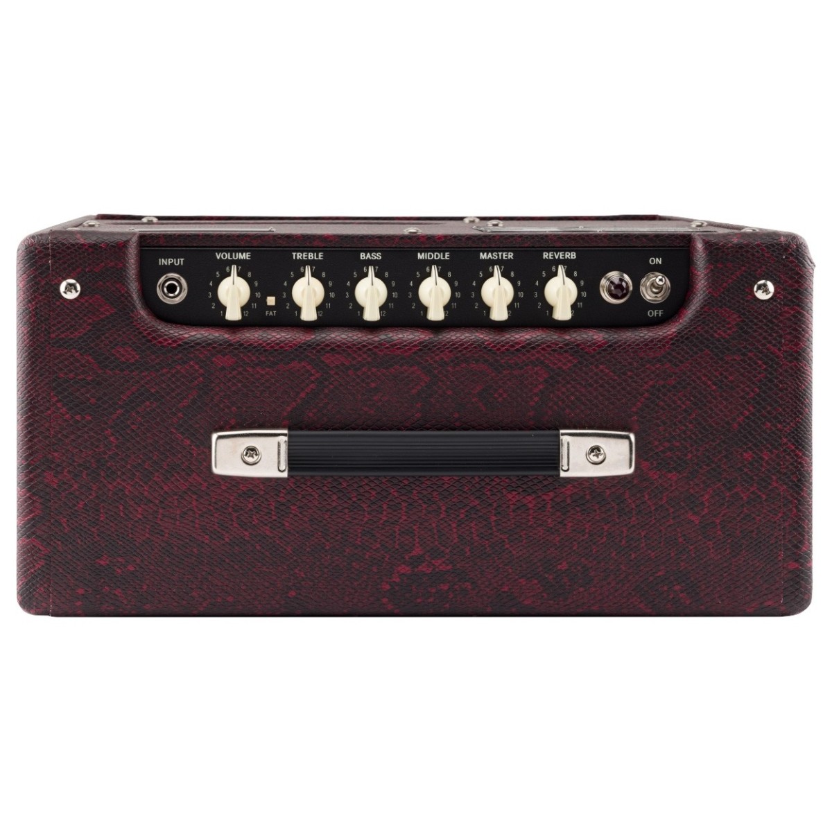 Controls: Reverb, Master, Middle, Bass, Treble, ”Fat” Switch, Volume