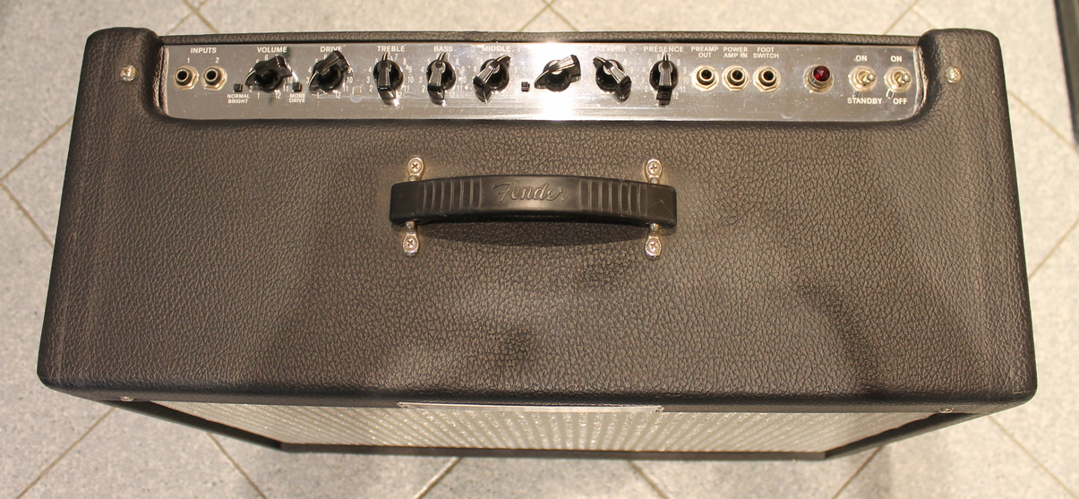 All tube guitar combo amp, 60W, 2×12″ Fender Specially Designed speakers, clean, deive, more drive channels, reverb, power-amp in/pre-amp out, footswitch, cover, Made in USA