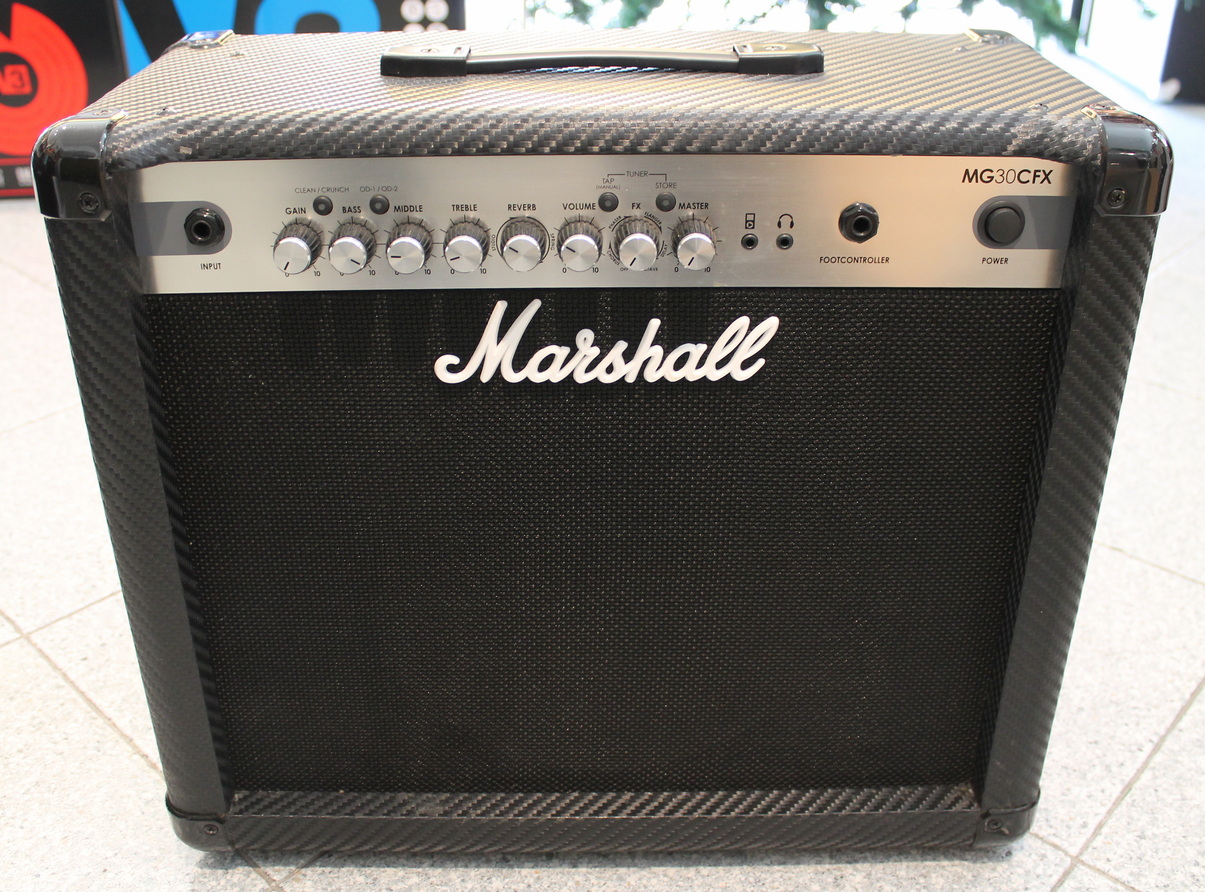 The Marshall MG30CFX guitar combo amp offers 4 programmable channels with great Marshall sound and plenty of power for the stage. The 30W MG30CFX 1×10″ combo includes a 3-band EQ , digital effects and reverb.