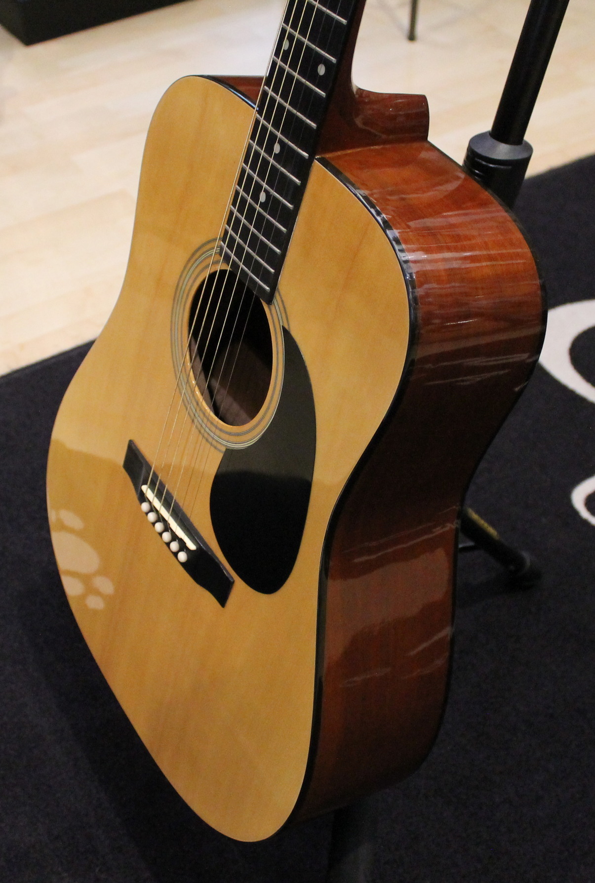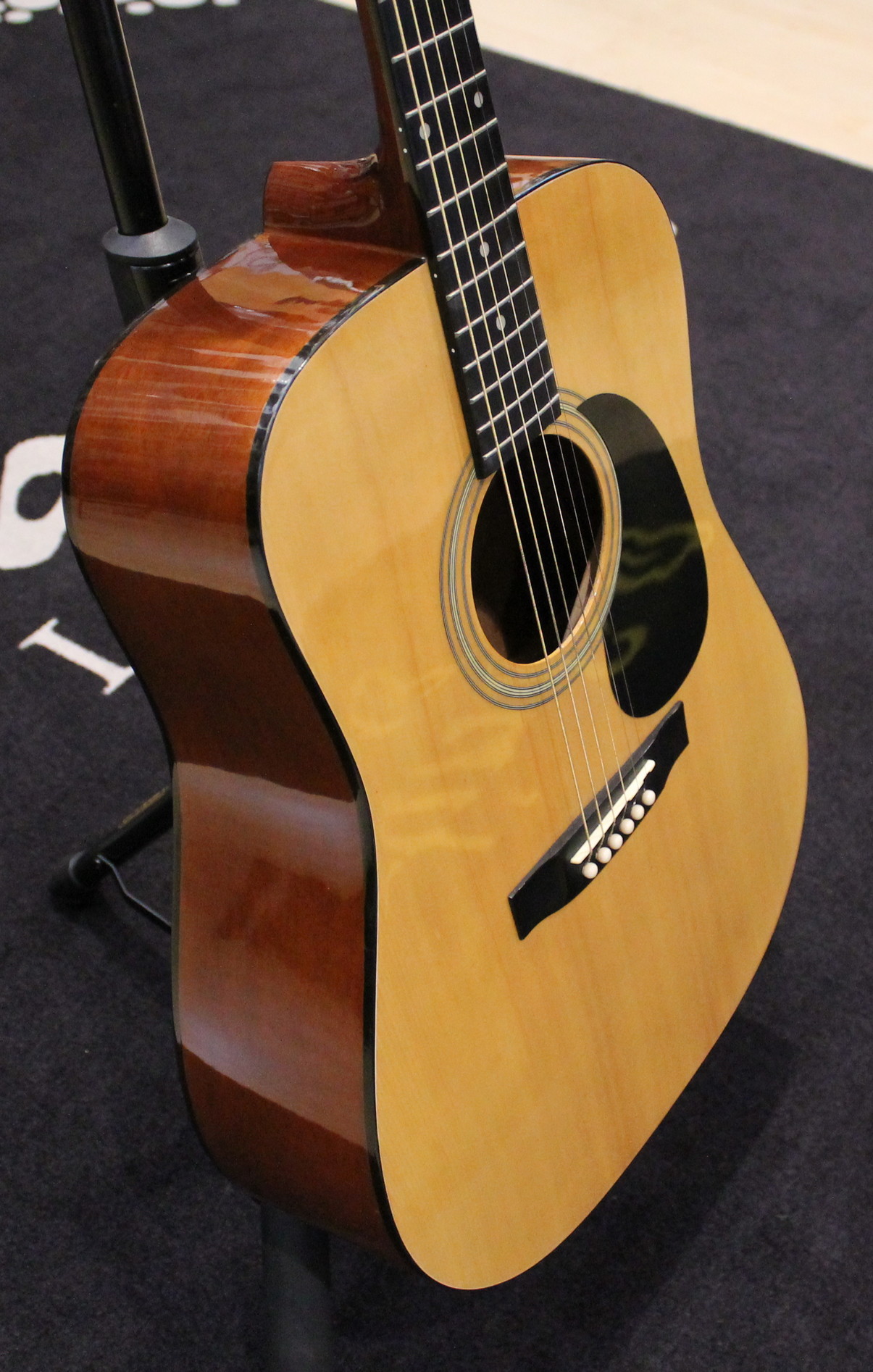 Dradnought acoustic guitar, spruce top, mahogany back and sides, mahogany neck, rosewood fingerboard, Made in Korea