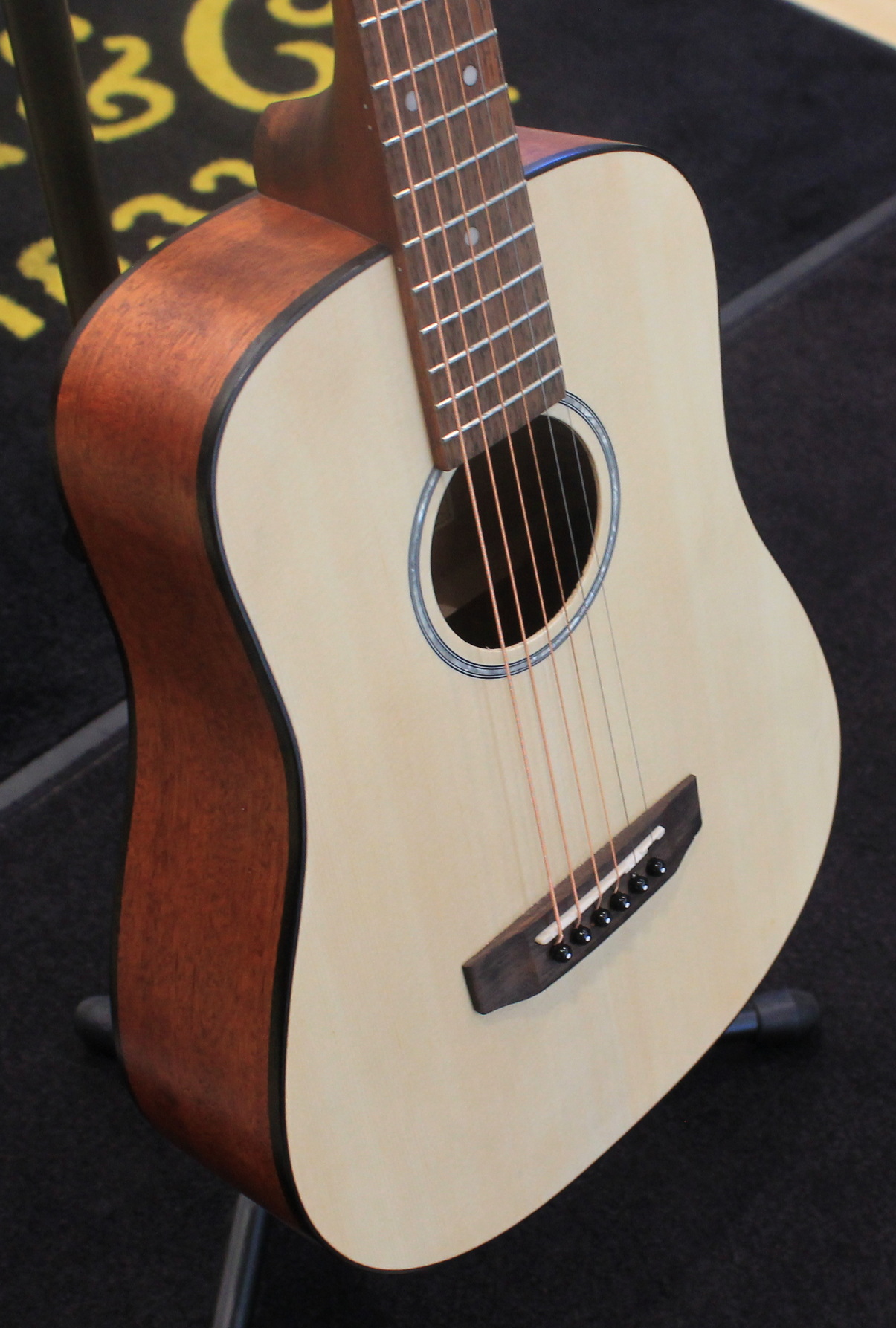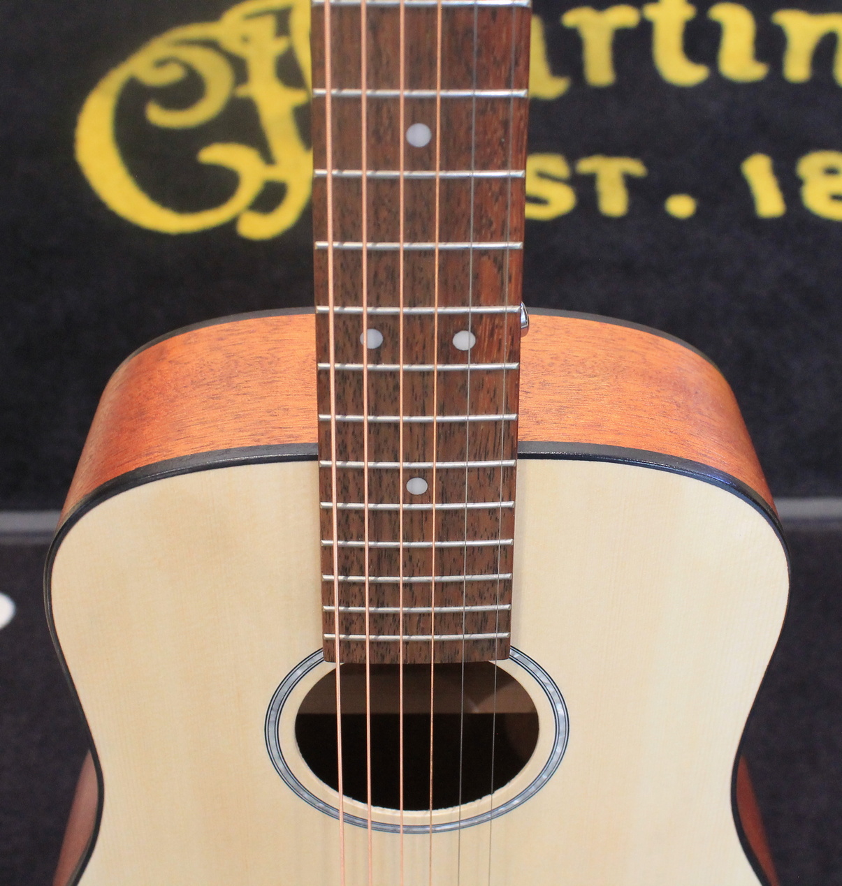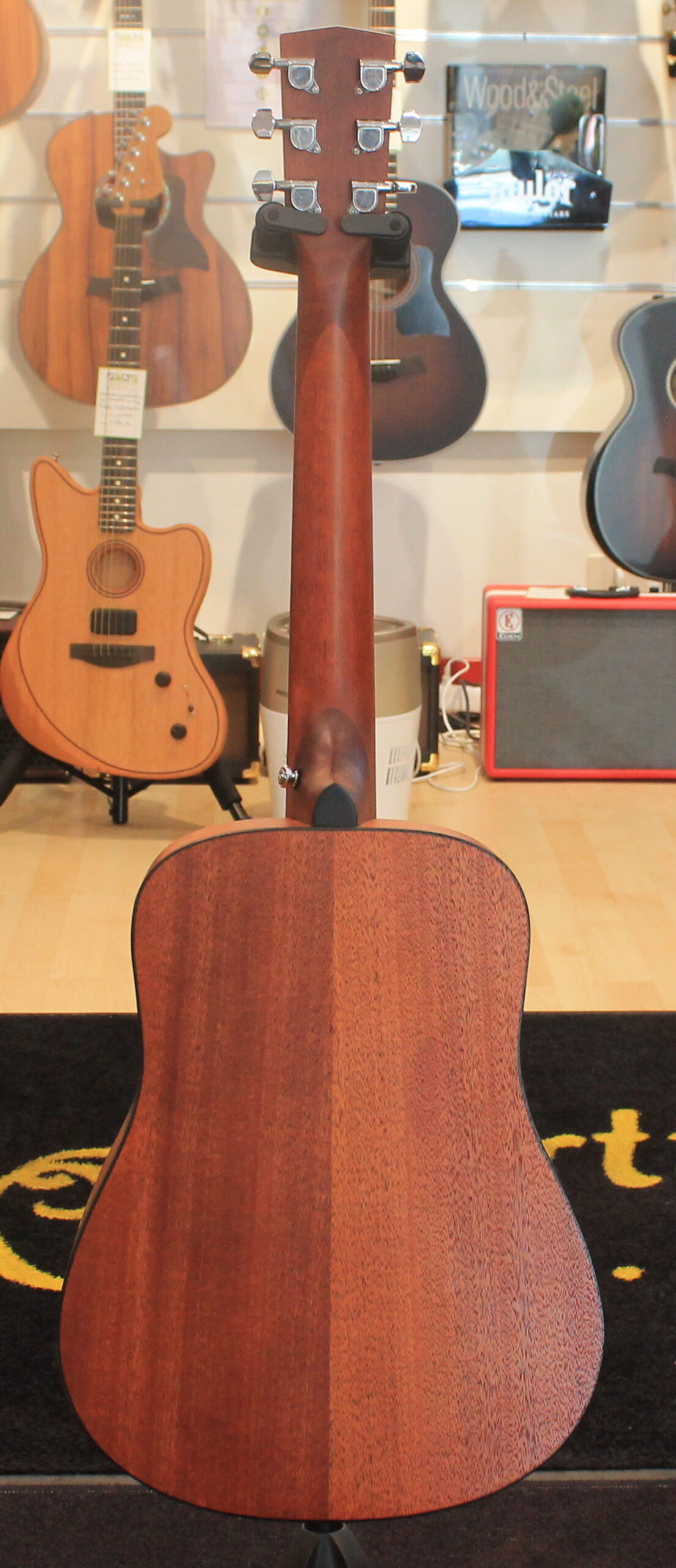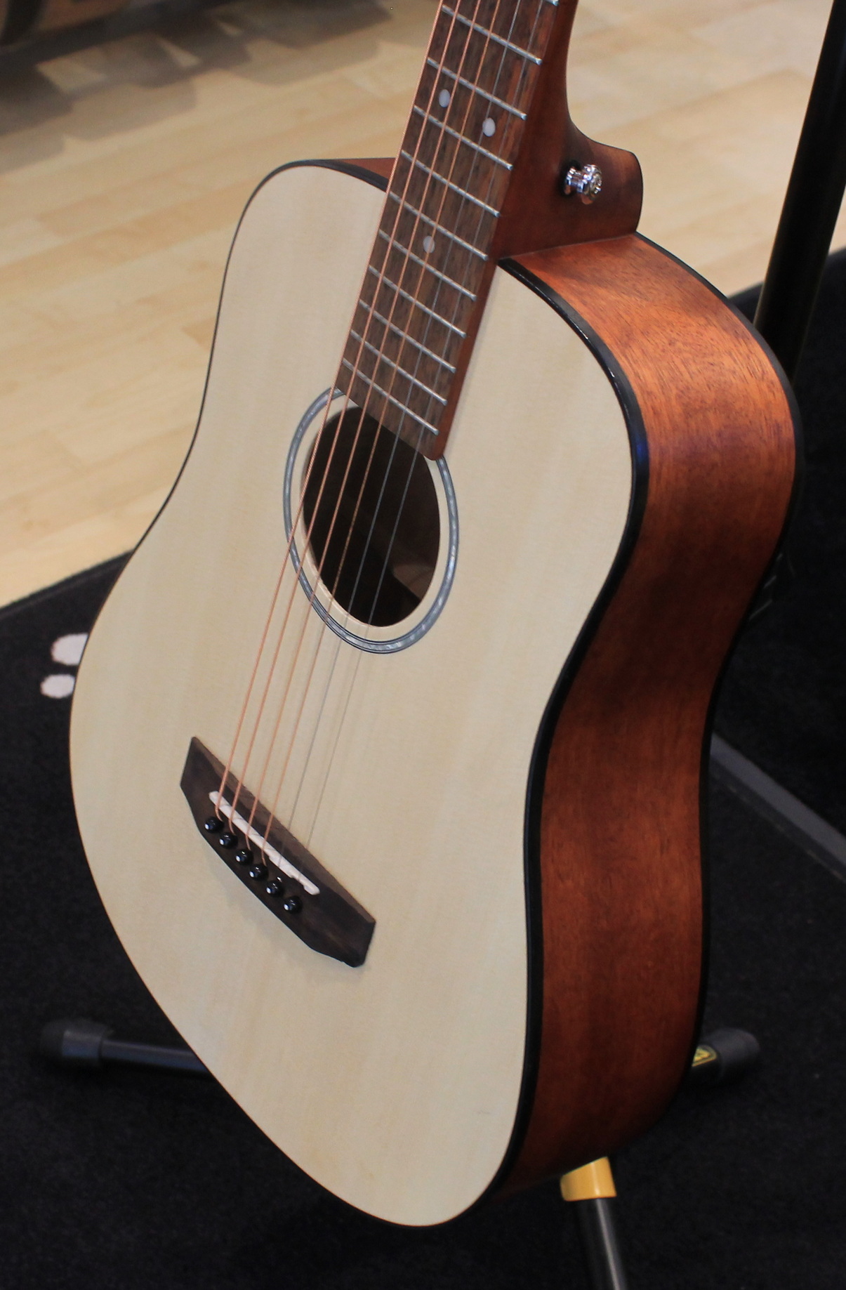 3/4 acoustic guitar Spruce top Mahogany back and sides Mahogany neck Rosewood fingerboard Chrome-plated Cort tuners Color: Natural Open Pore