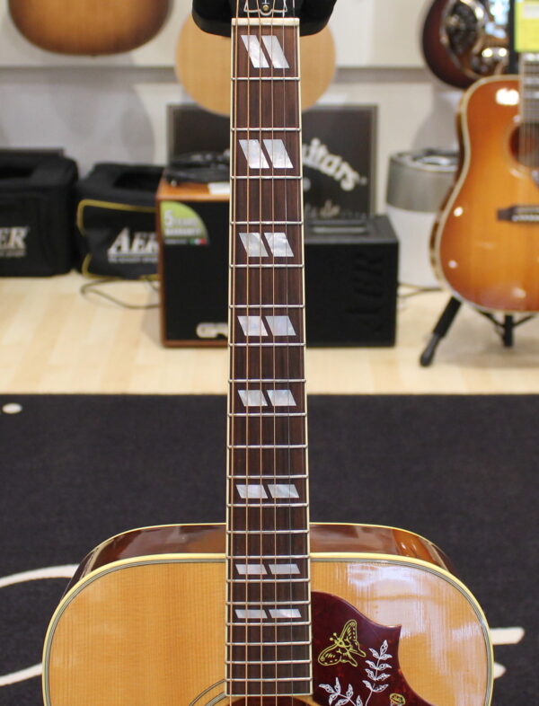 The unmistakable Gibson Hummingbird is followed by the masses as one of the most outstanding acoustic guitars ever built. The new Hummingbird Original blends vintage details with today’s modern, high-quality construction. Equipped with gold-plated Gotoh Keystone tuners, antiqued double binding, a traditional Hummingbird truss rod cover, bone capo and saddle, it is available in Antique Natural or Heritage Cherry Sunburst finish.