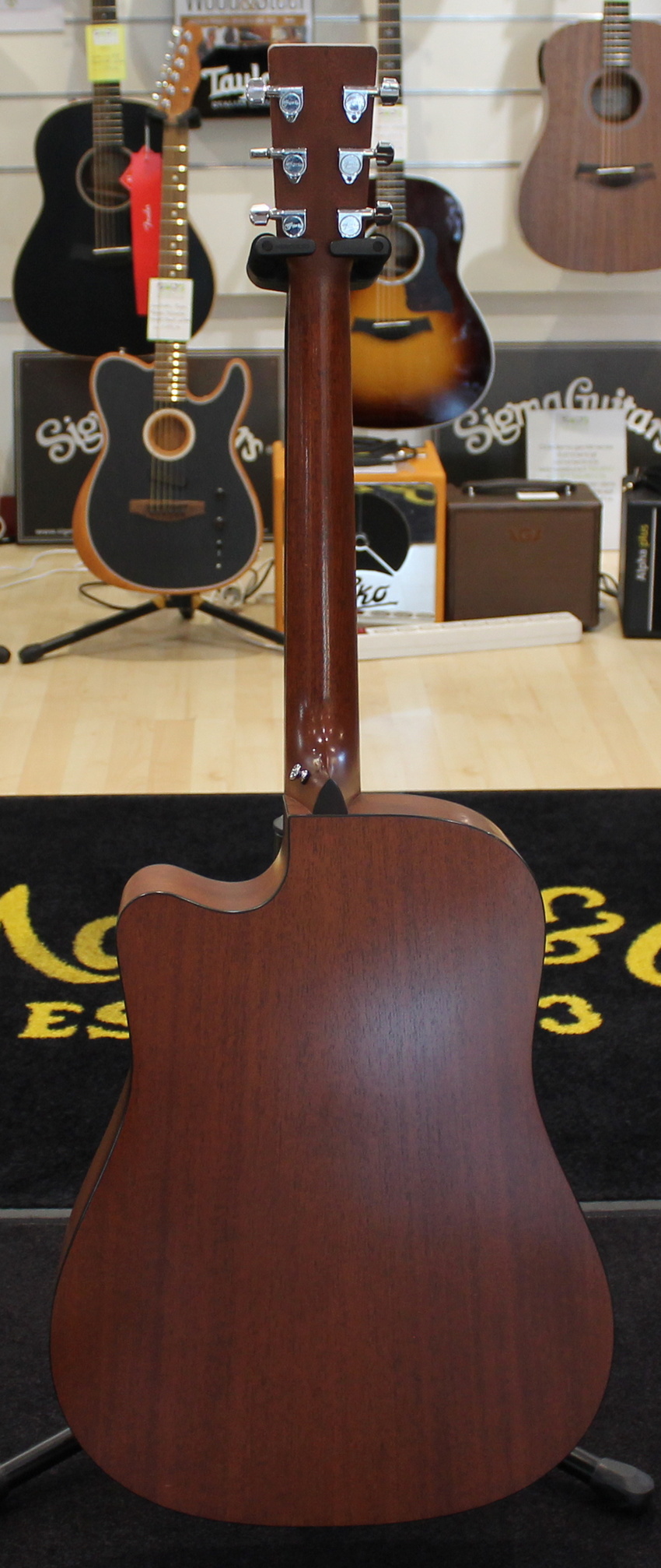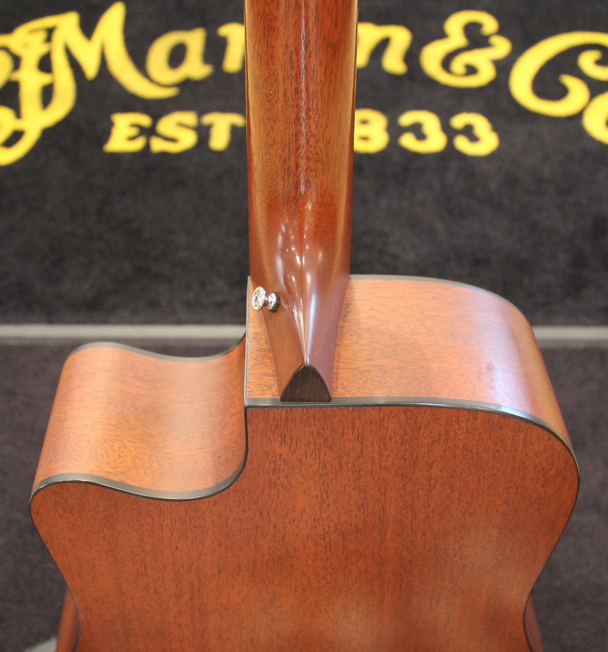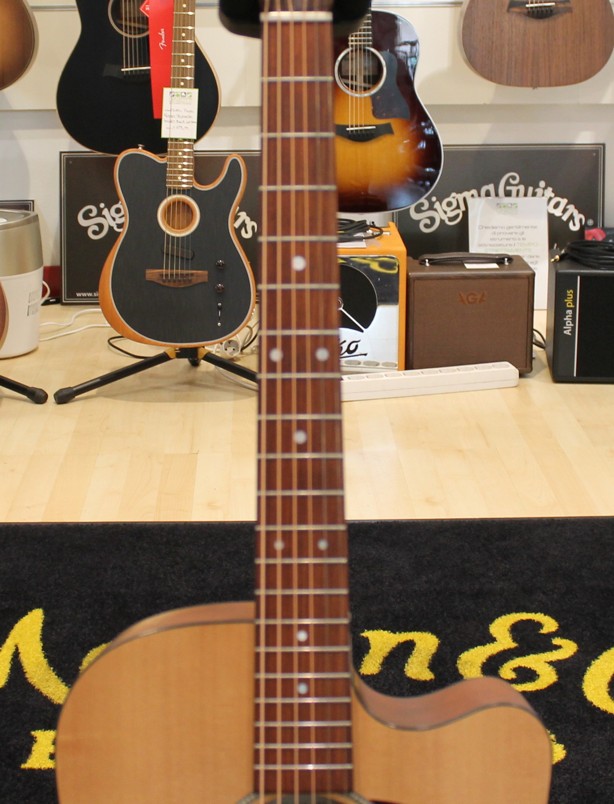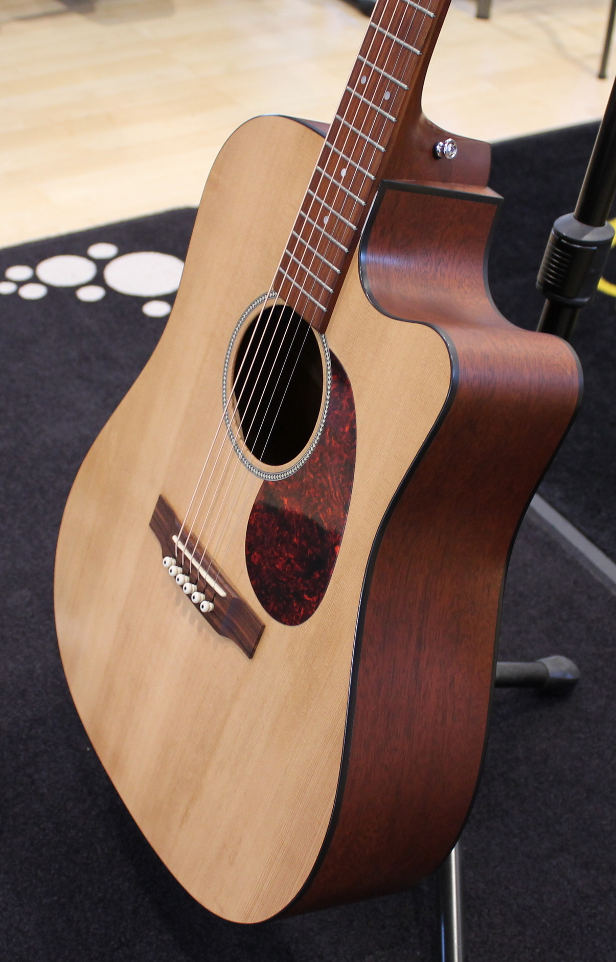 Electrified cutaway acoustic guitar, solid spruce top, mahogany sides, back and neck, rosewood fingerboard and bridge. Chrome-plated tuners, complete with molded hard case. Natural satin finish. FISHMAN CLASSIC 4 electronics.