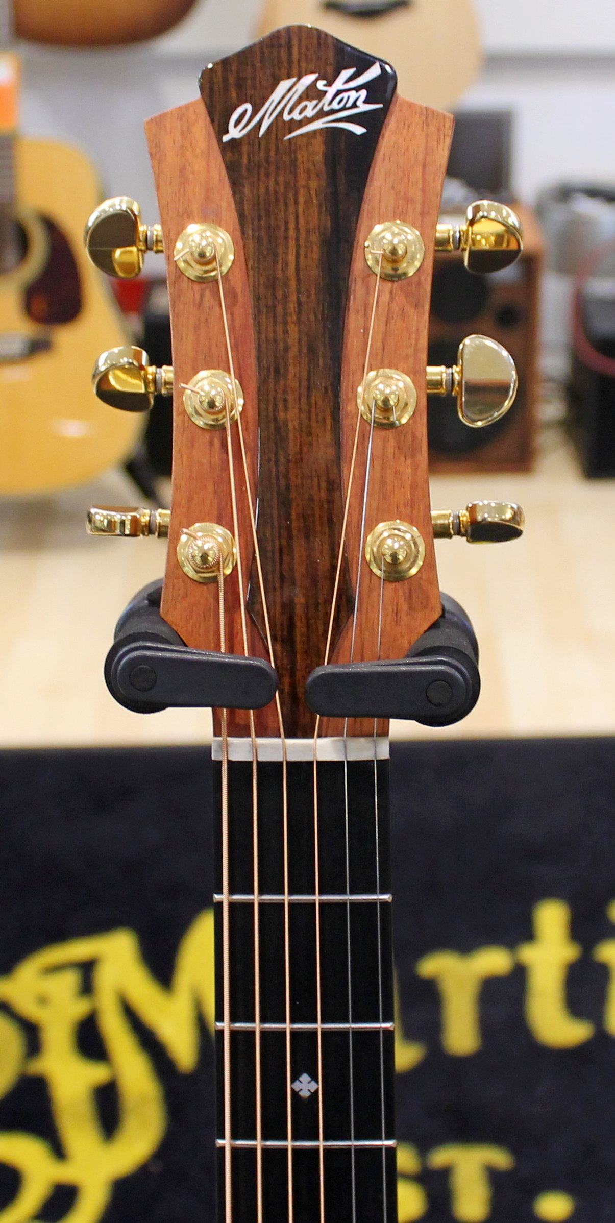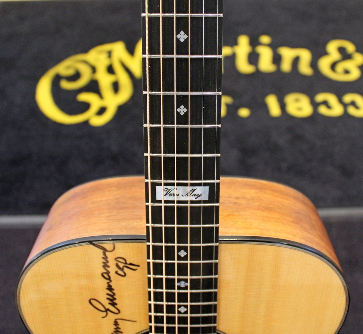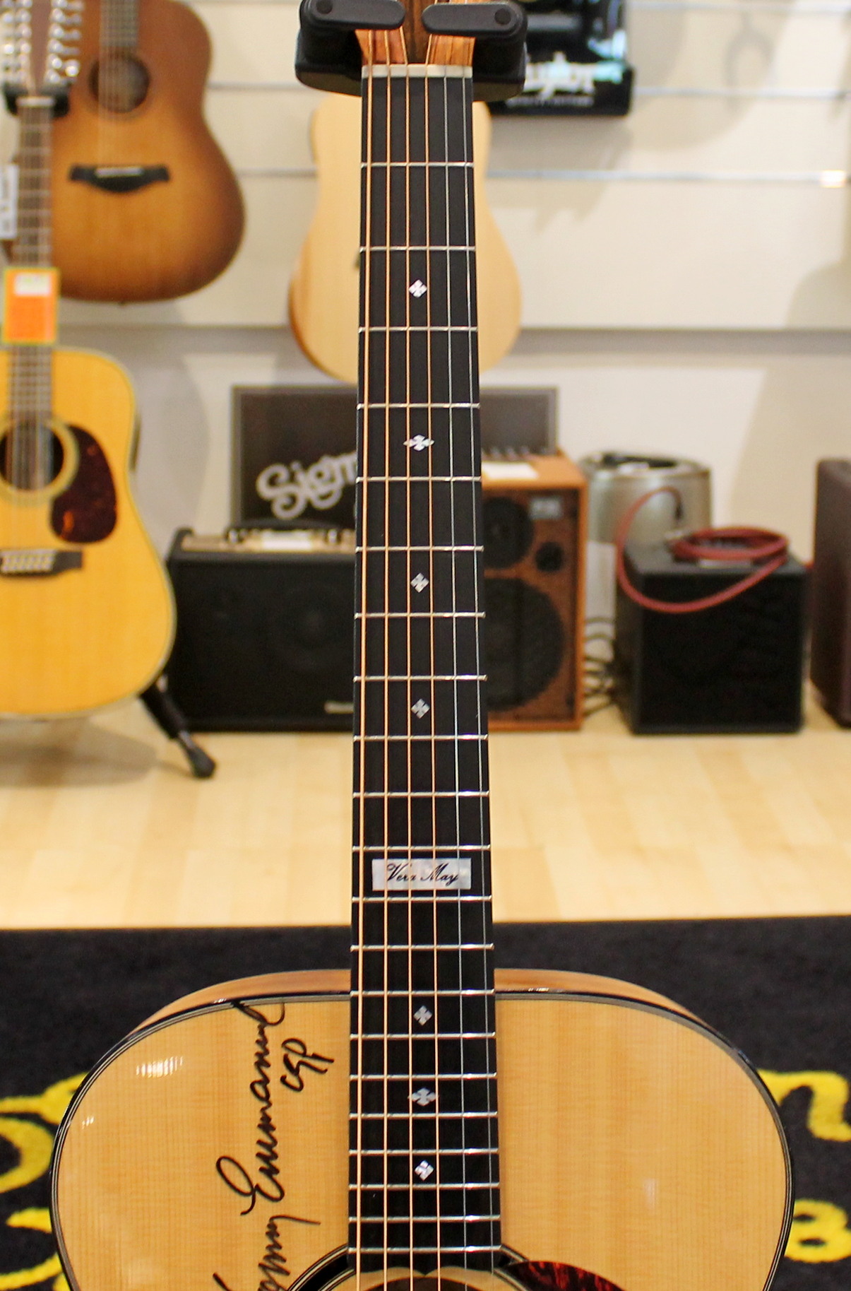 Limited Edition 808 Acoustic Guitar NATURAL color. The Maton Vera May Limited Edition 808 is a 6-string electrified acoustic guitar produced in celebration of the 100th year of Vera May, wife of founder Bill May. Specifications include “AA” solid blackwood back and sides, “AAA” solid lutz spruce top, blackwood neck, ebony fingerboard, AP5 Pro amplification. Hard case included. Signed by Tommy Emmanuel