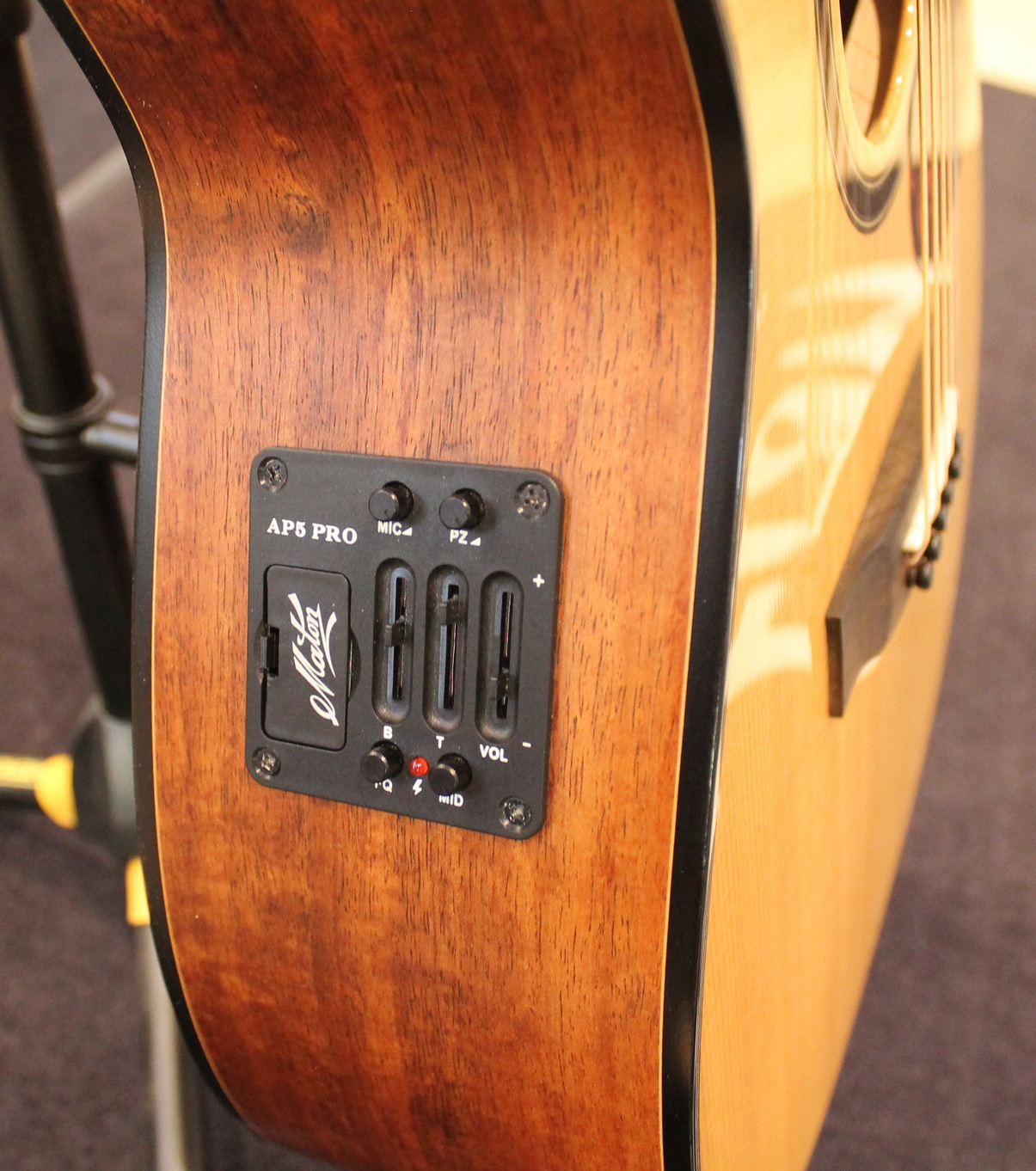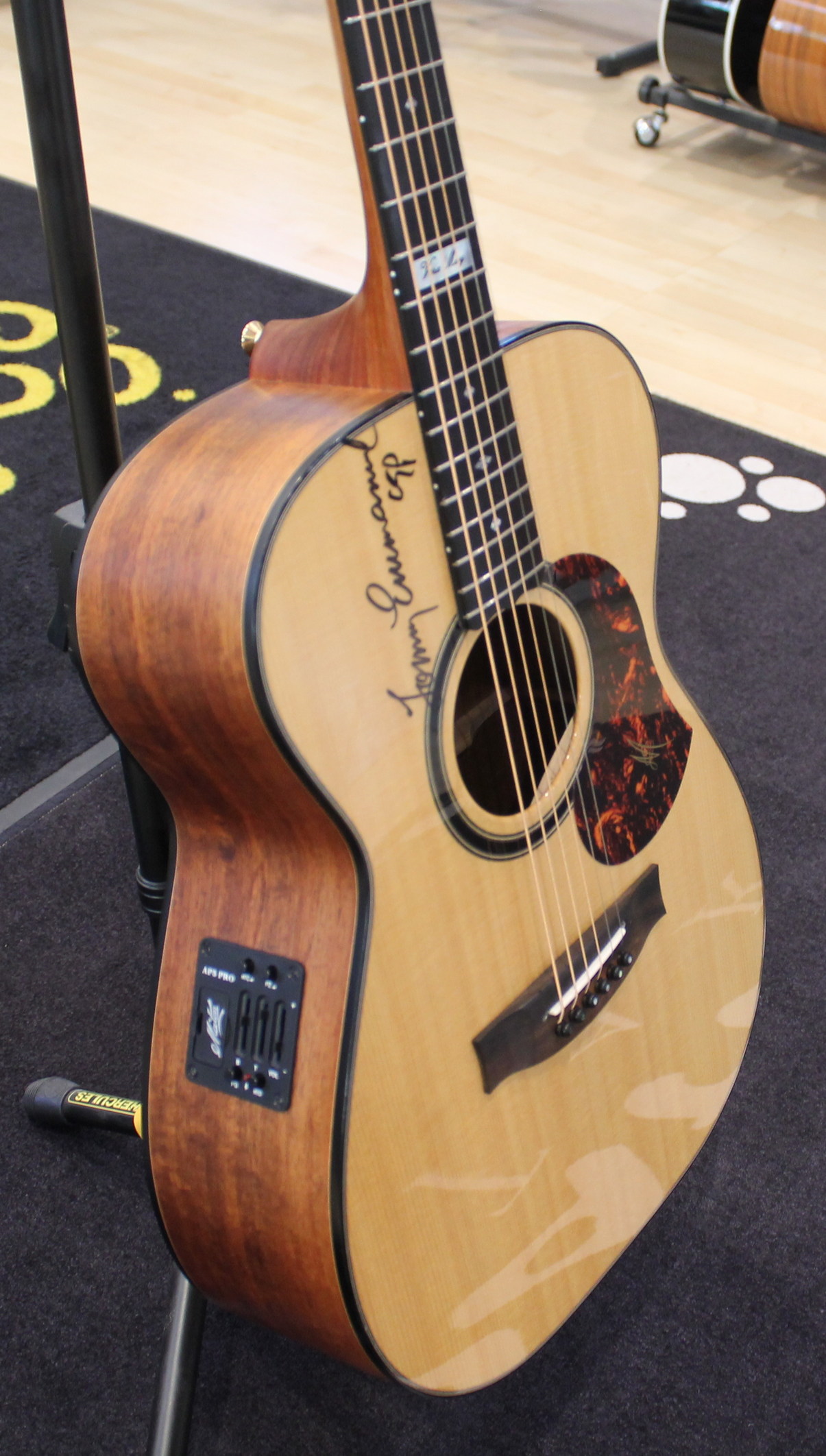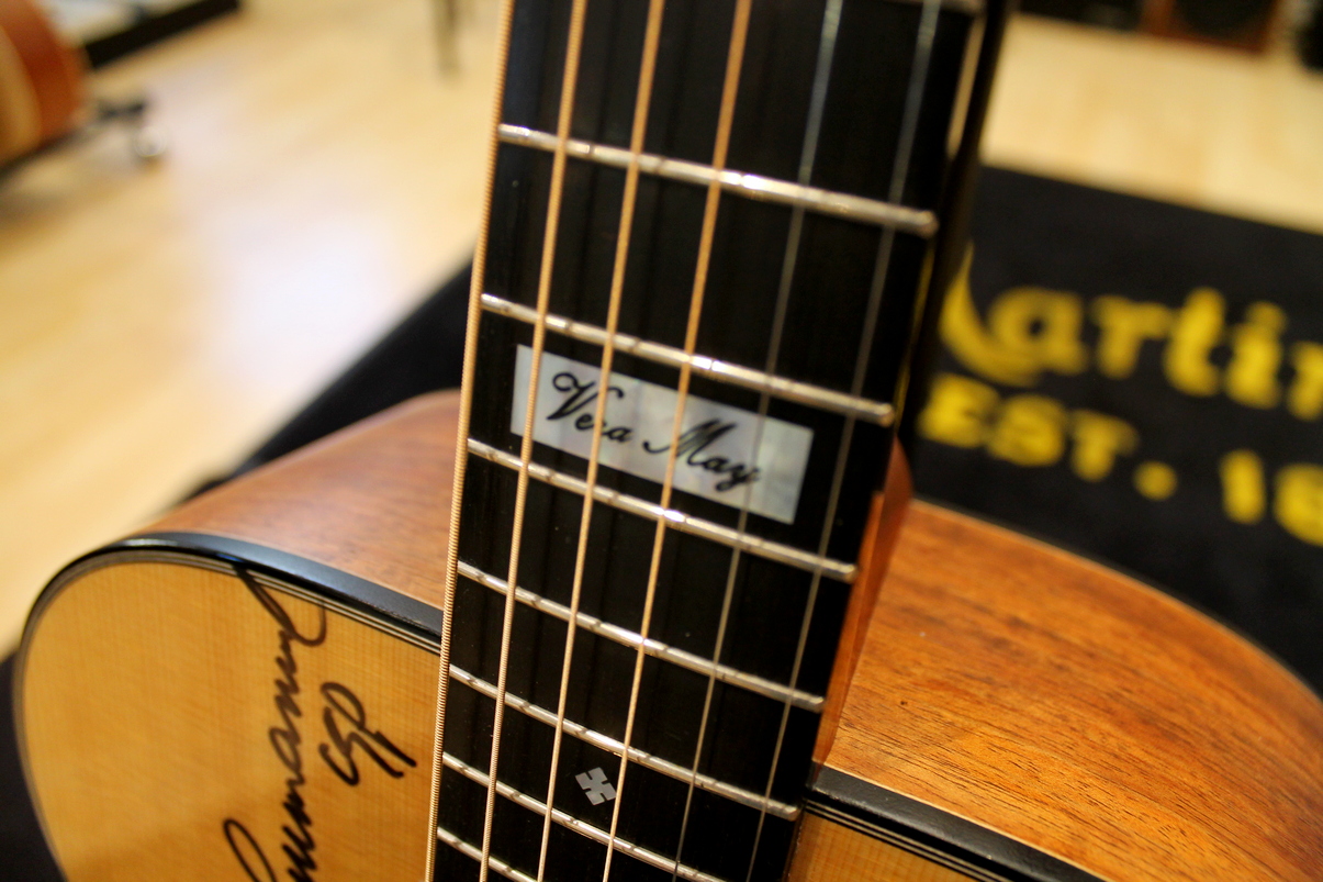 Limited Edition 808 Acoustic Guitar NATURAL color. The Maton Vera May Limited Edition 808 is a 6-string electrified acoustic guitar produced in celebration of the 100th year of Vera May, wife of founder Bill May. Specifications include “AA” solid blackwood back and sides, “AAA” solid lutz spruce top, blackwood neck, ebony fingerboard, AP5 Pro amplification. Hard case included. Signed by Tommy Emmanuel