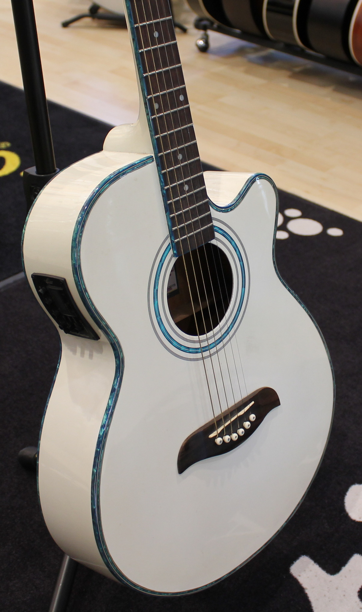The OG10CE is a concert-size cutaway acoustic/electric guitar with great strumming and finger-picking sounds perfect for live performances. Singer/songwriters will appreciate the built-in tuner that’s part of the Barcus Berry preamp system.