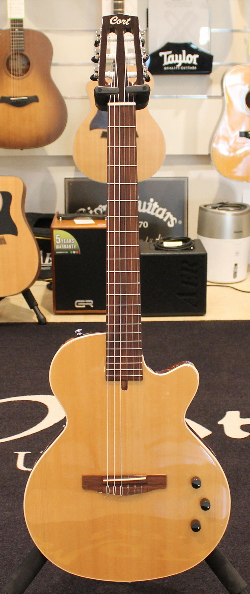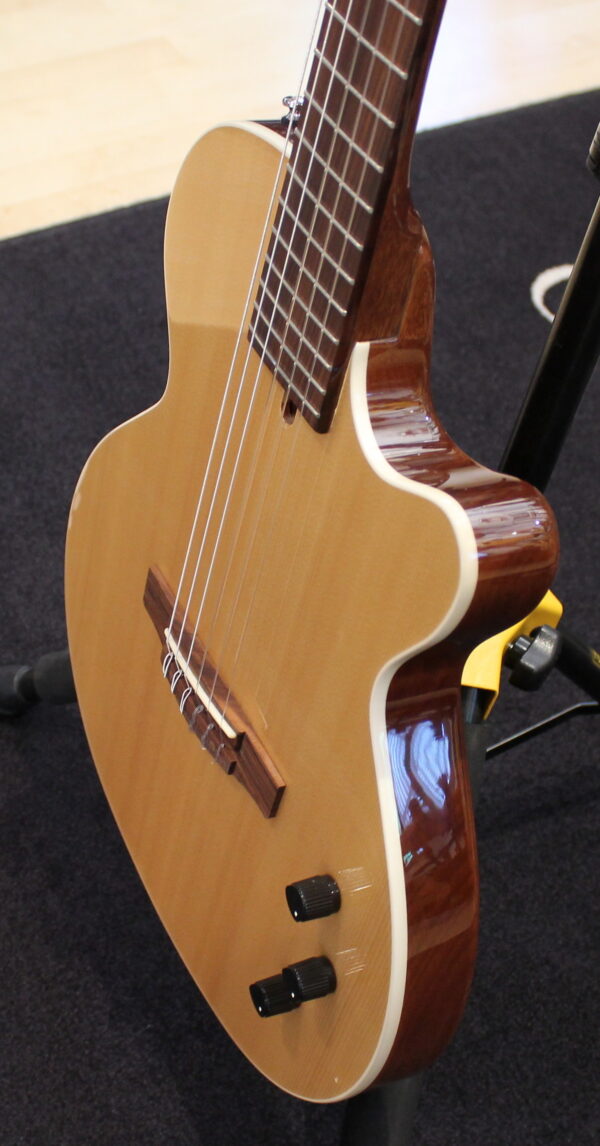 The Sunset series combines retro style with modern sensitivity and sound character. Its warm, rich, and resonant sound is ideal for a variety of musical genres and styles. For electric guitarists looking for a great nylon-string classical guitar sound on stage at a reasonable price, the new Sunset Ny offers flexibility and rock-solid performance without the hassle of amplifying a traditional nylon-string classical guitar.