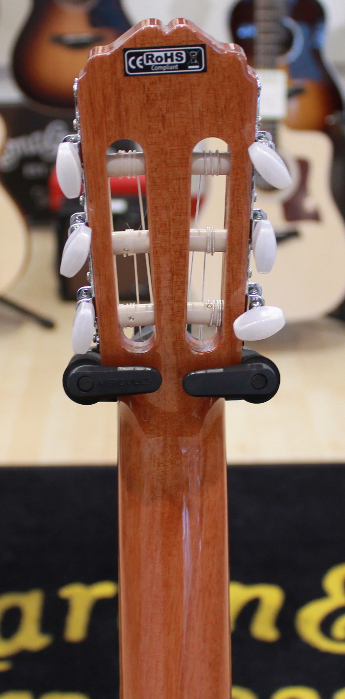 Other fantastic features include a beautiful inlaid mosaic rosette, synthetic bone nut and bridge saddle, laurel fretboard covers, chrome tuners with white pearl buttons, and an elegant high-gloss finish.