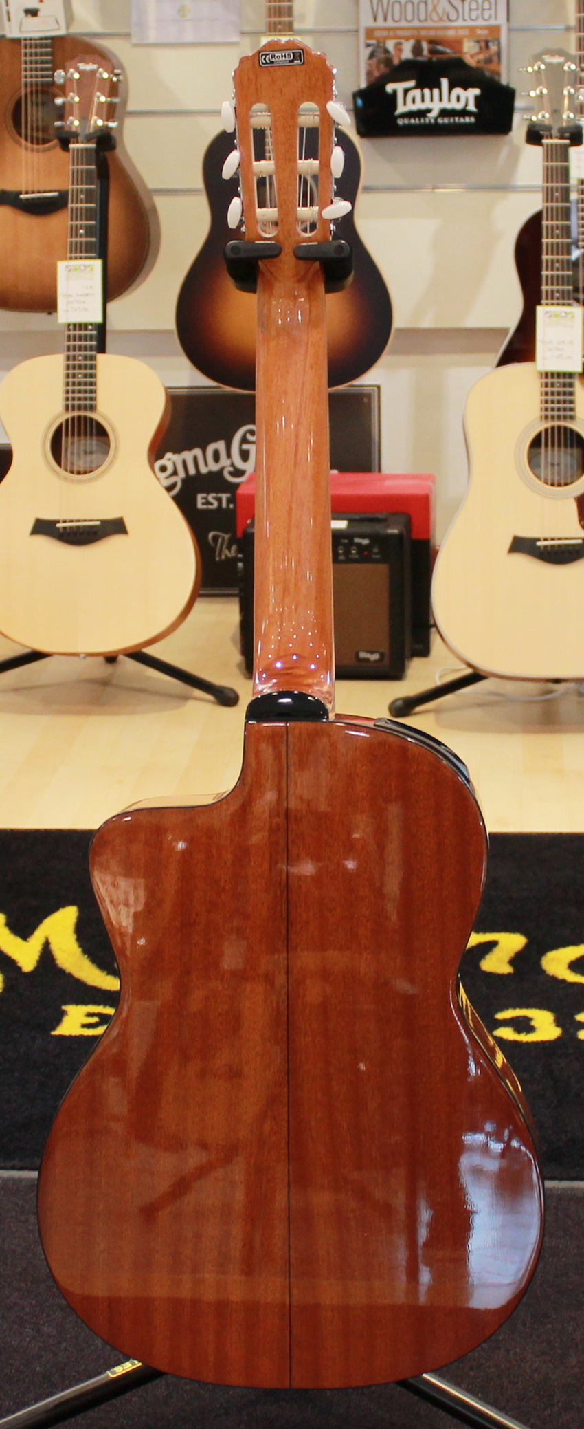 Ready for any performance, the GC3CE features a solid spruce top with fan bracing and mahogany back and sides that produce a rich, resonant sound. The comfortable mahogany neck and laurel fingerboard offer great feel and playability, while the built-in Takamine TP-4T preamp offers a built-in tuner with three-band equalizer and gain controls for excellent amplified performance and versatility.
