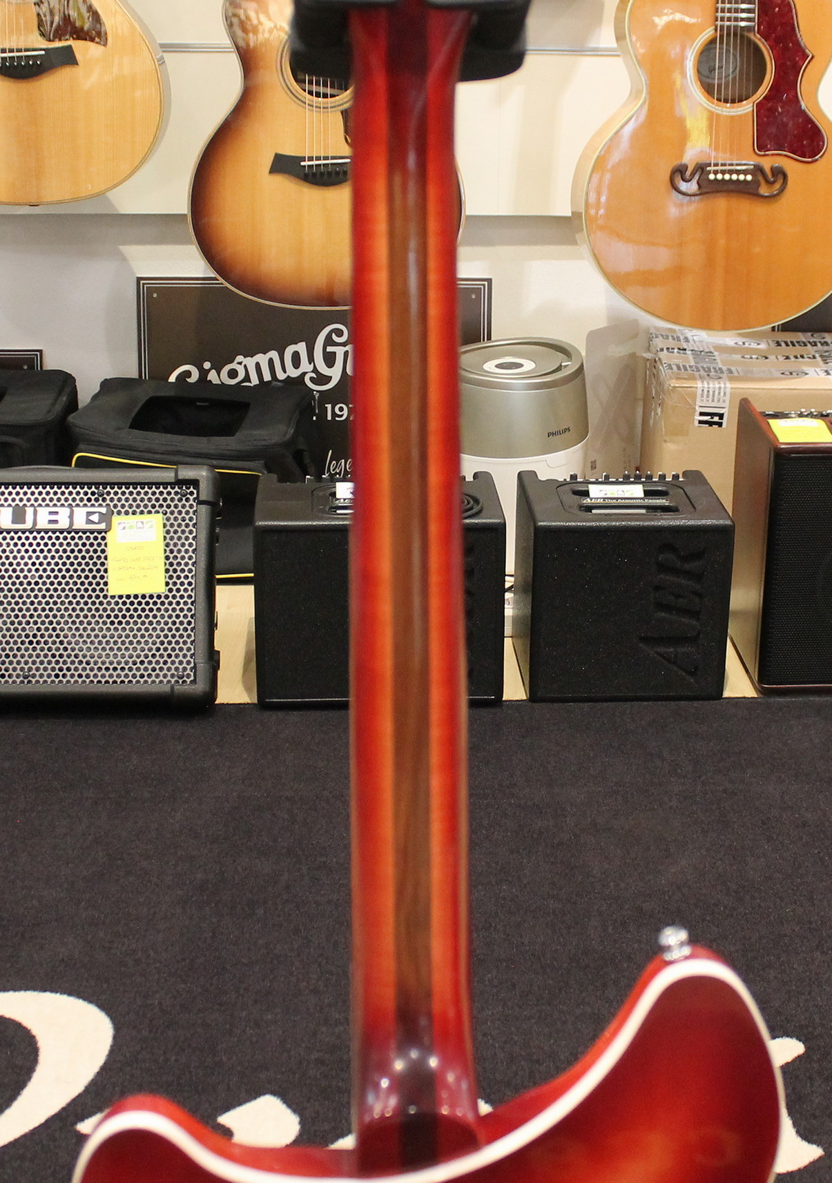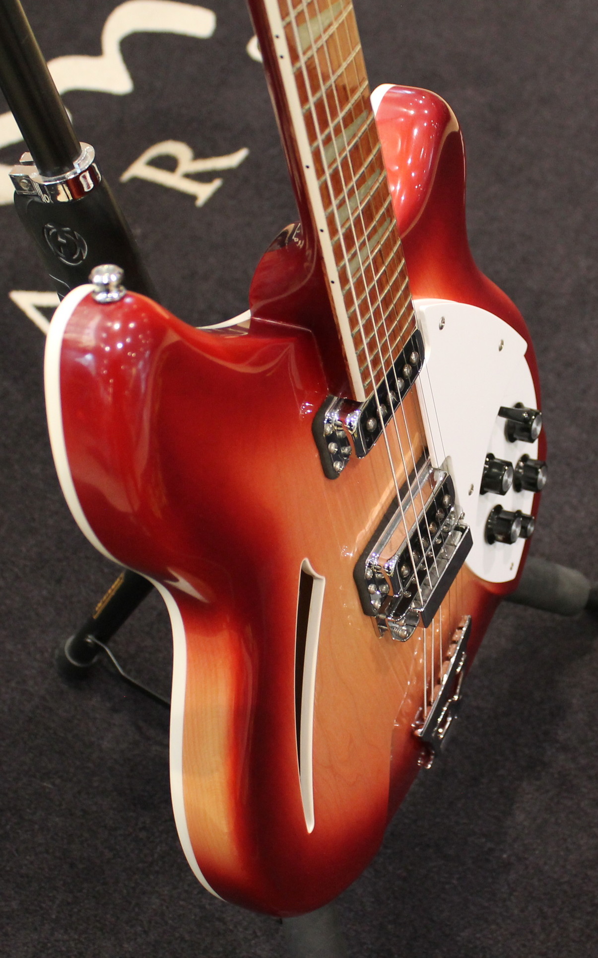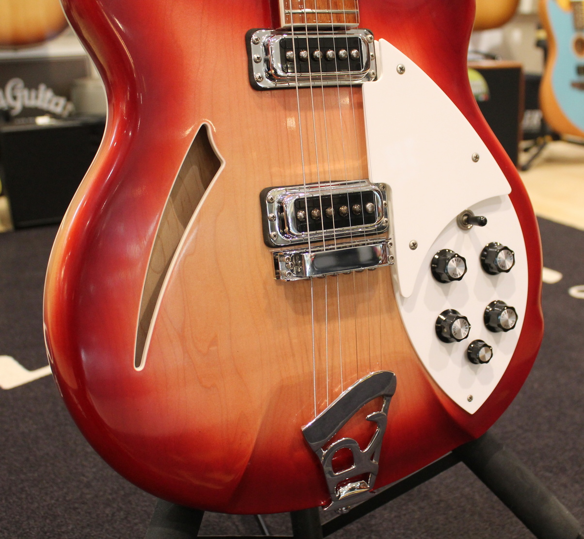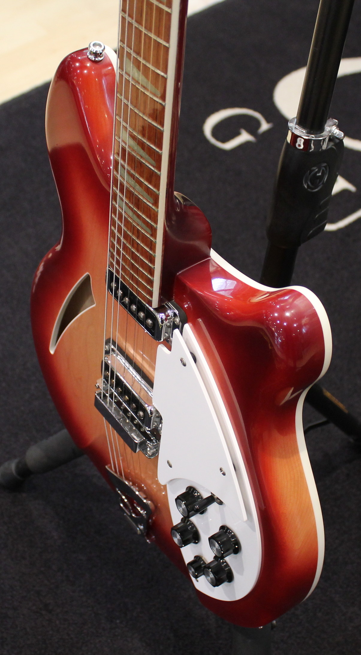 Electronics: 2 Volume, 2 Tone controls, 3-way pickup selector switch, “Rick-O-Sound” stereo output