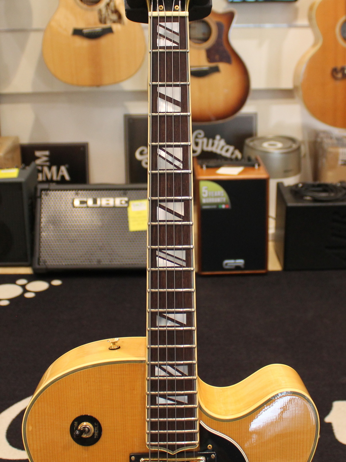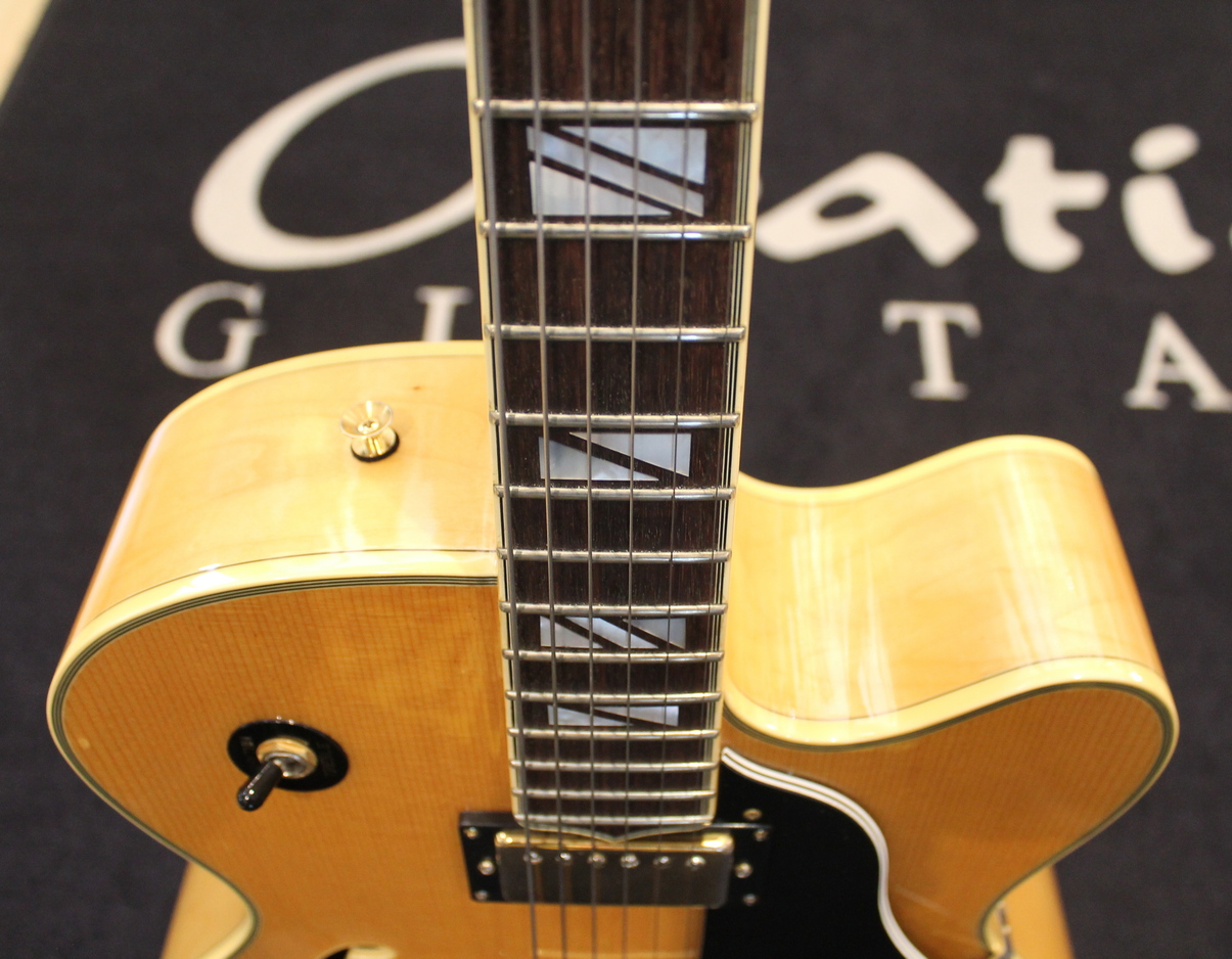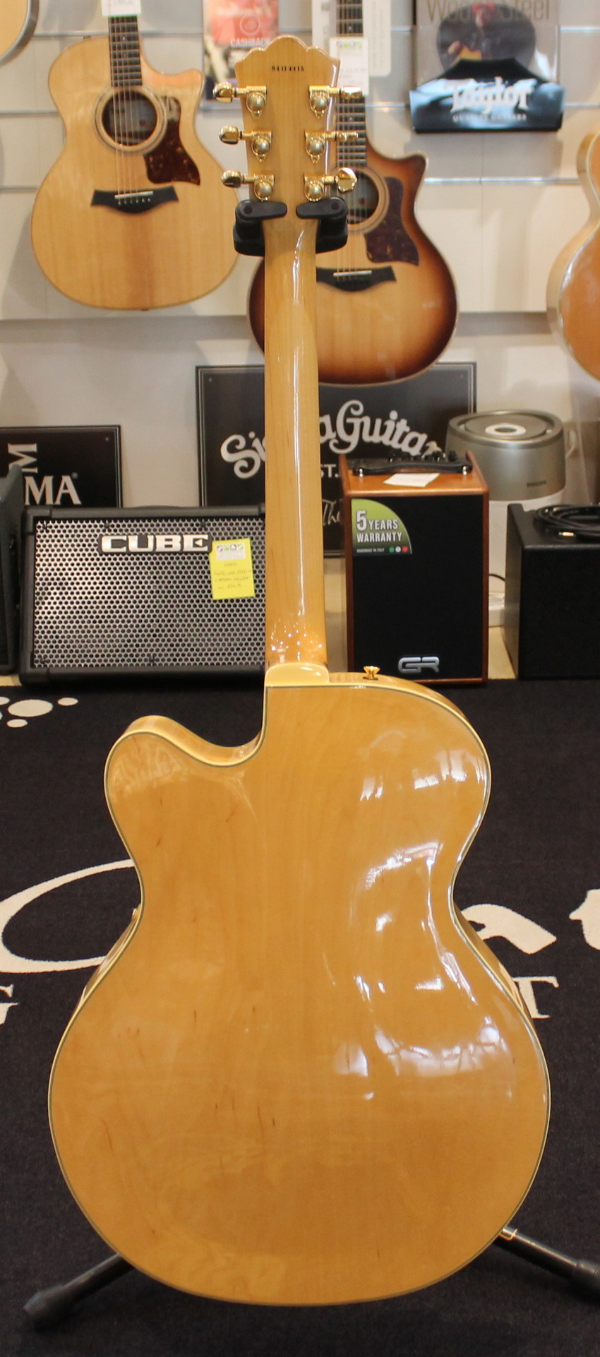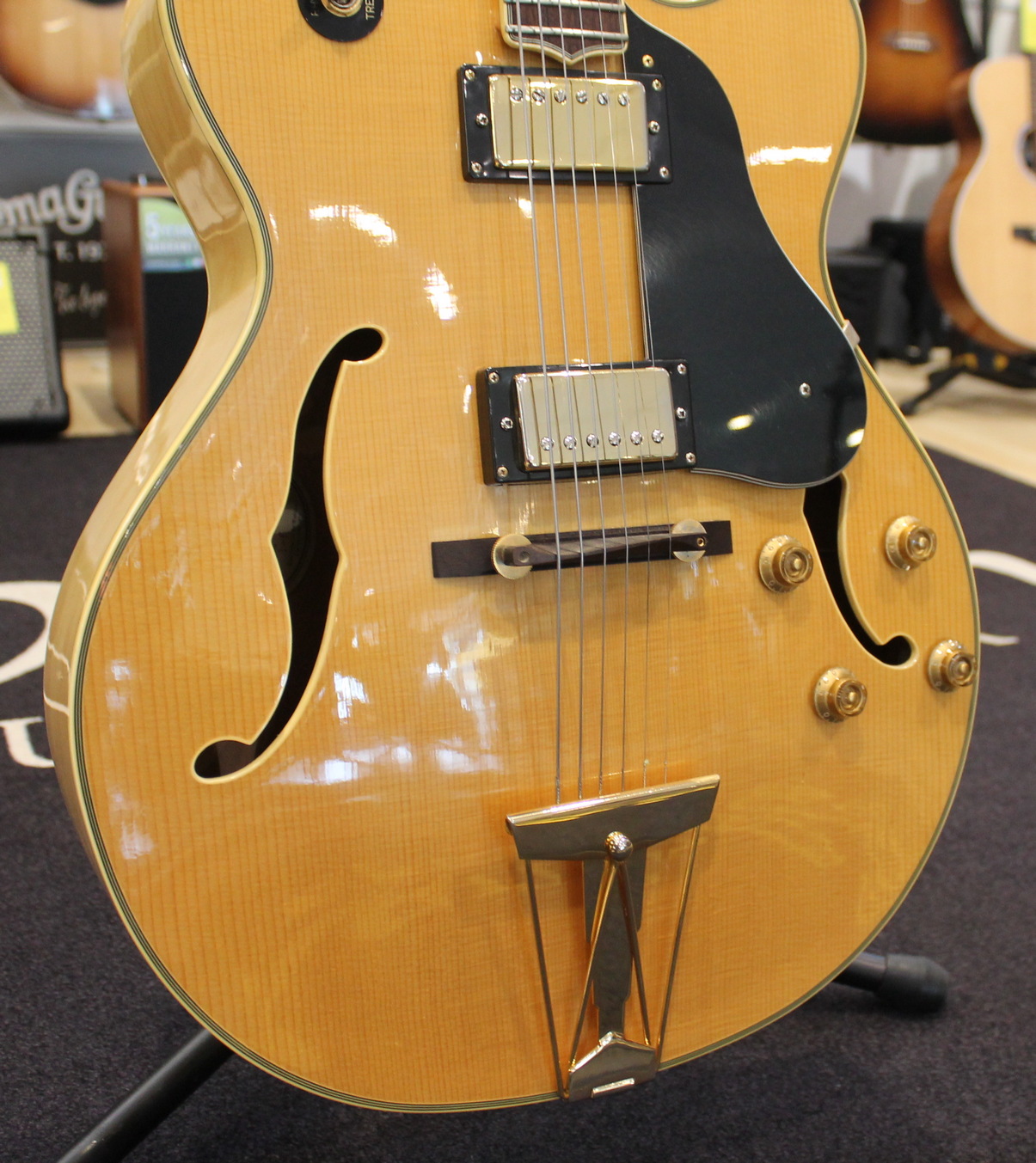 Unsurpassed in tonal power, this jazz guitar authentically recreates the cherished sounds from before the age of amplification. Combined with today’s electronics, the J6 sets a new standard for jazz guitars. Features an arched spruce top, flamed sycamore back and sides, bound fingerboard with pearl “split block” inlays, gold Grover tuners, Washburn “Reso-tone” tailpiece, and 2 Washburn 800 series humbucking pickups.