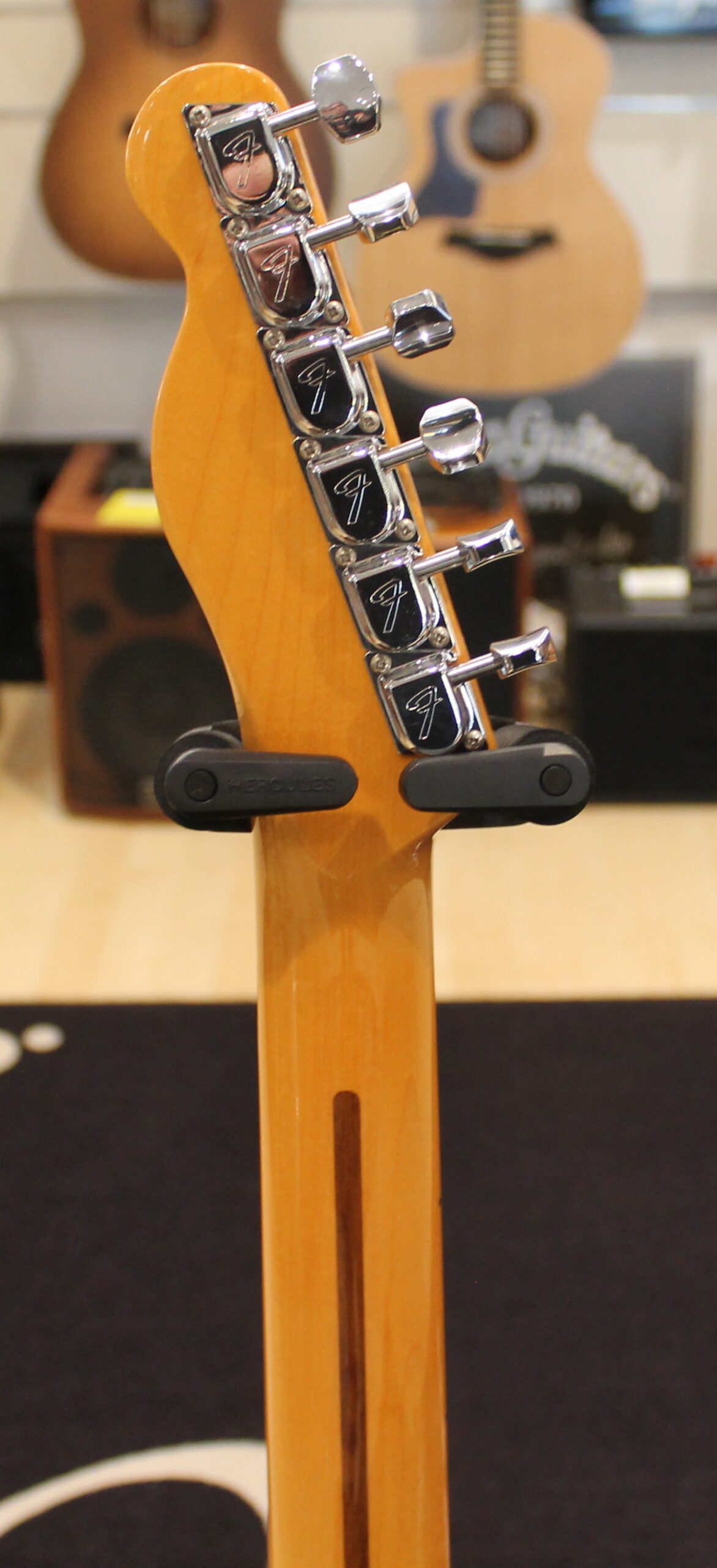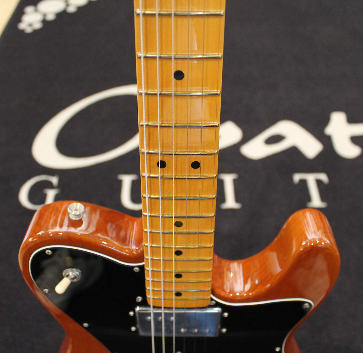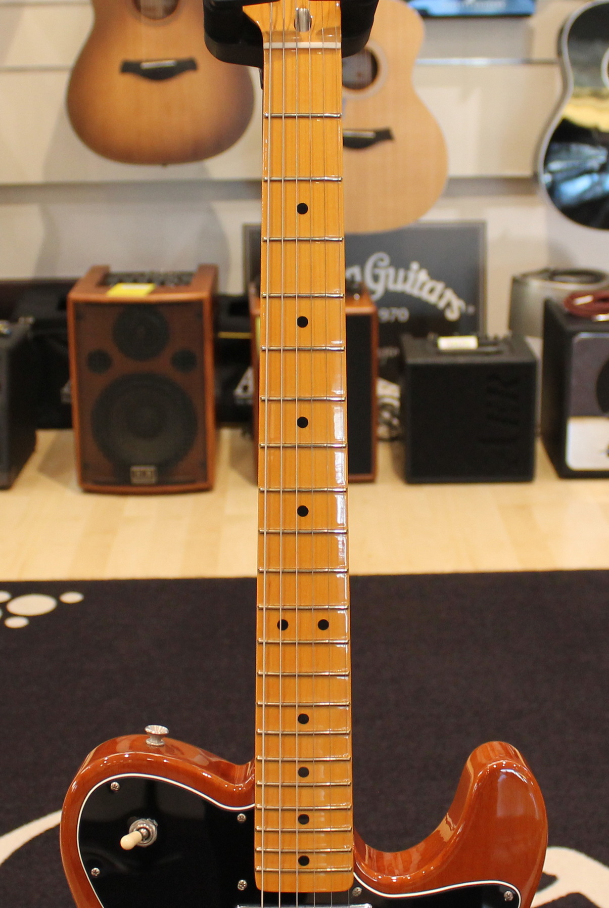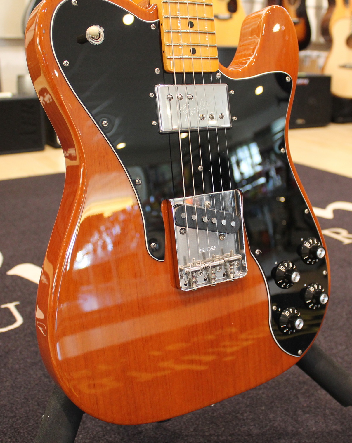 At the dawn of the 1970s, as popular music tended toward the fatter sounds of humbucking pickups in overdrive amps, Fender hired legendary humbucking pickup designer Seth Lover to create a typically Fender pickup on a dual coil pickup with higher output. The resulting Wide Range pickup used large coils and CuNiFe threaded rod magnets to achieve a unique, bright sound. The Telecaster Custom went out of production in 1979 and with it disappeared original CuNiFe magnet pickups. The original American Telecaster Custom 70s features the first authentic CuNiFe magnet Wide Range neck pickup in over 40 years, accompanied by a 1970s calibrated single-coil bridge pickup designed by Tim-Shaw. Controls include independent volume and tone for each pickup and a superior 3-way toggle switch. Other touches include original period body spokes, vintage-style hardware-including F-logo tuners and truss rod adjustment-and a lacquer finish that allows the wood to breathe naturally with a resonant sound. A vintage-style hard case is included.
