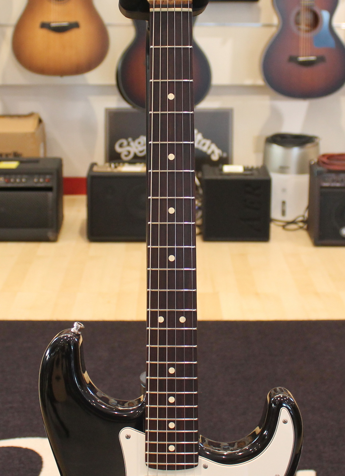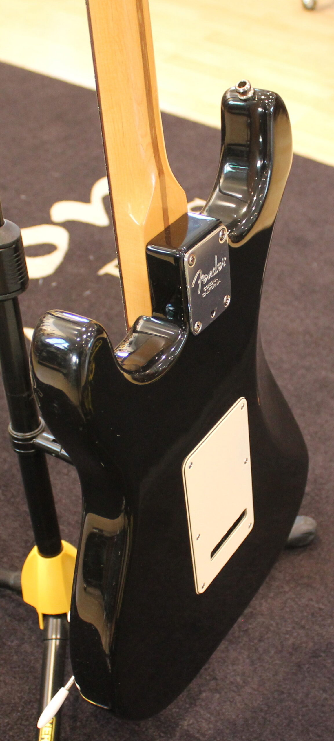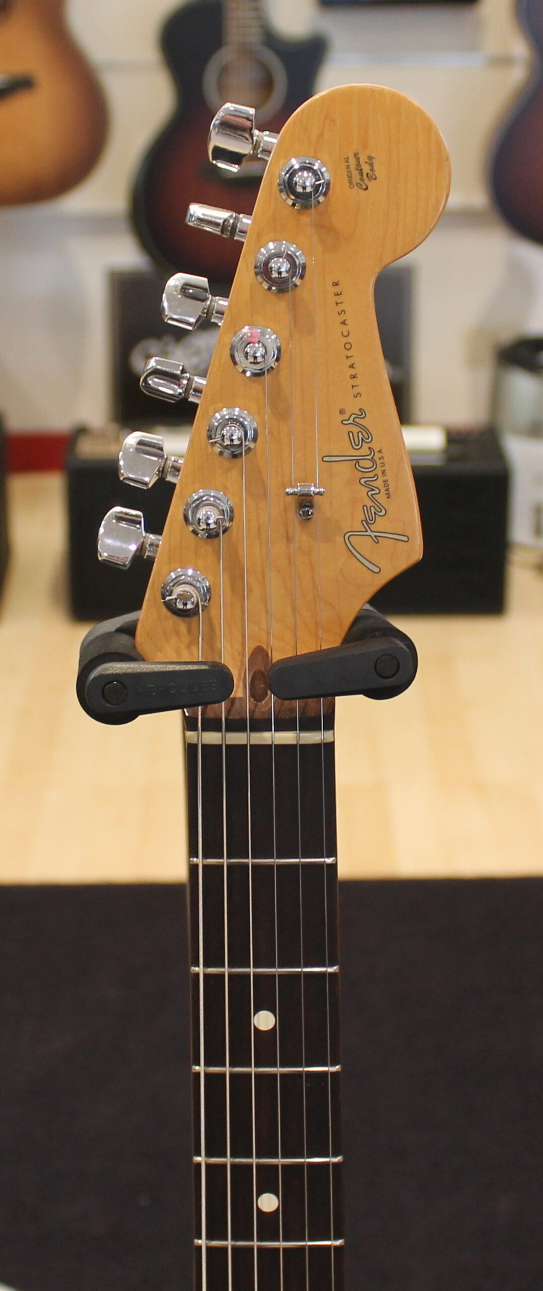 Alder body, maple neck, rosewood fingerboard, syncronized tremolo bridge, 3 x single-coil pickup, 1 x volume, 2 x tone, 5-way switchblade, hardcase, Made in USA