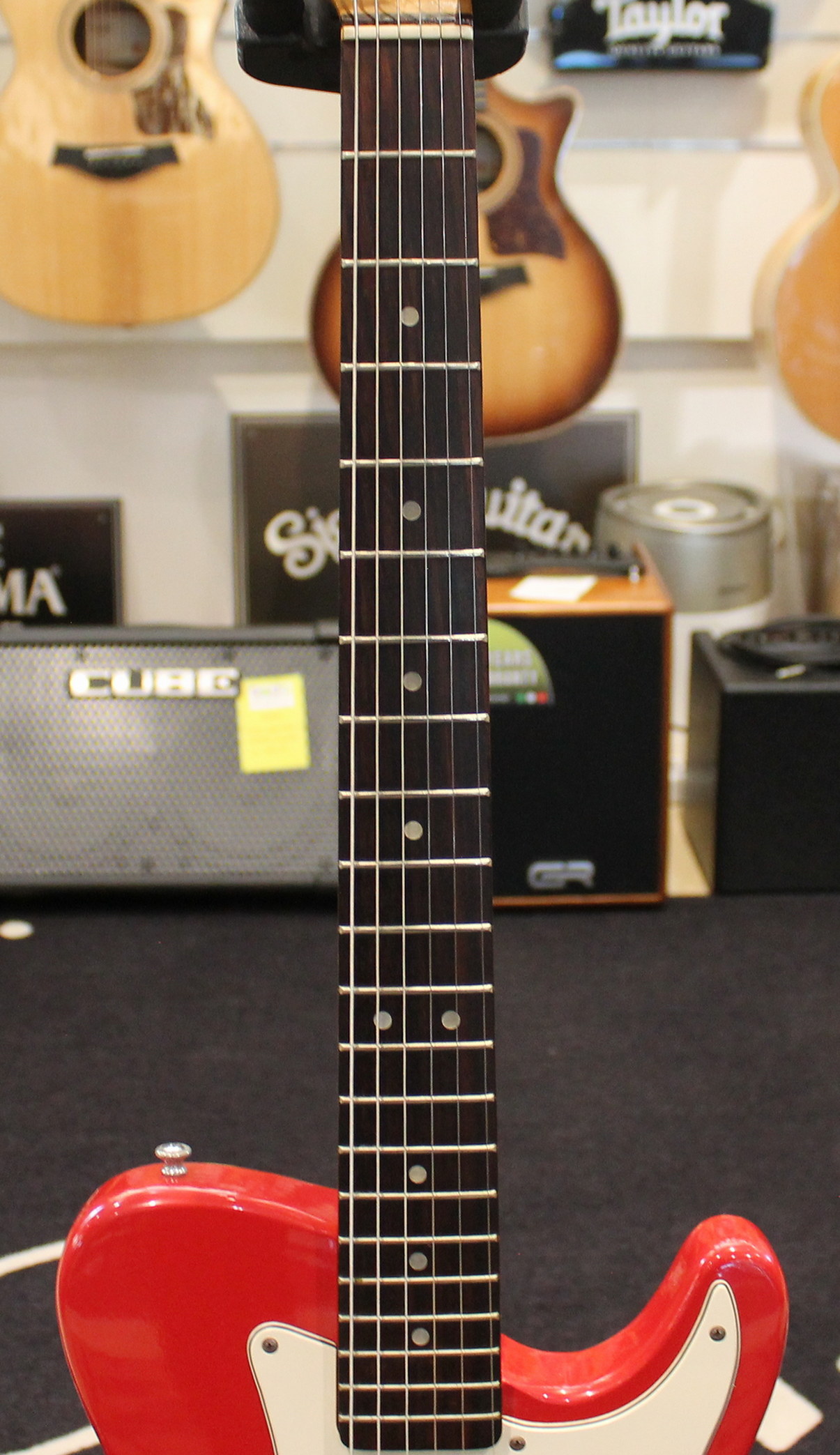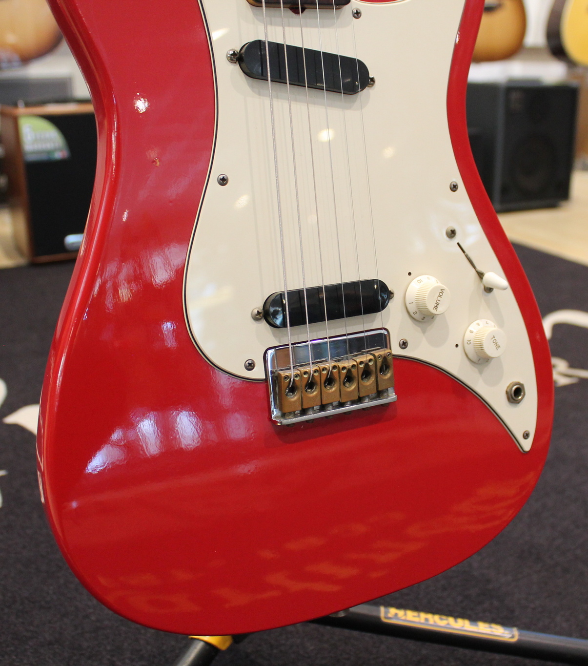 Dakota Red, basswood body, maple neck, rosewood fingerboard, 2 x single-coil pickup, 3-way switch, 1 x volume, 1x tone, Made in USA in 1981, hardcase