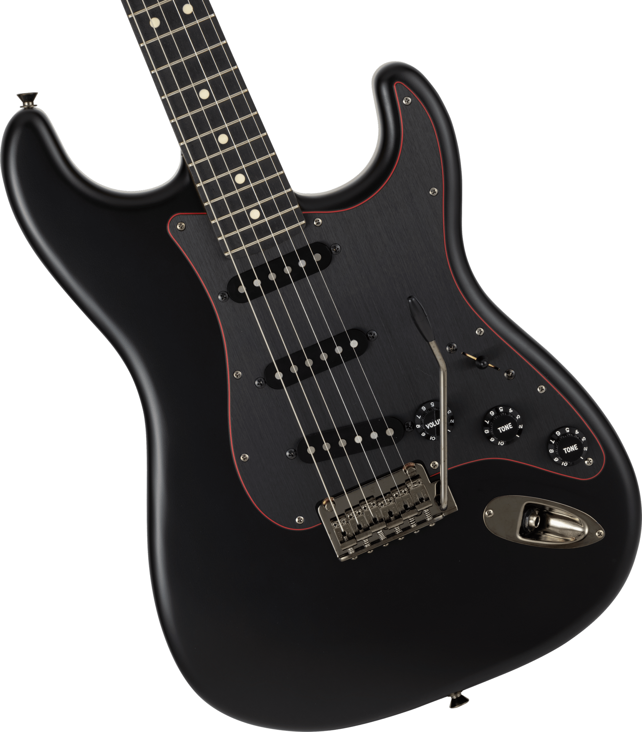 Il battipenna nero a tre strati con un appariscente strato centrale rosso insieme al logo rosso metallizzato sulla paletta, creano un look unico. Tutte le parti metalliche e plastiche sono nere, con un capotasto nero in osso sintetico a completare il look.