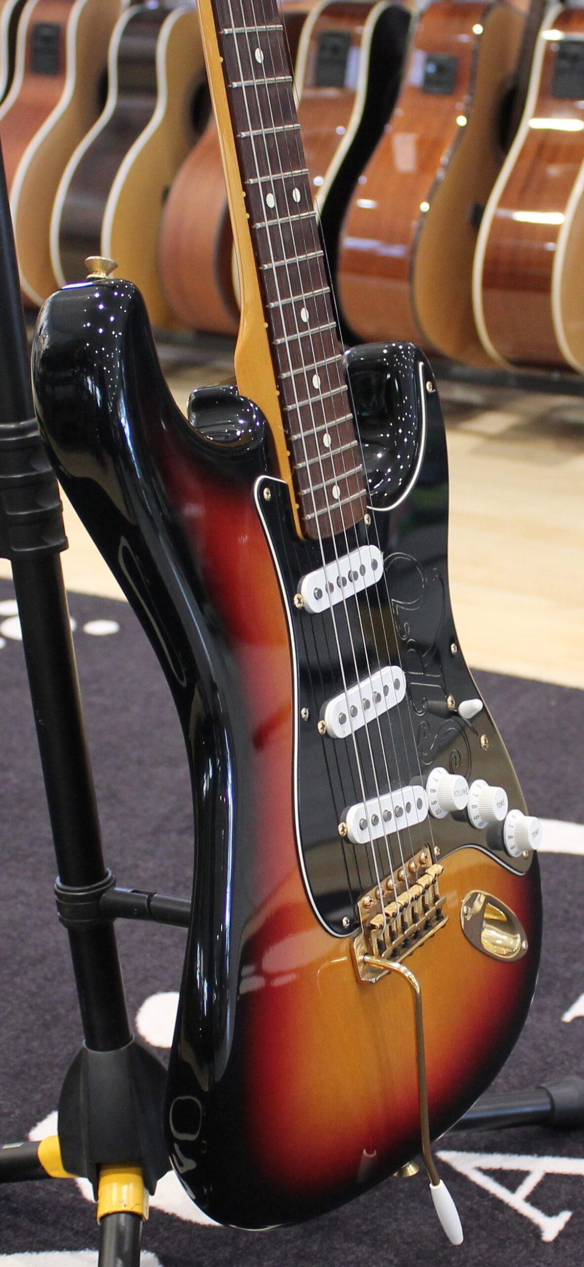 Other Features: Deep, Thick Oval Shape Neck, Gold Plated Vintage Hardware, Engraved SRV Pickguard, Left Handed American Vintage Tremolo