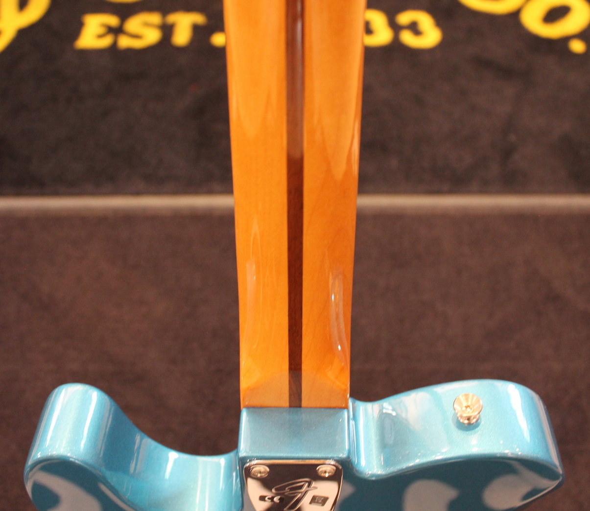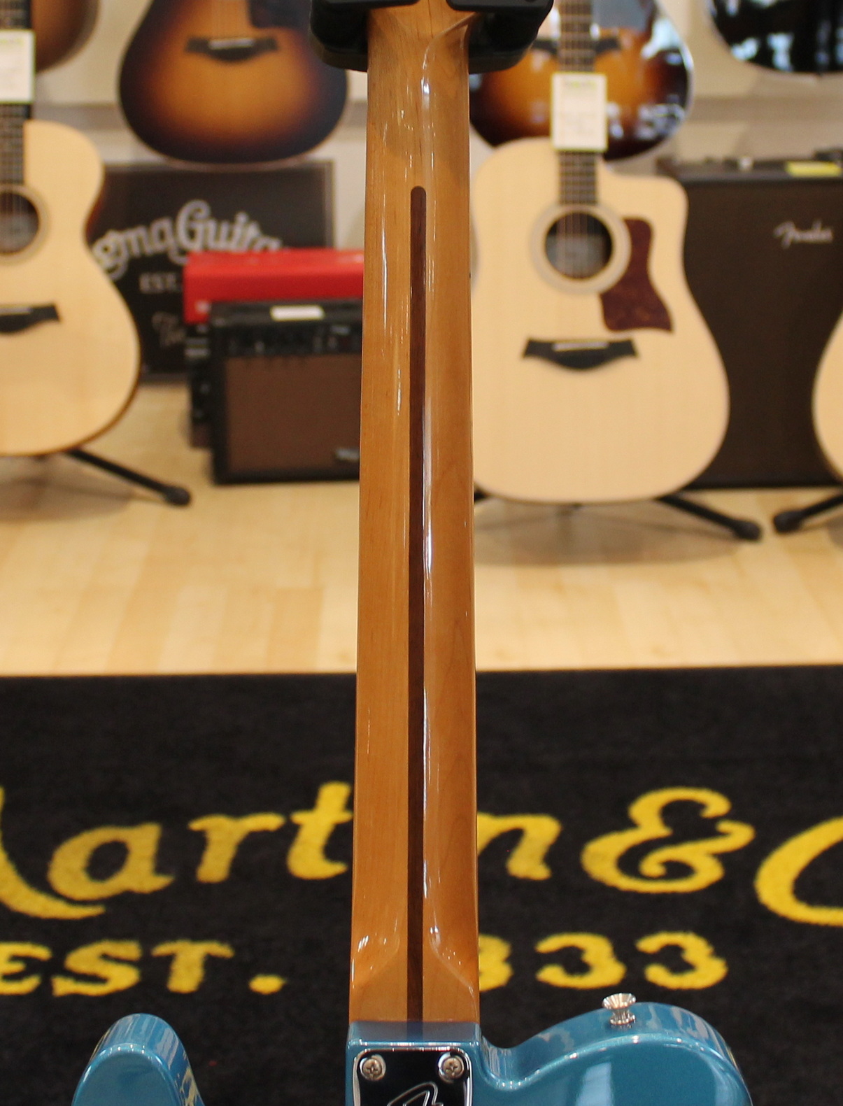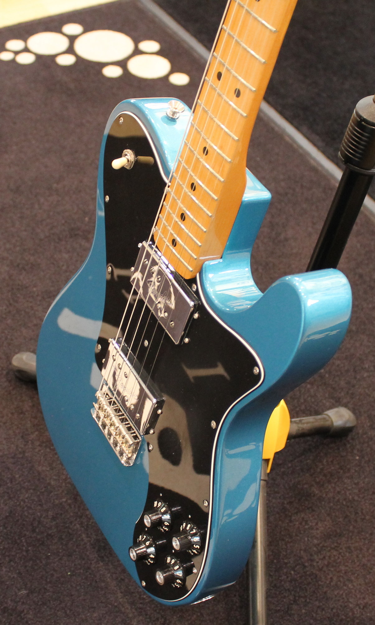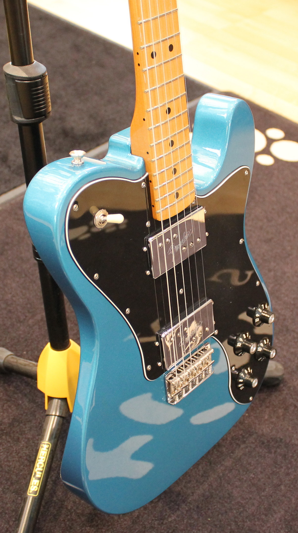 Fender Vintera 70s Telecaster Deluxe MN Electric Guitar, Lake Placid Blue color. The Fender Vintera 70s Telecaster Deluxe is a 6-string electric guitar. Maple neck and fingerboard, with Thin C profile, 9.5″ radius and 21 Medium Jumbo frets. Alder body with Nitrocellulose coating. Two refurbished Wide Range humbucking pickups for increased output. Separate volume and tone controls for each pickup, 3-position selector switch. Chrome-plated mechanisms and hardware.