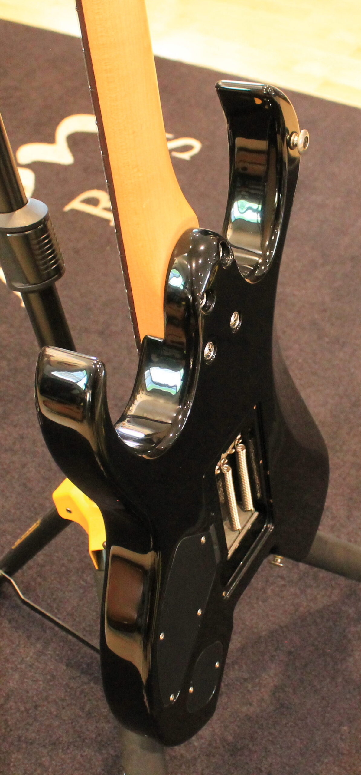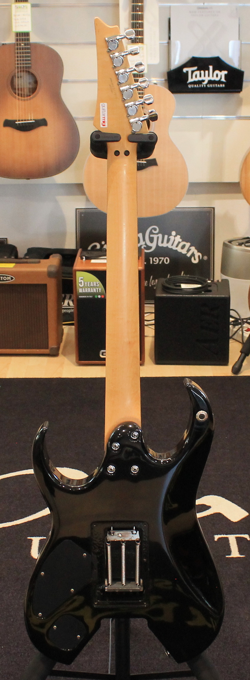 Output jack: ¼” stereo barrel (mounted on inside of rear cutaway)