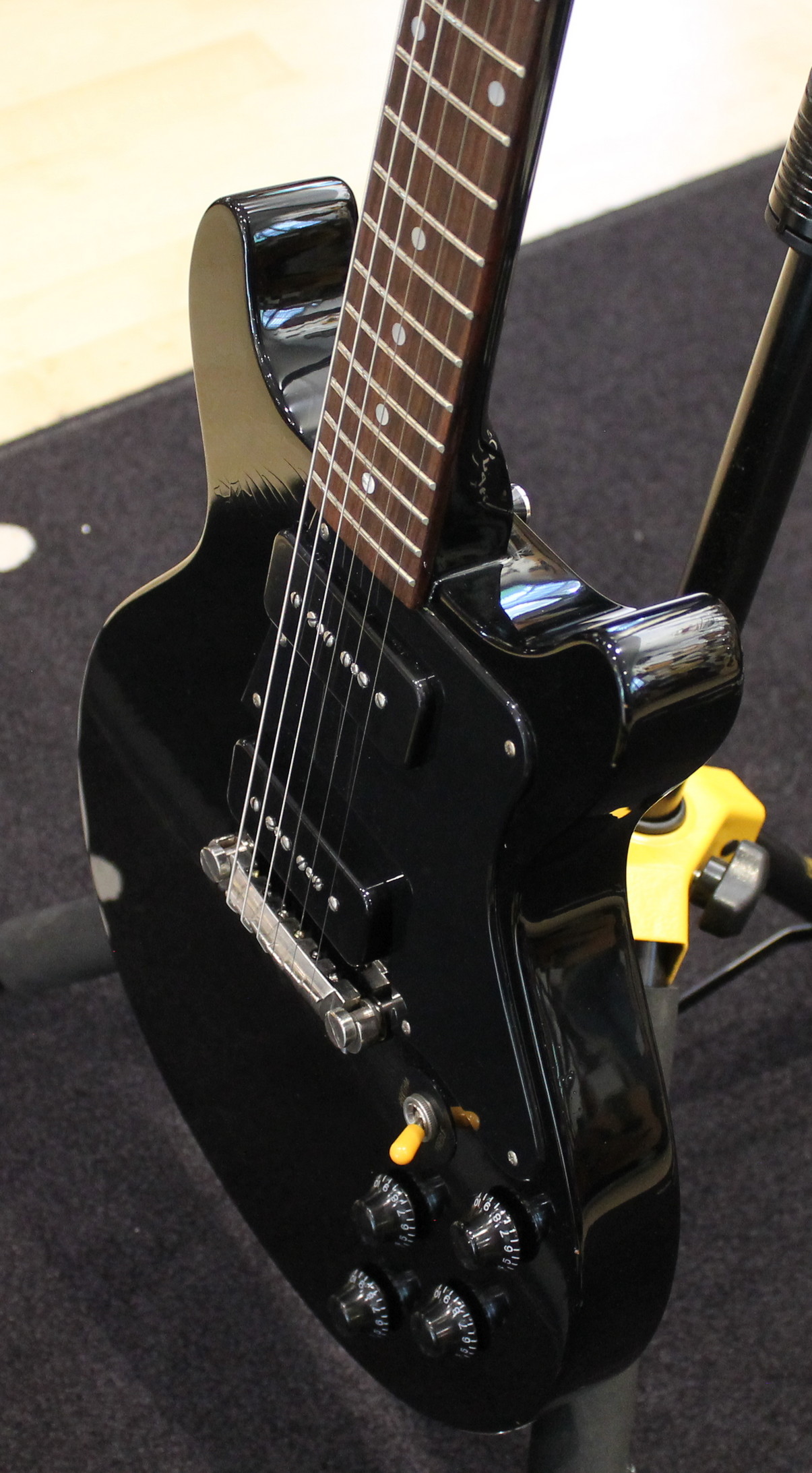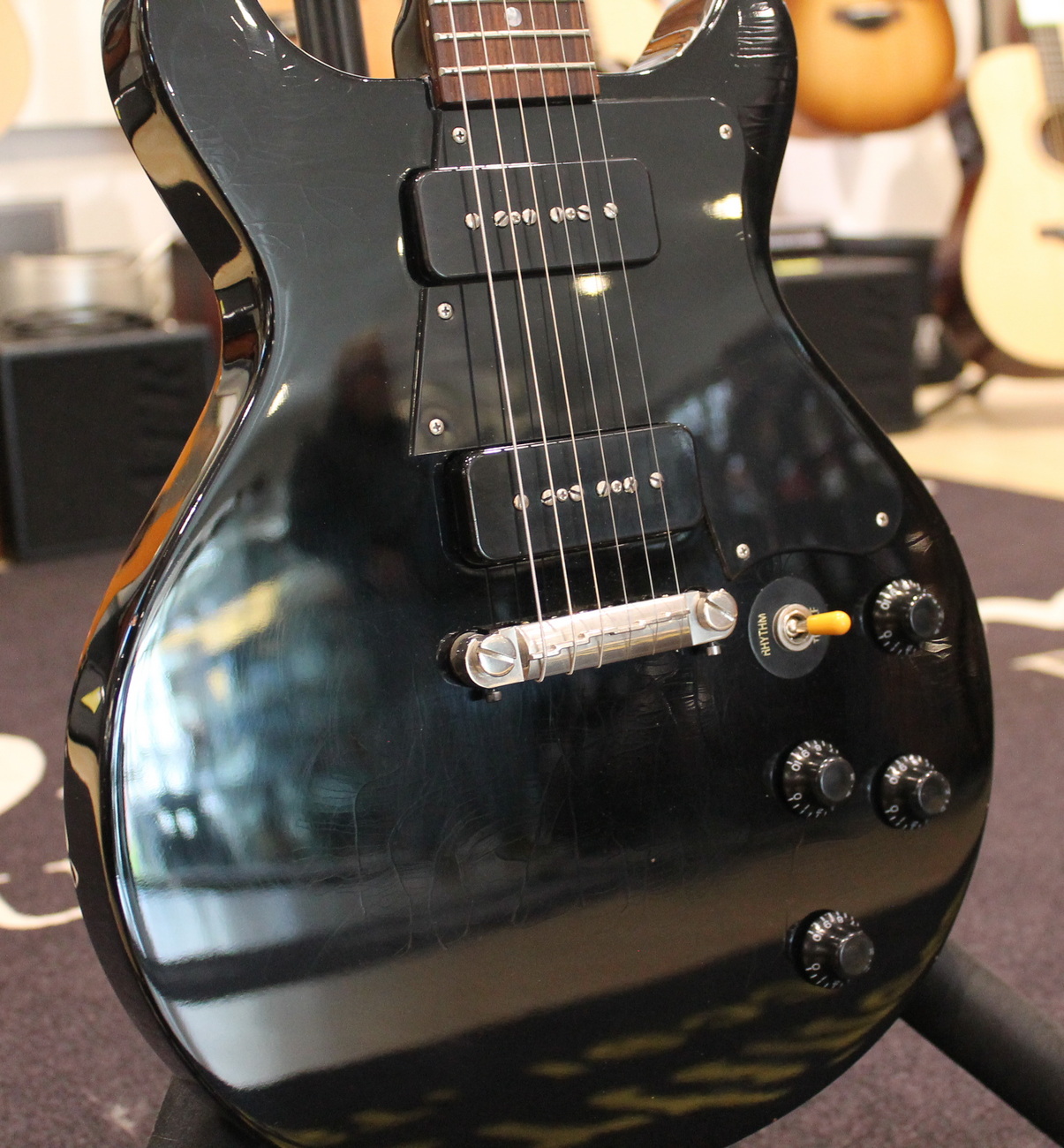Neck Pickup | Amber P90 Bridge Pickup | Amber P90 Wiring | Modern, Hand-Wired Controls | 1V/1T Switch | 3-Way Toggle Pots | Vintage Style, Made in USA Capacitor | 0.047 uF
