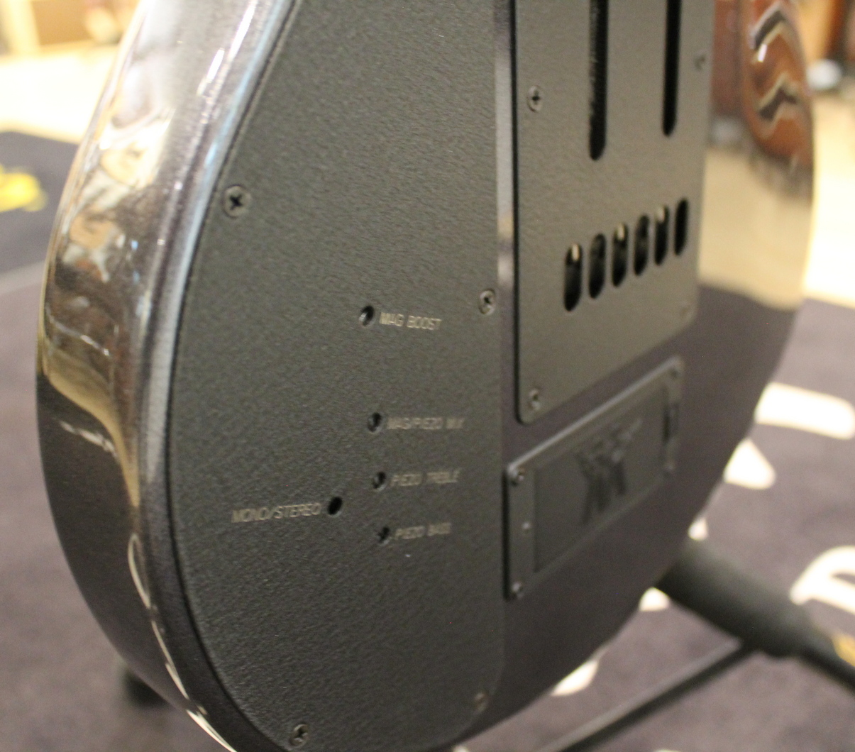 Selettore Selettore pickup a 3 vie, con configurazione custom; Selettore piezo/magnetico a 3 vie, manopola uscita momentary mono/stereo (Piezo Volume)