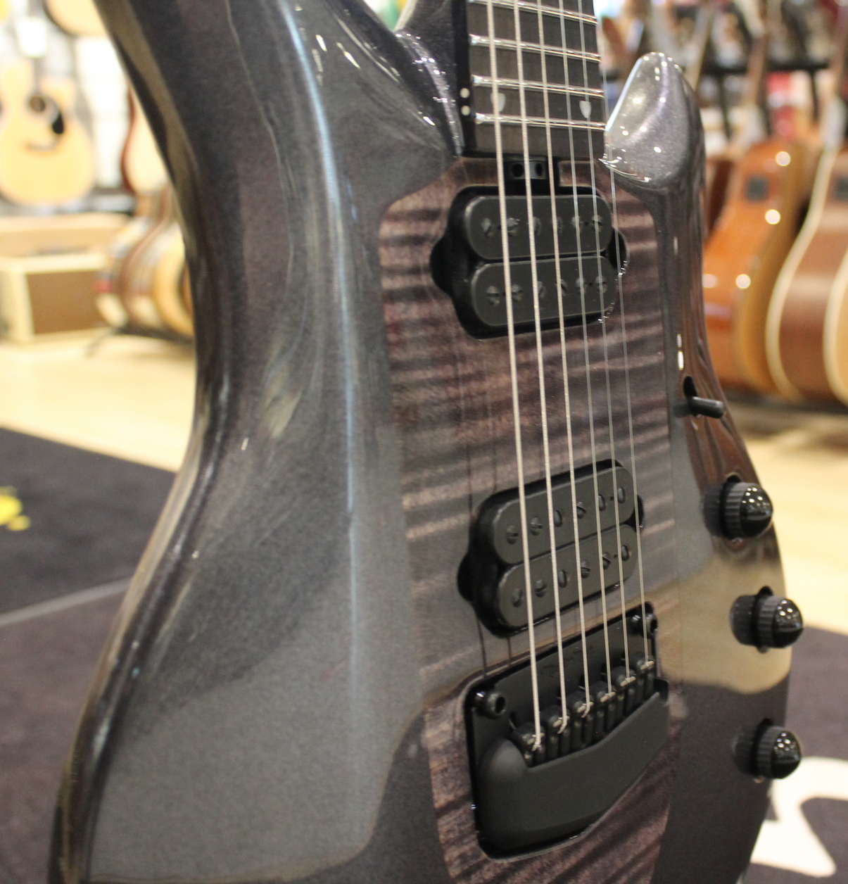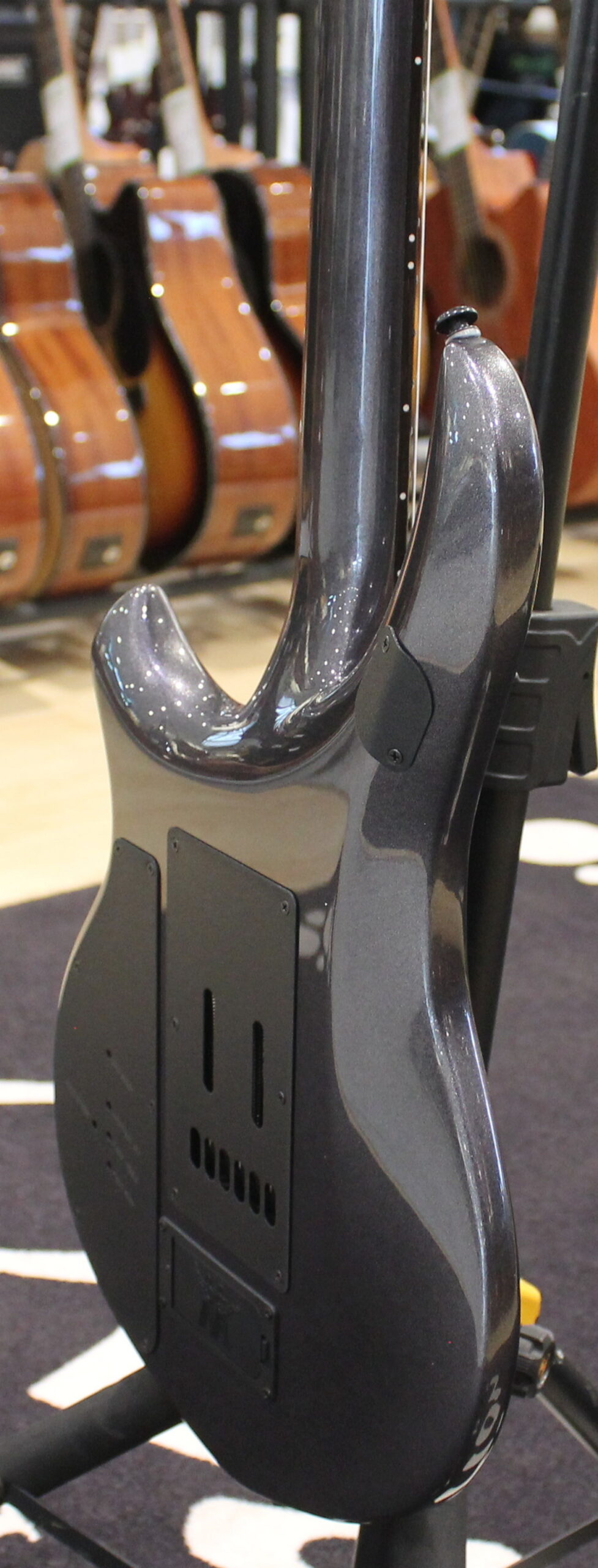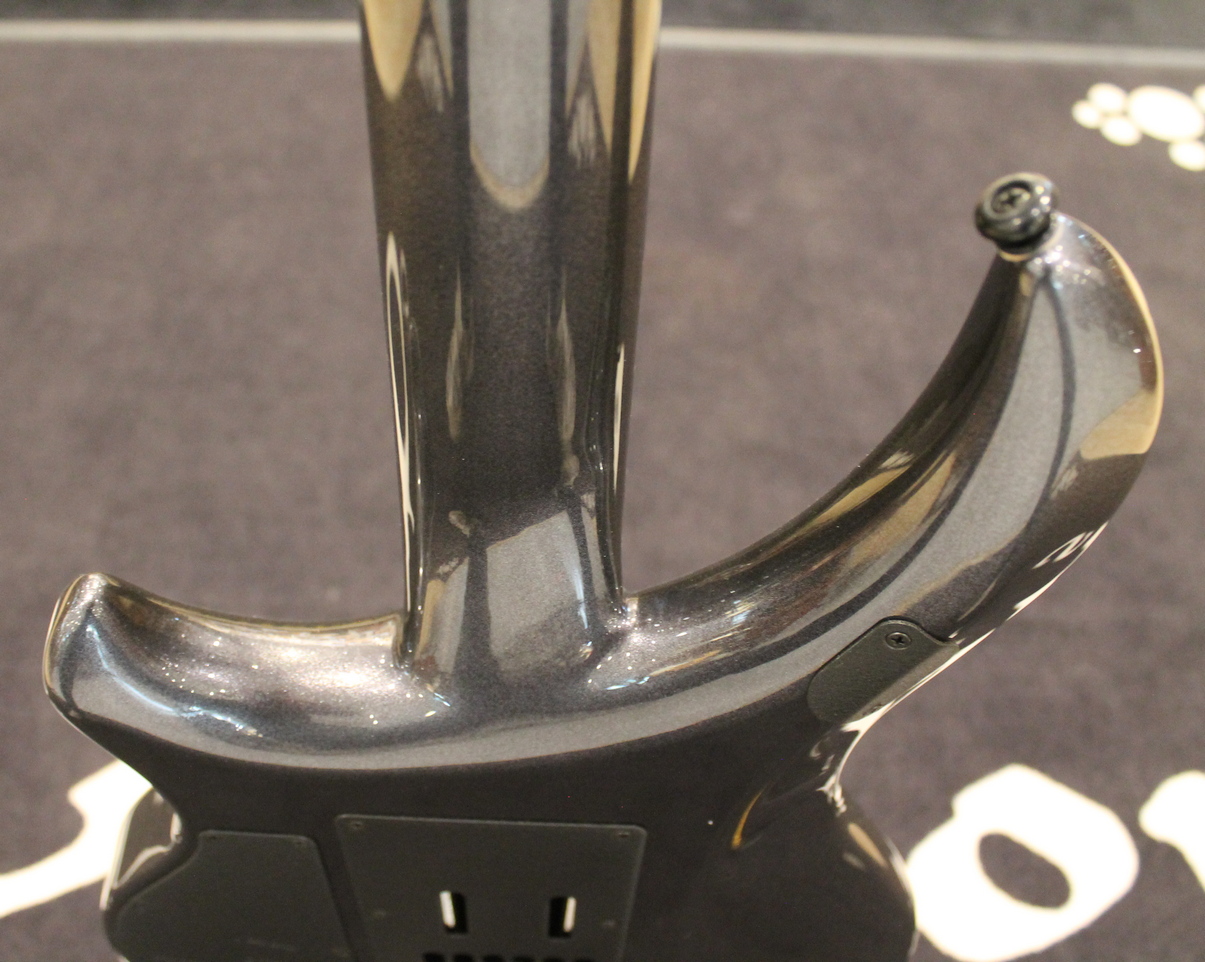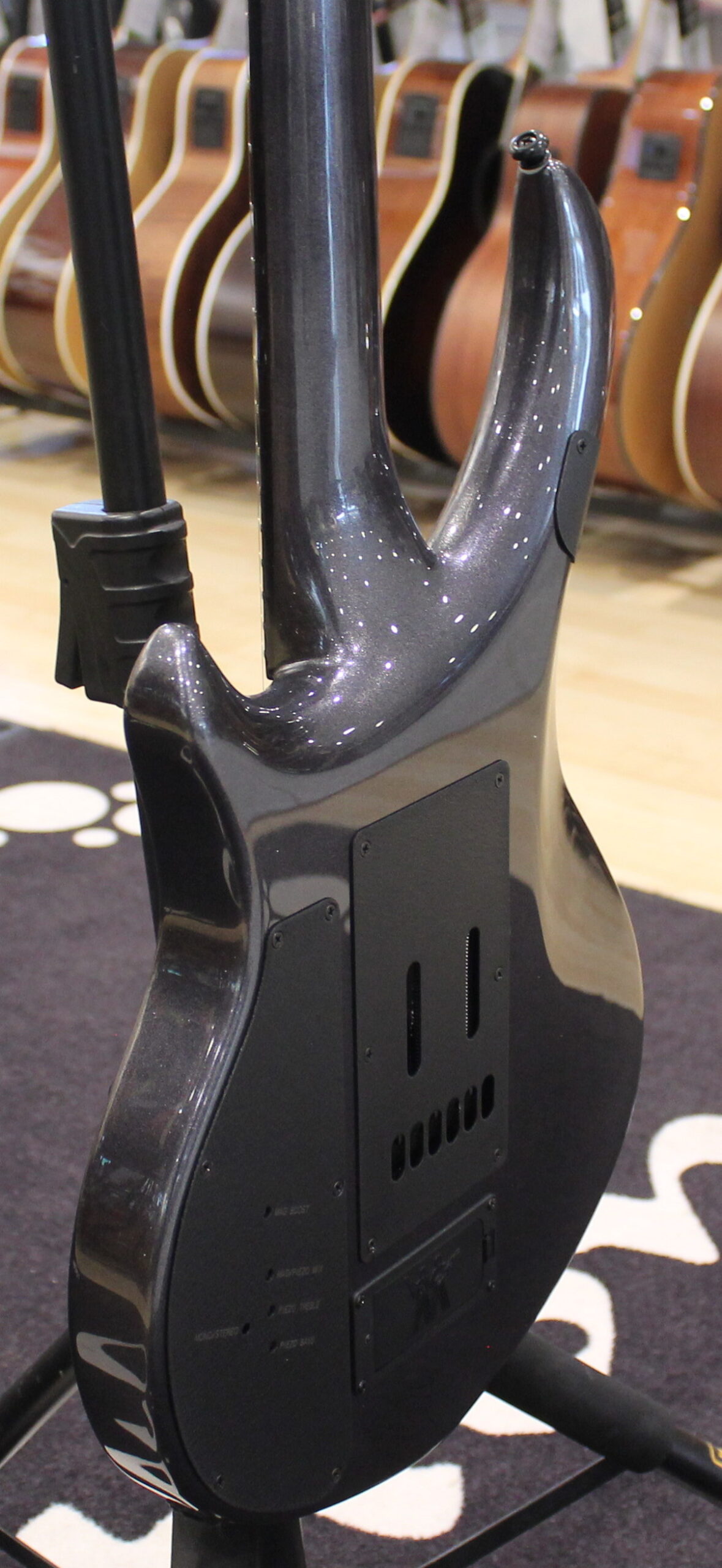 Caratterizzata da un design neck-through con top in acero utilizzando legni selezionati a mano importati dai migliori fornitori al mondo di legno di provenienza sostenibile: body di ontano, tiglio, mogano e acero scelti individualmente e abbinati in base alle qualità timbriche.