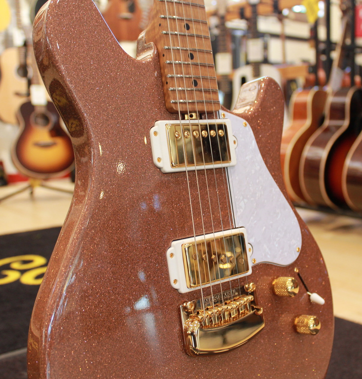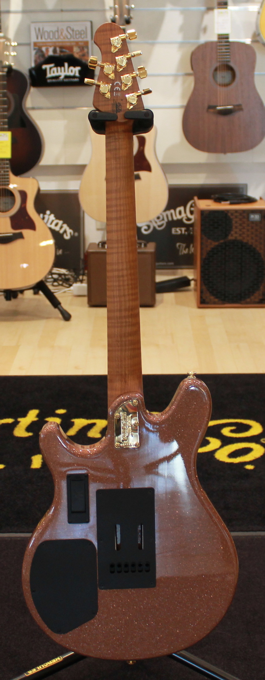 Custom Music Man® active preamp controls; push/push volume for boost on gain, passive .022µF tone, 500kohm push/push on tone for pickup configuration
