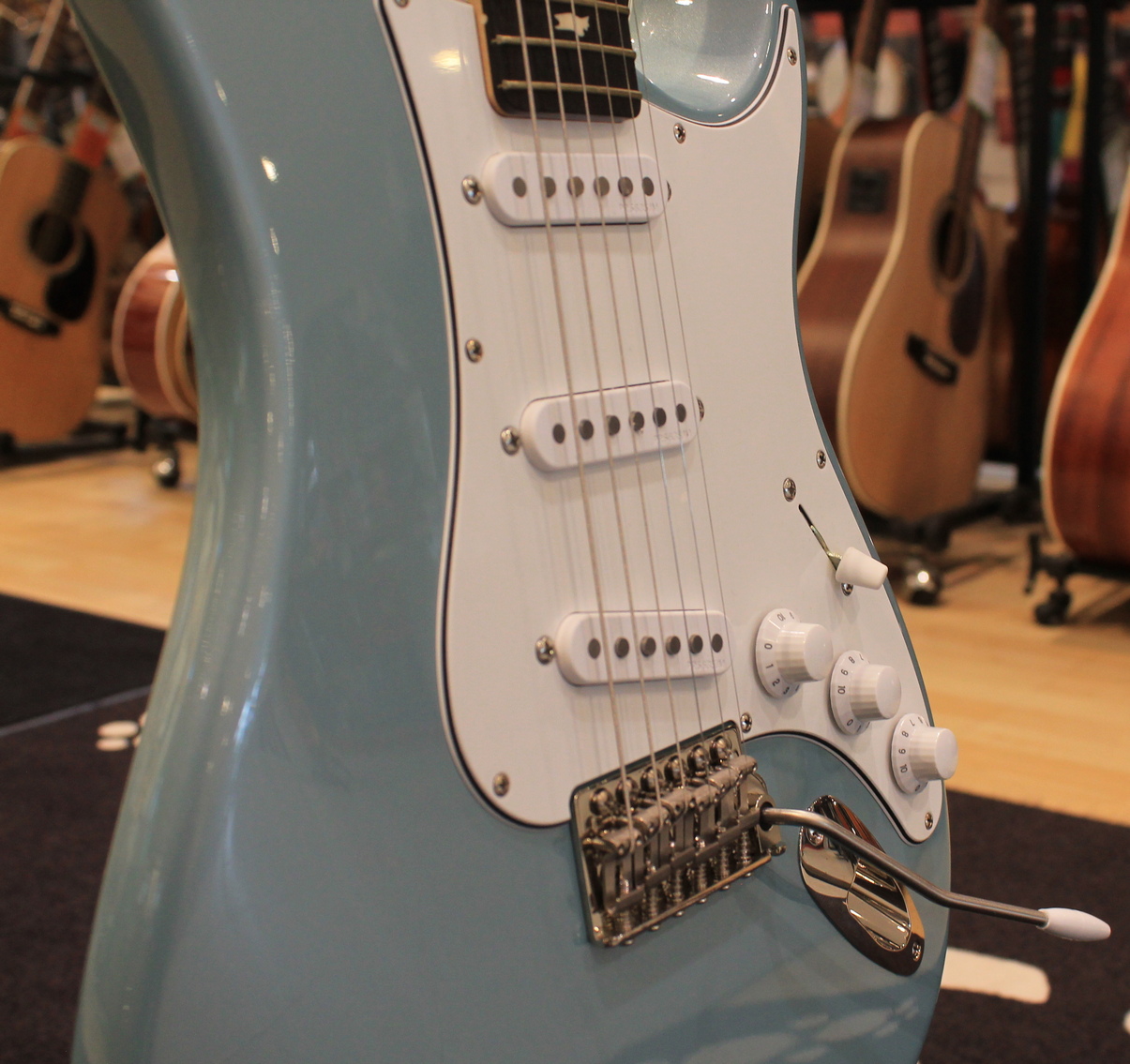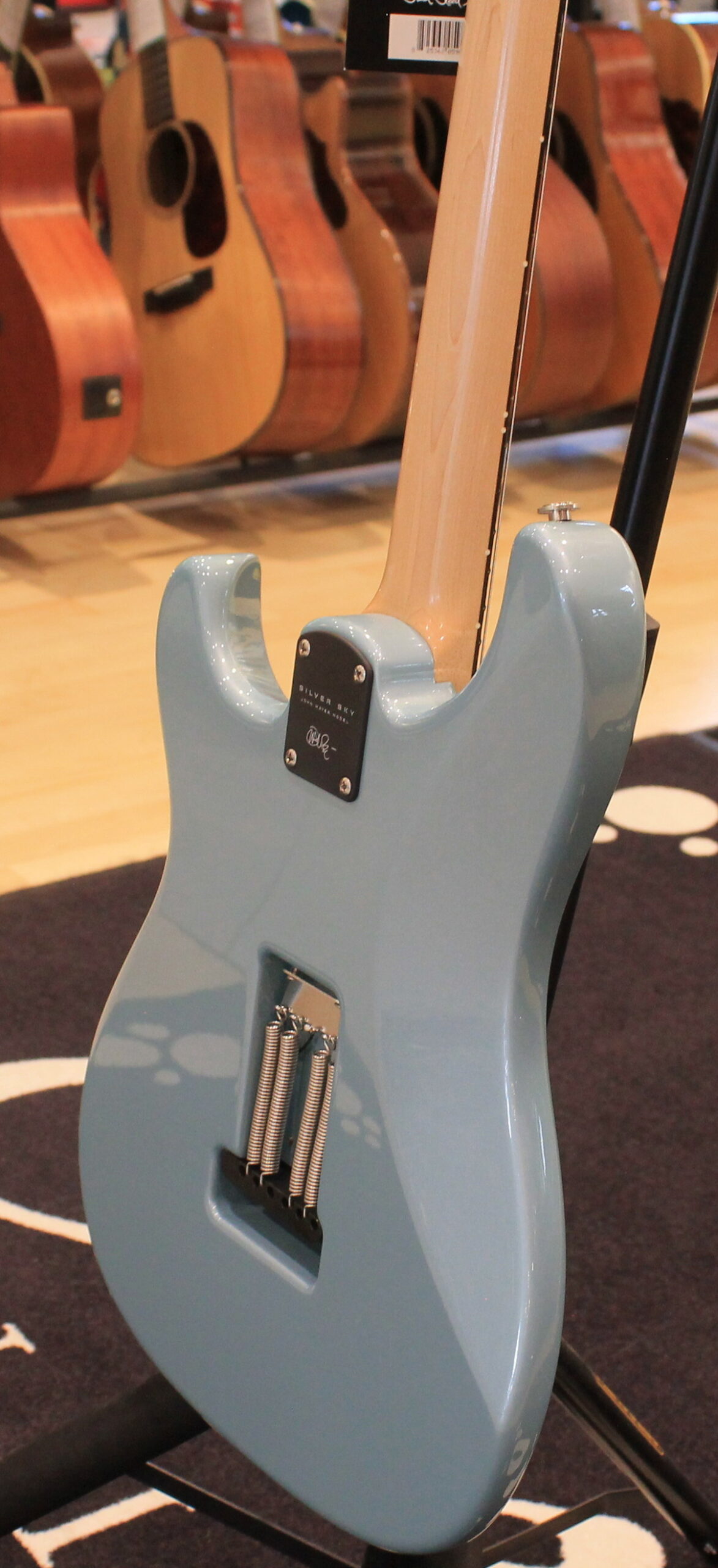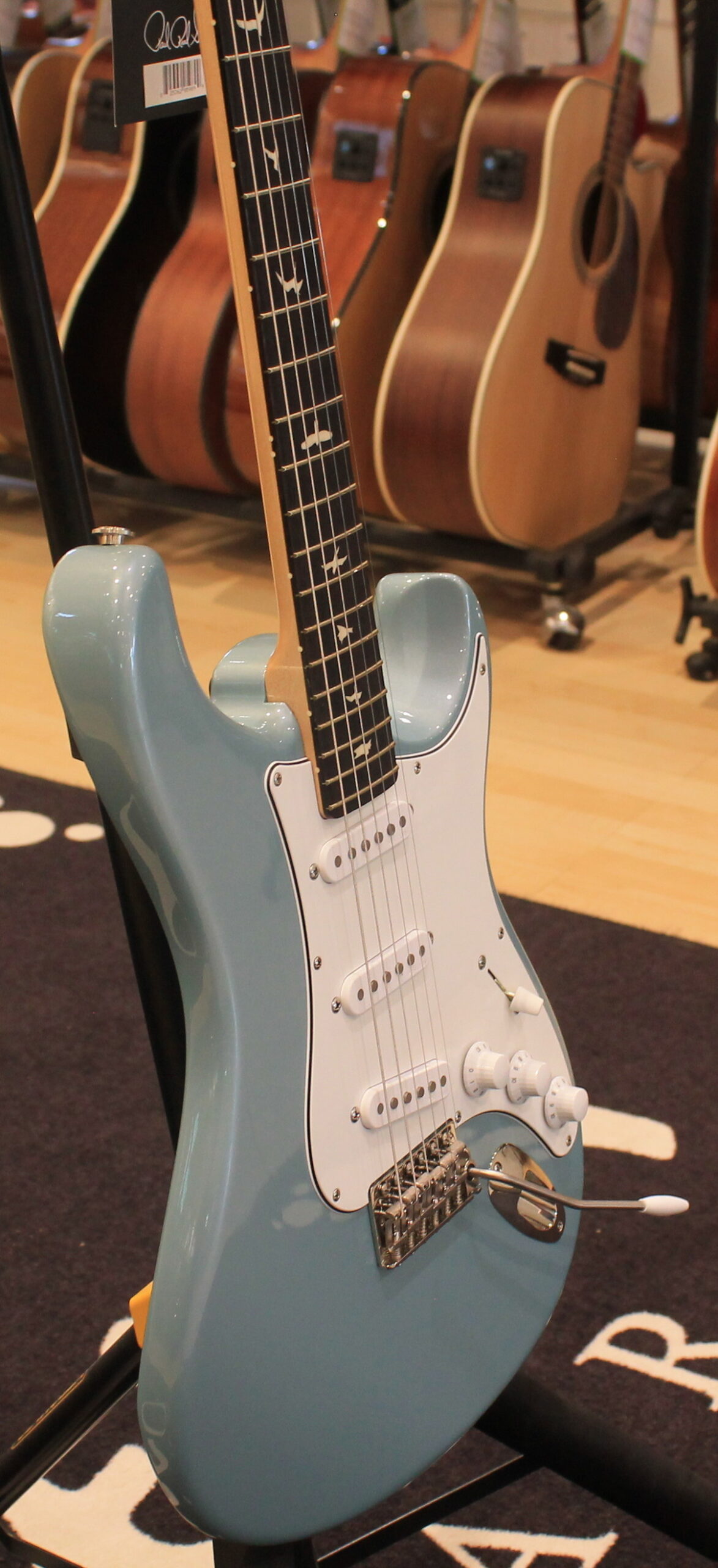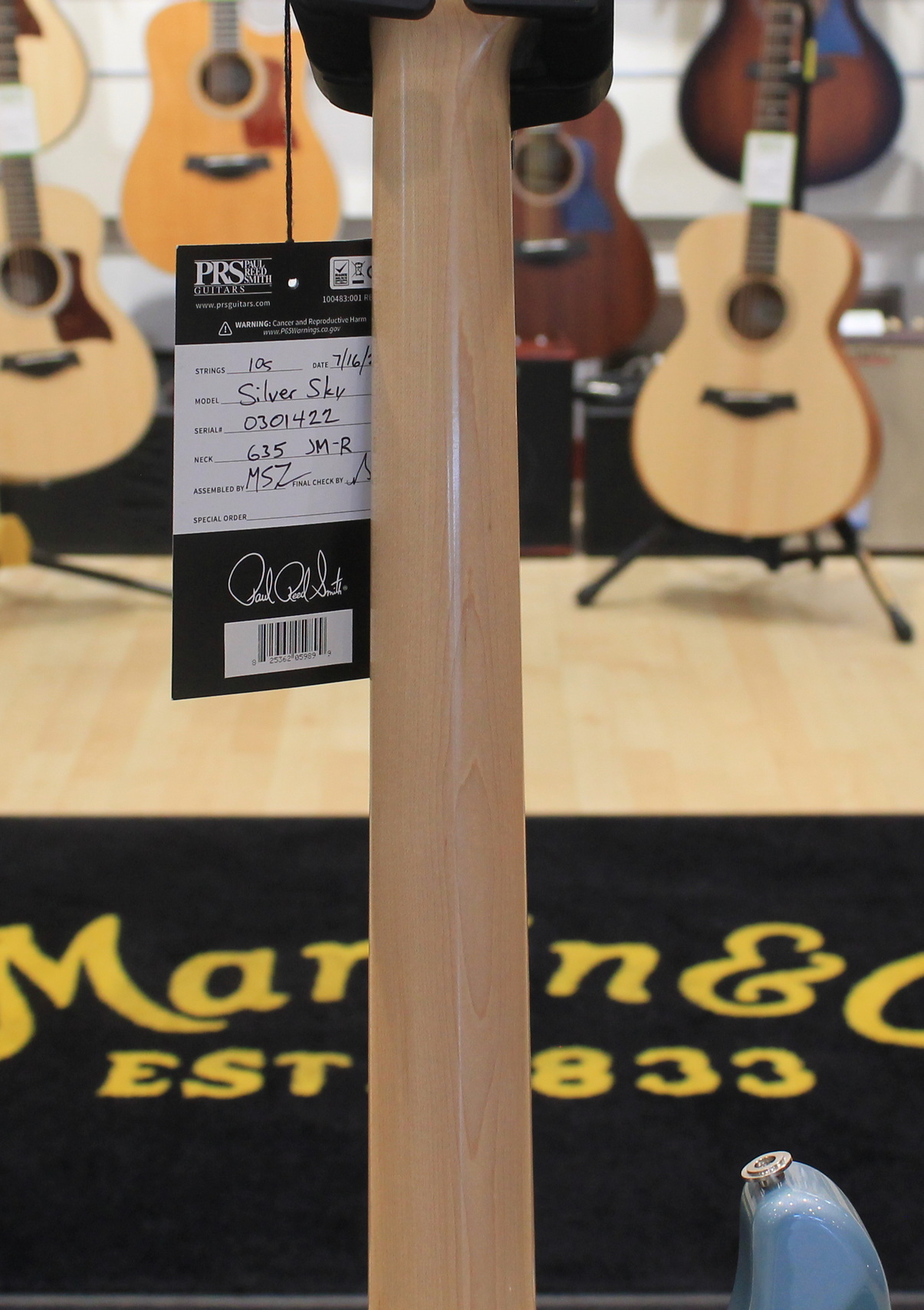 La chitarra elettrica PRS Silver Sky è il risultato della collaborazione tra Paul Reed Smith e John Mayer. Il modello Silver Sky è uno strumento dalle caratteristiche Vintage e si basa sul perfetto mix tra due strumenti Vintage, uno del 1963 ed uno del 1964, di proprietà degli stessi John Mayer e Paul Reed Smith. Le caratteristiche includono un particolare shape della paletta basata sullo stile PRS ma invertita, per adattarsi al meglio allo stile di John Mayer e mantenere allo stesso tempo una consistente lunghezza delle corde prima del nut per un’accordatura più stabile. Le meccaniche sono in stile vintage, il manico è un perfetto mix tra i manici degli strumenti del 1963 e del 1964, la tastiera è in Palissandro o Acero e il ponte tremolo in acciaio offre una risonanza migliore grazie al contatto con il corpo ed è dotato di molte delle caratteristiche presenti nel ponte GEN III. I pickup sono single coil 635JM dal suono pieno e rotondo. La chitarra è disponibile nelle colorazioni Dodgem Blue, Frost, Golden Mesa, Midnight Rose, Moc Sand, Orion Green, Tungsten, Polar Blue