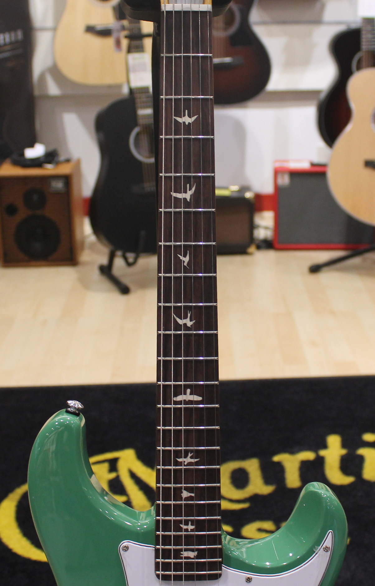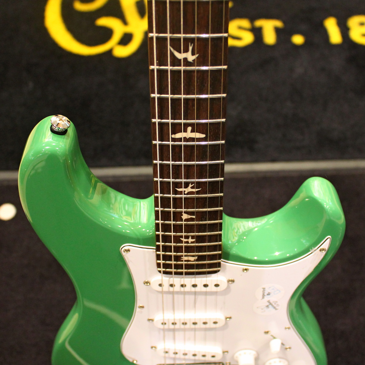 The PRS SE Silver Sky is an affordable version of the original Silver Sky model first introduced with John Mayer in 2018. This workhorse guitar provides expansive tone and playability in four distinct colors, and offers unique aesthetics, feel, and sound. The PRS SE Silver Sky features a poplar body, bolt-on maple neck, and rosewood fingerboard with PRS’s iconic bird inlays. The 22-fret fingerboard with an 8.5-inch radius, 25.5-inch scale, and neck with classic 635JM profile will make you feel right at home. Plug it in to make its three single-coil 635JM “S” pickups sing. This guitar features a two-point steel tremolo, a synthetic bone nut and vintage-style tuners. Other aesthetic features include the inverted headstock shape typical of the PRS Silver Sky and the PRS double-action truss rod, accessible from the front of the headstock for easy adjustment.