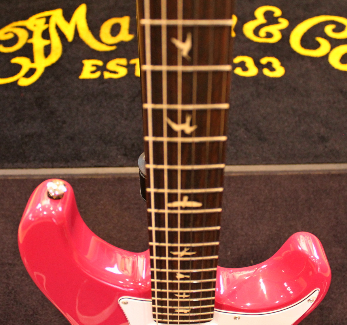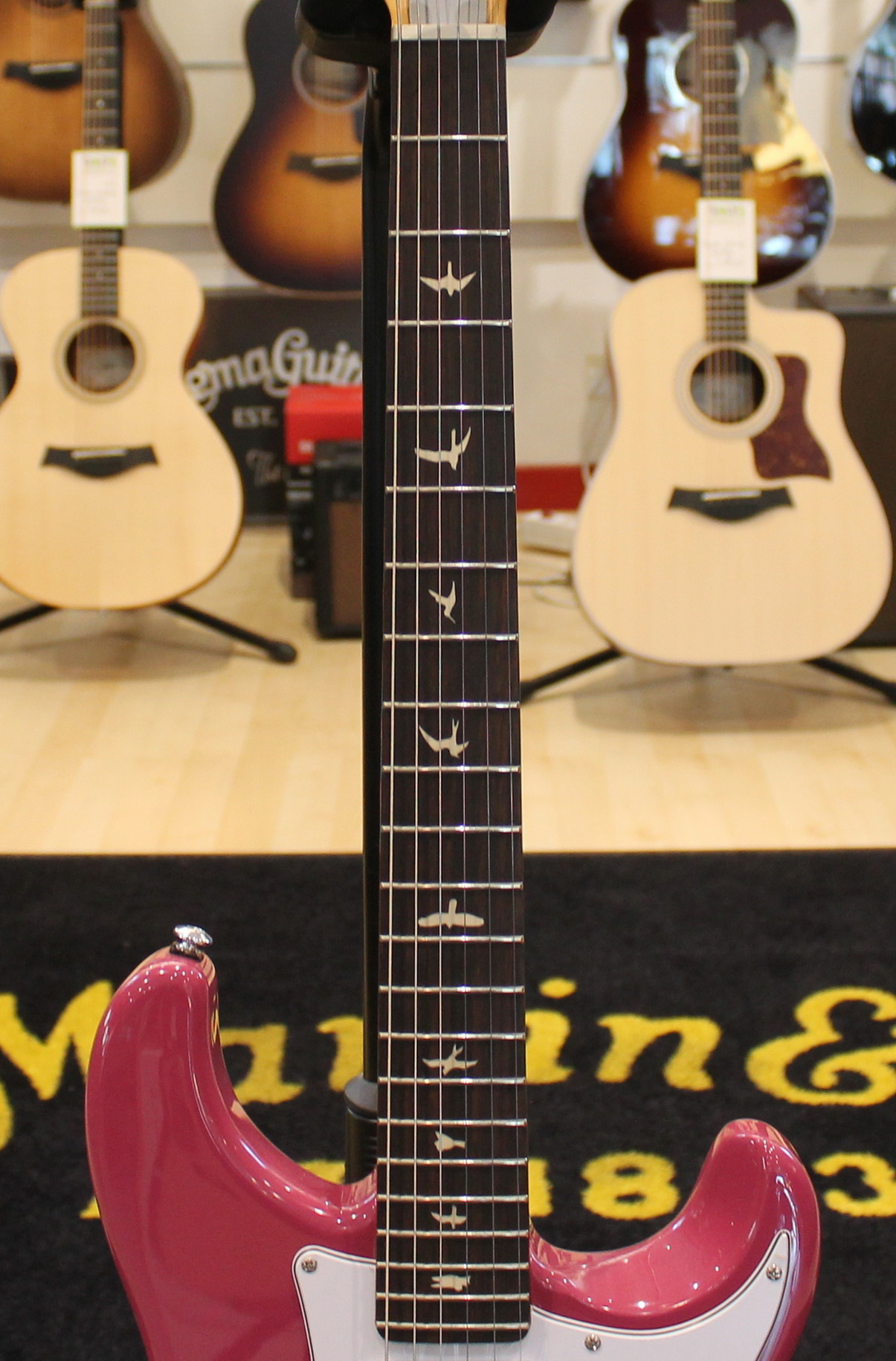 The SE Silver Sky replicates the original Silver Sky in the SE family, introduced with John Mayer in 2018, and offers a wide tonal range and high playability in four different colors.The PRS SE Silver Sky features a poplar body, bolt-on maple neck, and rosewood fingerboard with PRS’s iconic bird inlays. The 22-fret fingerboard with an 8.5-inch radius, 25.5-inch scale, and neck with classic 635JM profile will make you feel right at home. Plug it in to make its three single-coil 635JM “S” pickups sing. This guitar features a two-point steel tremolo, a synthetic bone nut and vintage-style tuners. Other aesthetic features include the inverted headstock shape typical of the PRS Silver Sky and the PRS double-action truss rod, accessible from the front of the headstock for easy adjustment.