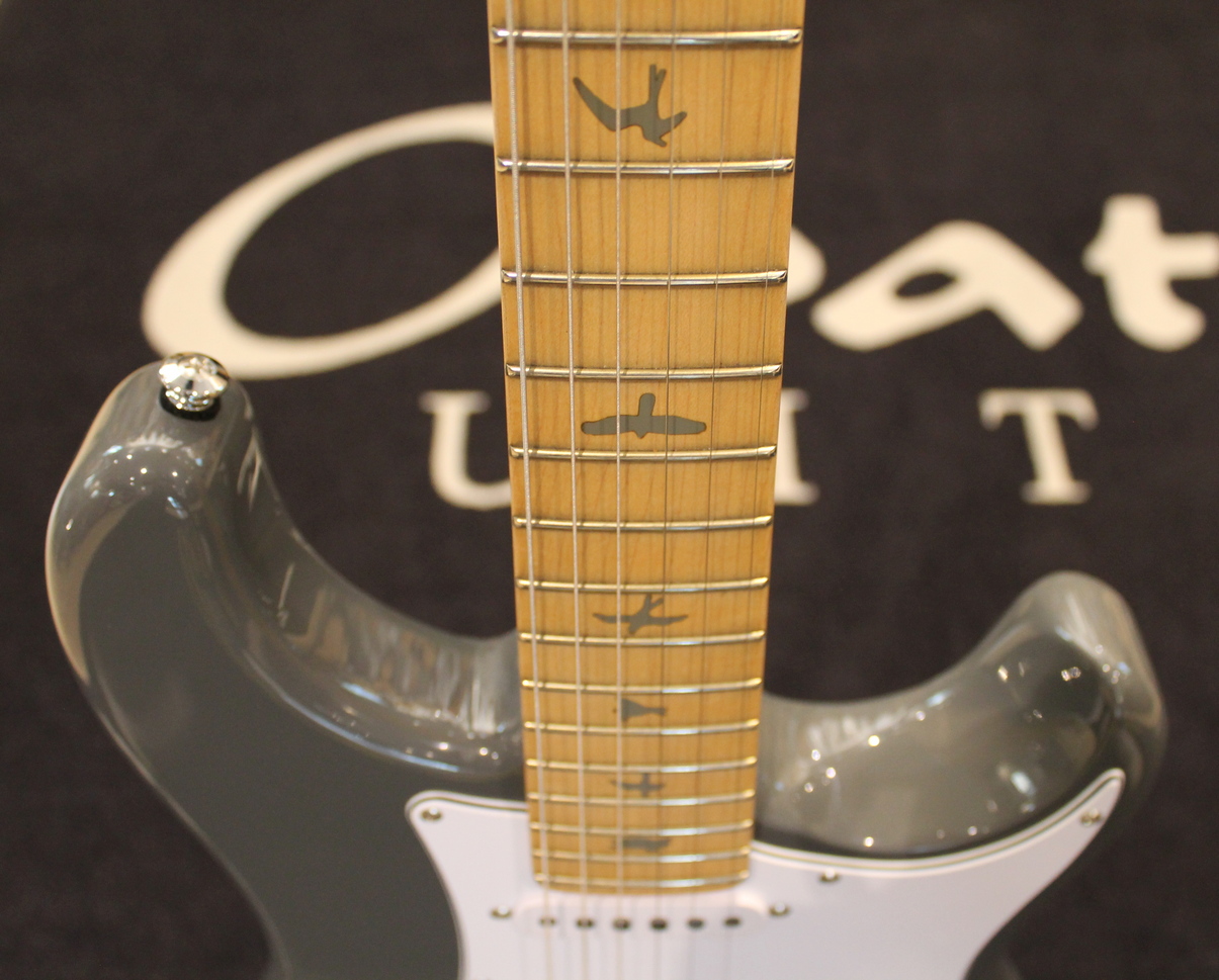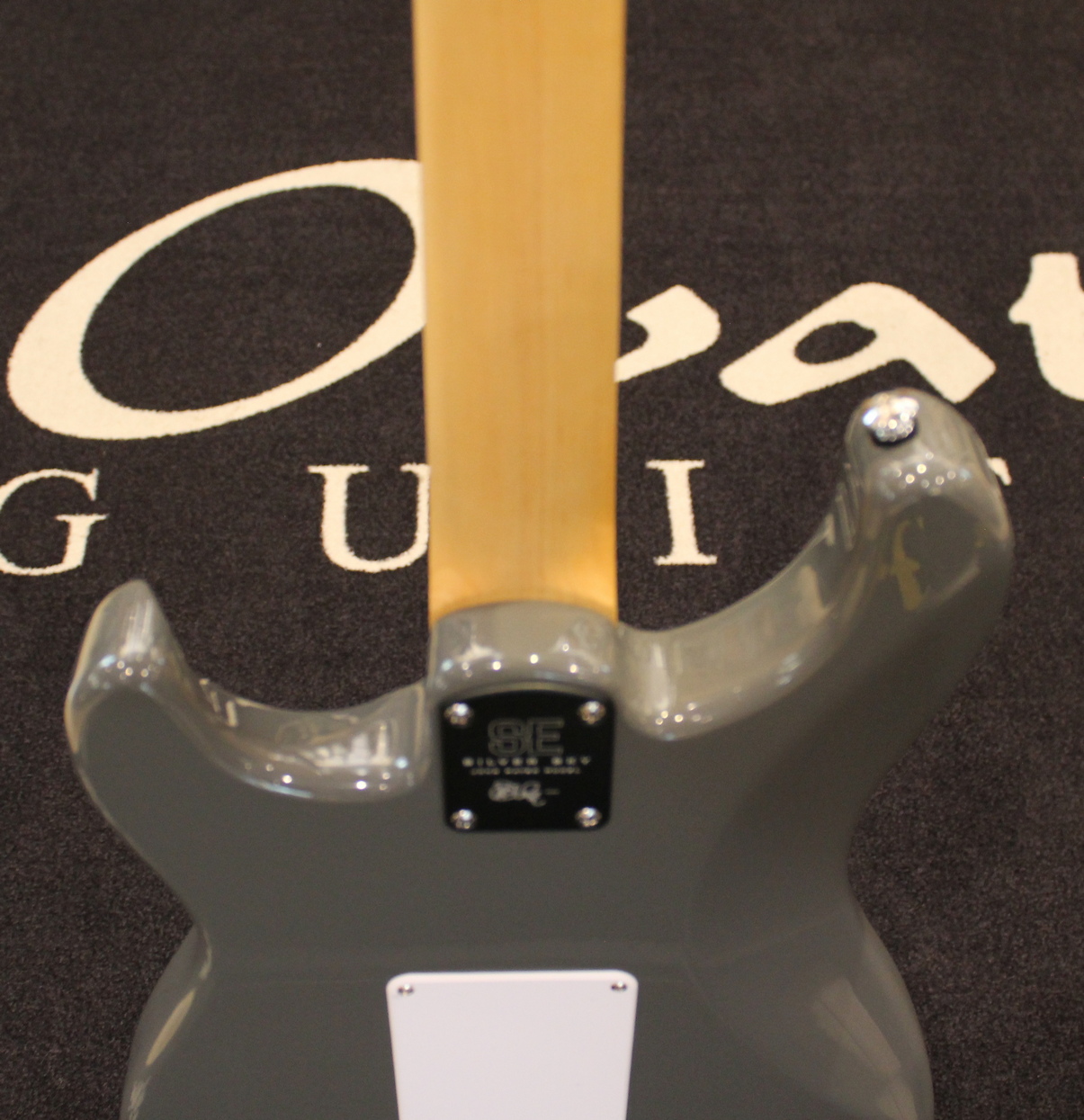 The PRS SE Silver Sky is the affordable version of the original Silver Sky model first introduced with John Mayer in 2018. This guitar, a true workhorse, provides broad tones and playability in four distinct colors, offering unique aesthetics, feel, and sound. The PRS SE Silver Sky features a poplar body, bolt-on maple neck, and rosewood fingerboard with PRS’ iconic bird inlays. The 22-fret fingerboard with an 8.5“ radius, 25.5” scale length, and classic 635JM neck profile will make you feel right at home. Plug it in to hear its three 635JM “S” single-coil pickups sing. This guitar features a two-point steel tremolo, a synthetic bone nut, and vintage-style tuners. Other aesthetic features include the reverse-shaped headstock typical of the PRS Silver Sky and the PRS double-action truss rod, accessible from the front of the headstock for easy adjustment.