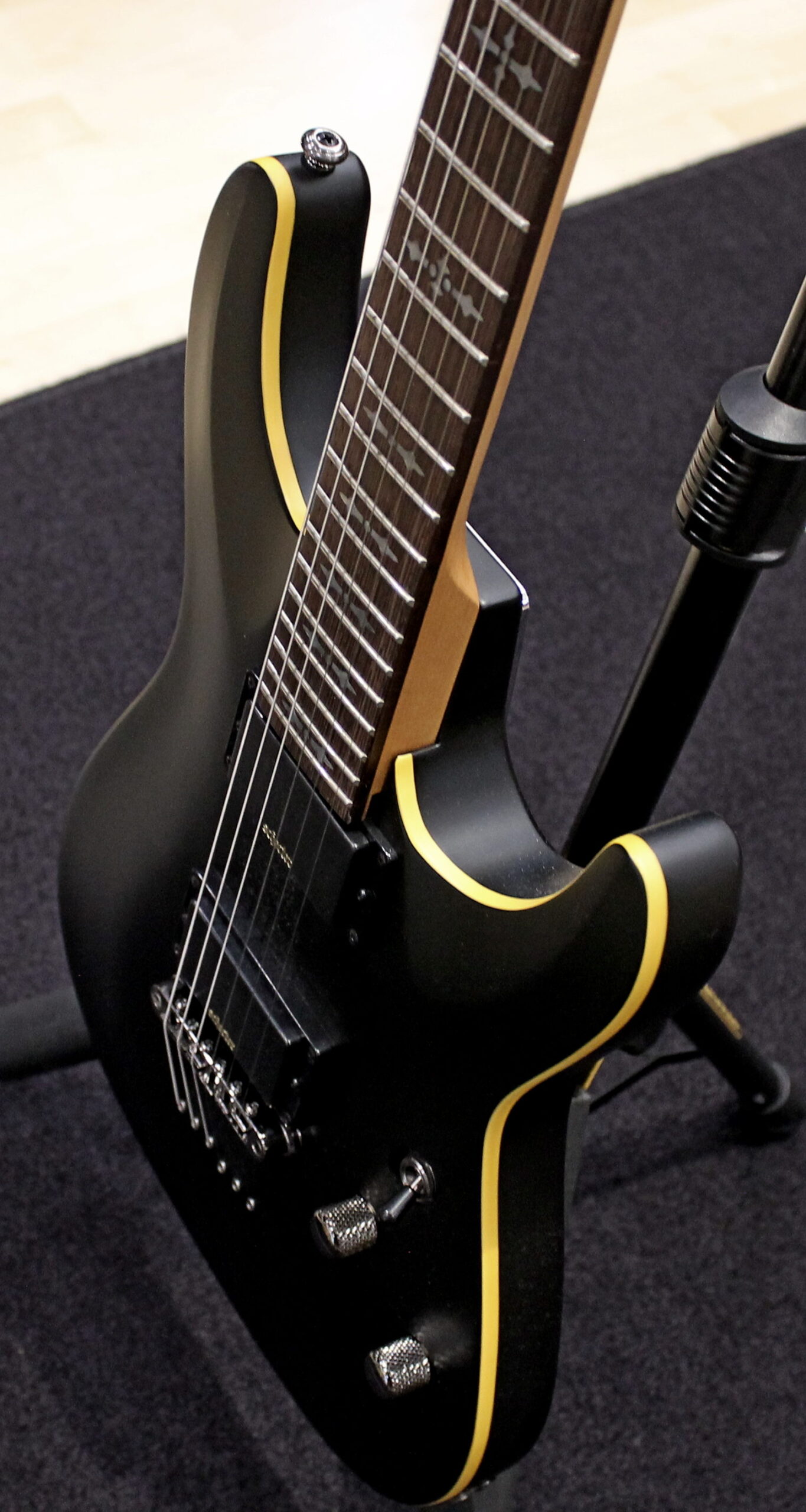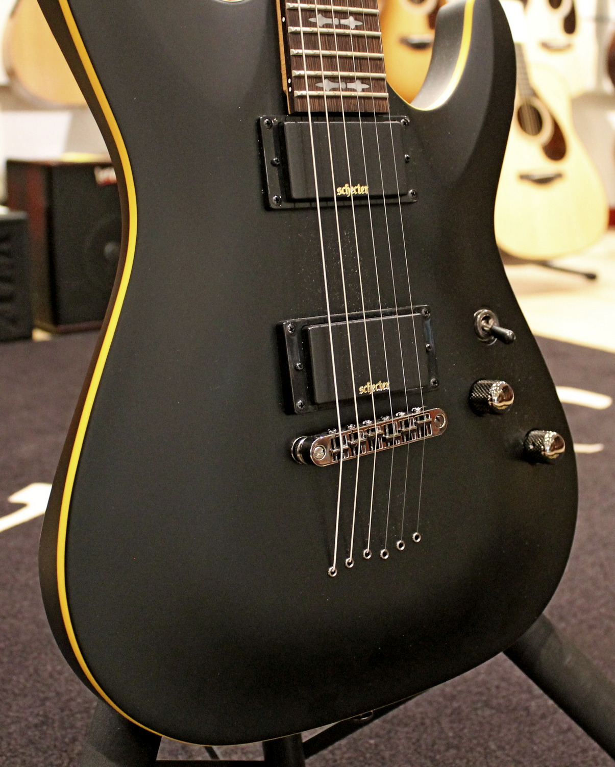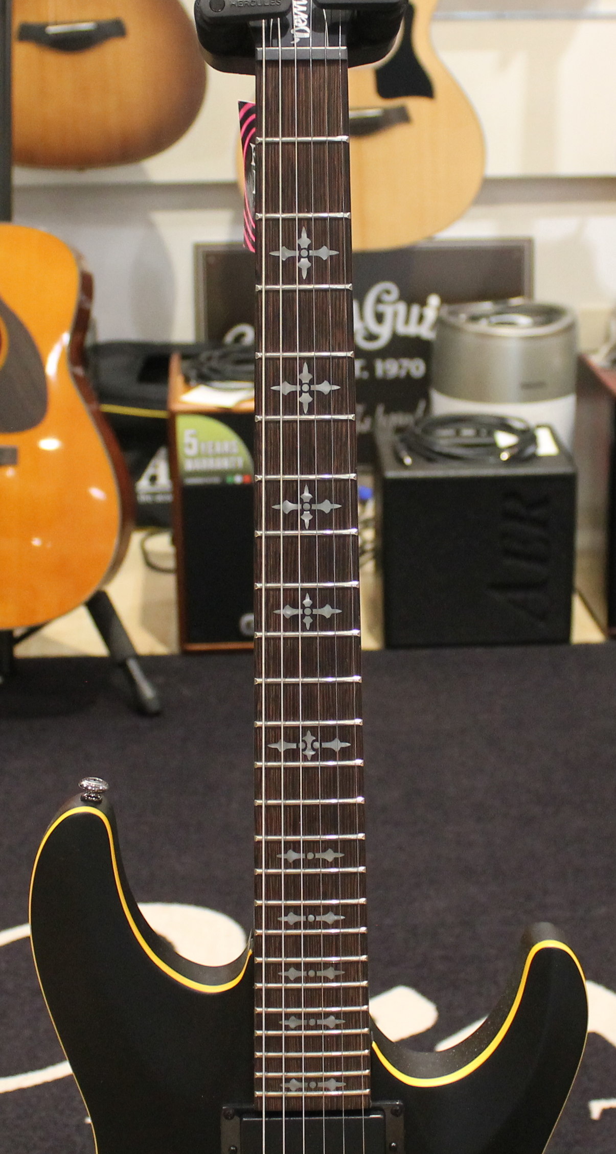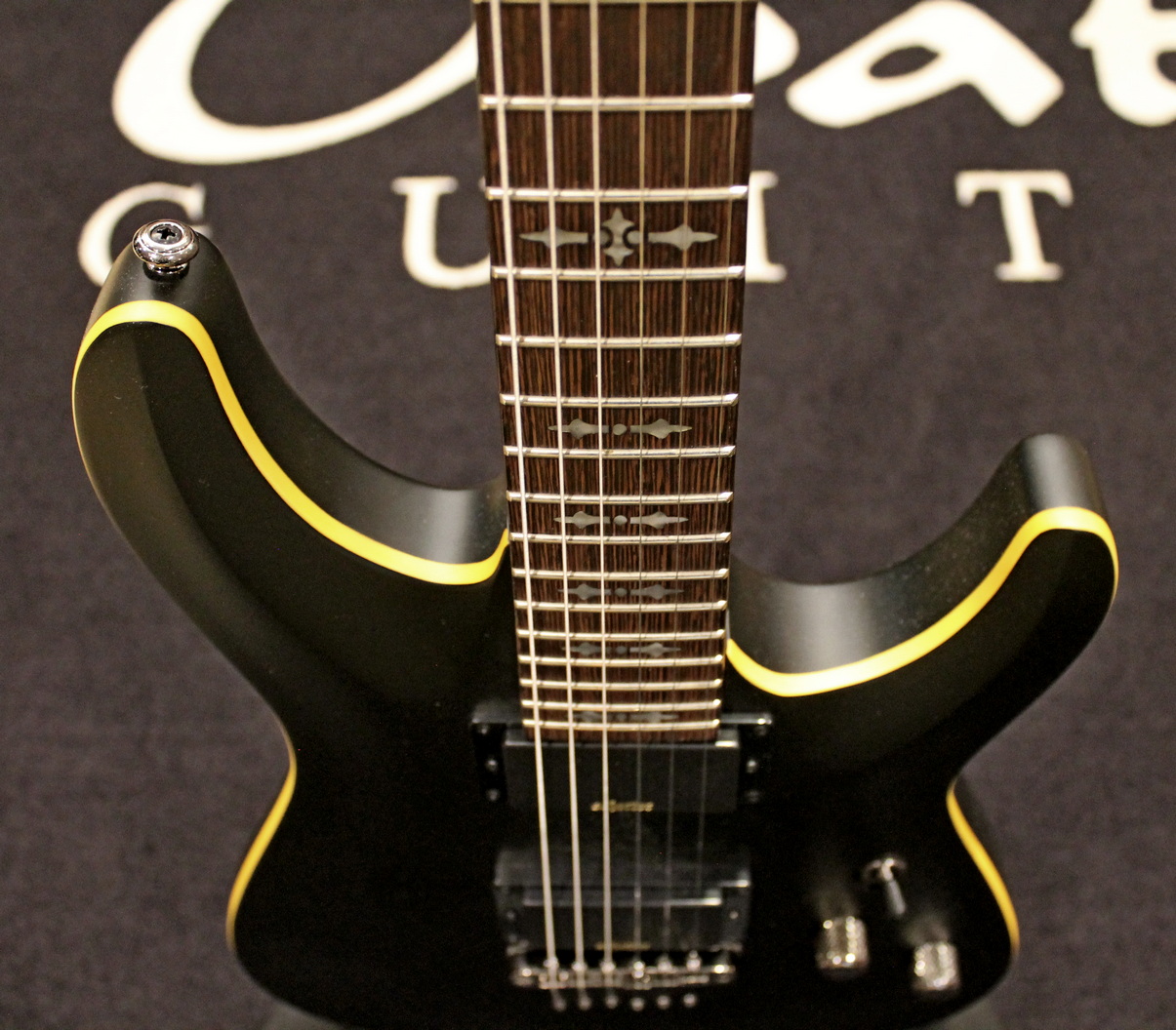 Demon Series guitars feature dual Schecter Active pickups, Schecter tuners, and a variety of bridges. With satin black finishes and some models featuring aged 1-ply binding, these guitars are for the darker souls! Gothic cross inlays and black chrome hardware complete the aesthetic appeal of these guitars, while maintaining the highest quality setup.