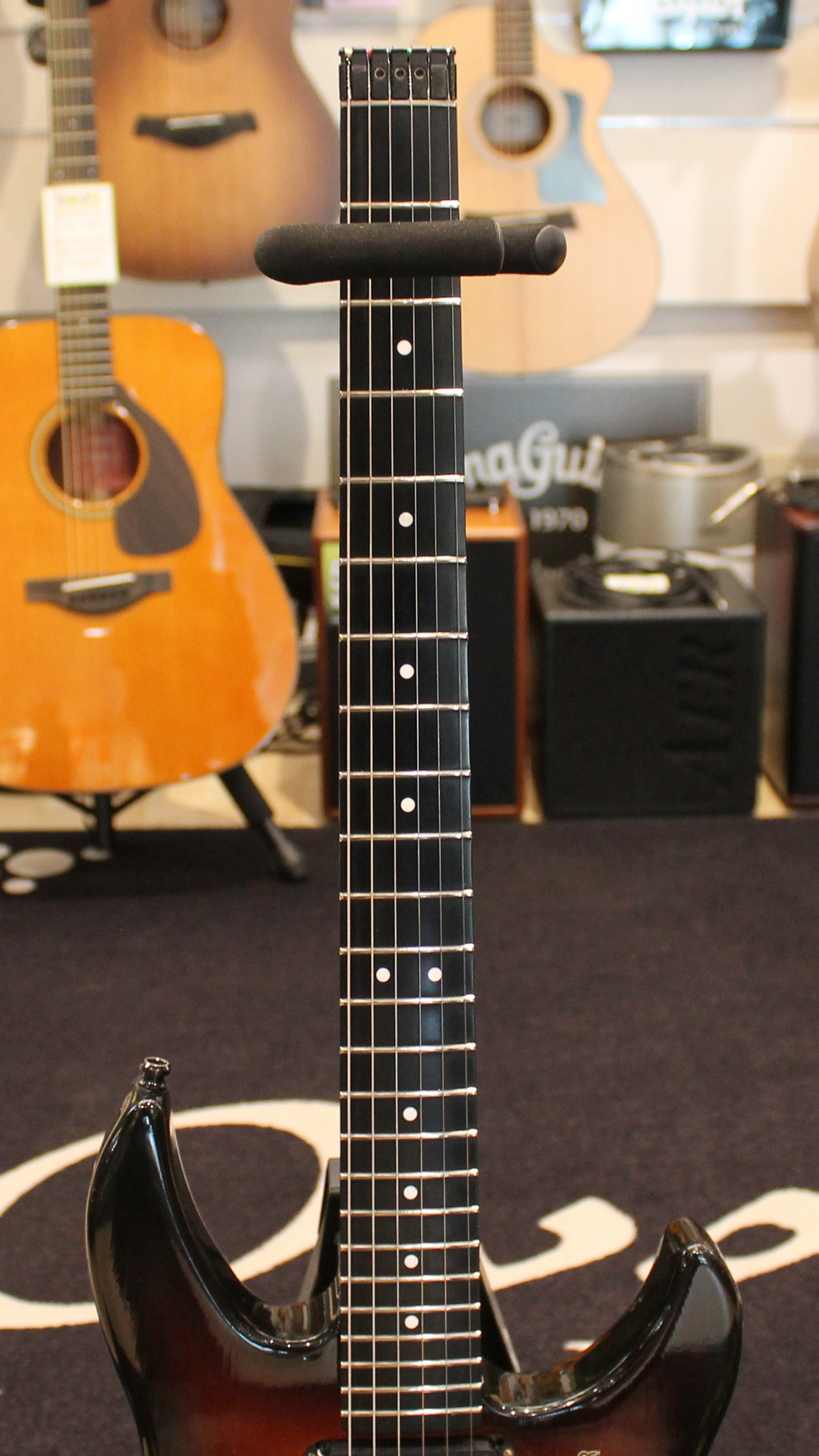 Graphite neck, graphite fingerboard, S-trem bridge, Di Marzio DP100 bridge pickup, 2 x Seymour Duncan Hot Rails middle/neck pickup, original gigbag, Tobacco Sunburst finish, Made in USA
