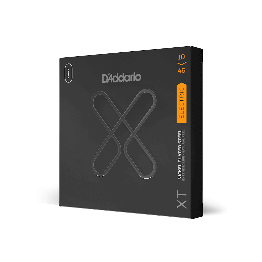 XT Nickel coated electric guitar strings offer enhanced break resistance, better pitch stability, and longer-lasting performance than standard electric strings. The XT coating, applied to each string in the set, delivers advanced corrosion resistance, while still retaining the bright tone and natural feel of the uncoated string. Beneath the coating, XT Nickel are made with a NY Steel core, nickel-plated steel wrap wire, and Fusion Twist technology, resulting in added resilience and tonal versatility, excellent for a wide range of musical styles. 10-46 Regular Light is our most popular XT gauge, providing a nice balance of tone and playability.