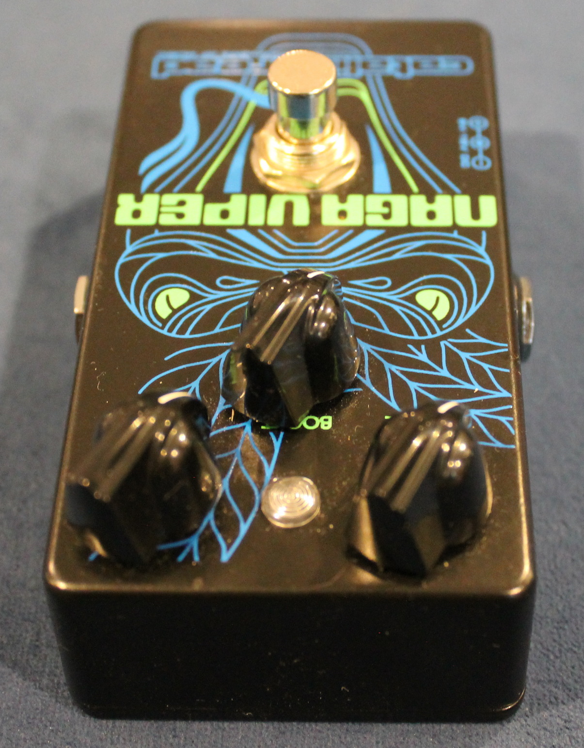 The Naga Viper is a booster that lives in the grand old tradition of the Dallas Rangemaster “Treble-Booster”. The original Rangemaster has been used by many influential British guitarists including Tony Iommi, Brian May, Marc Bolan, and KK Downing and Glen Tipton of Judas Priest. These guitarists, while completely unique in their styles, share the Rangemaster as the secret of boosting their cranked British tube amps into a juicy, harmonic-laden rock tone that always cuts through the mix and is ultimately proto-metal.