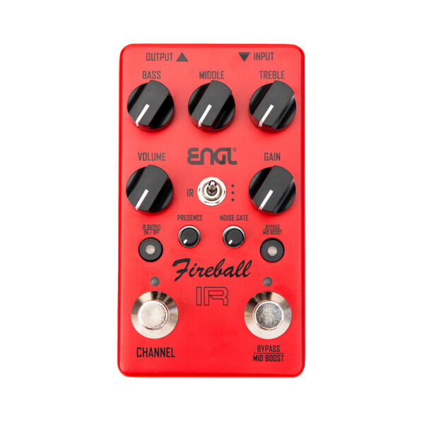 FIREBALL IR EP635 – Preamp 2 Canali per chitarra – Custom Pedal Series – Progettato per racchiudere i suoni della leggendaria testata Fireball in un pedale compatto – Due canali indipendenti totalmente programmabili (i settaggi vengono salvati in maniera independente) – IR loading mediante USB-C – Controlli: Bass + Middle + Treble + Volume + Gain + IR 1/2/3 + IR Output On/Off + Presence + Nois Gate + By Pass Mid Boost – Switch: 1x Canale 1/Canale 2 + 1x Mid Boost On/Off True Bypass – Ingressi: 1x Jack 6,35mm + 1x USB-C – Uscite: 1x Jack 6,35mm + 1x Jack 3,5mm (Cuffie) – Alimentazione: 9 V – Assorbimento: 300 mA.