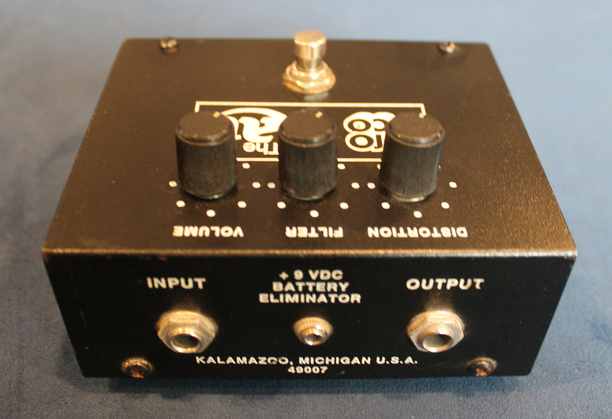 Guitar distortion/fuzz pedal, DISTORTION – FILTER – VOLUME control, 90s/2000s big box reissue. Serial number 114028. Texas Instruments OP07DP opamp. Made in USA