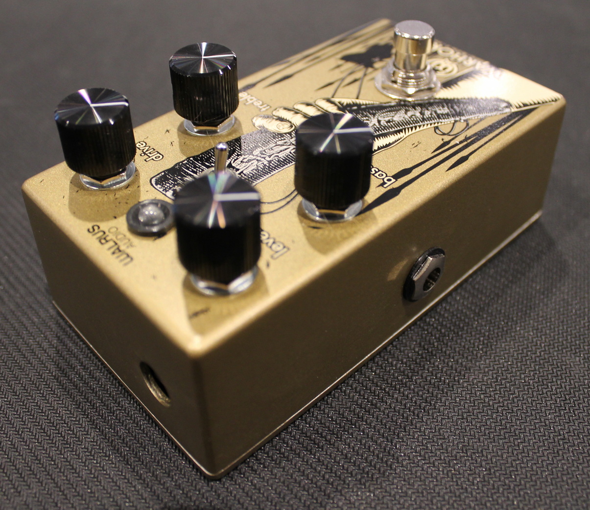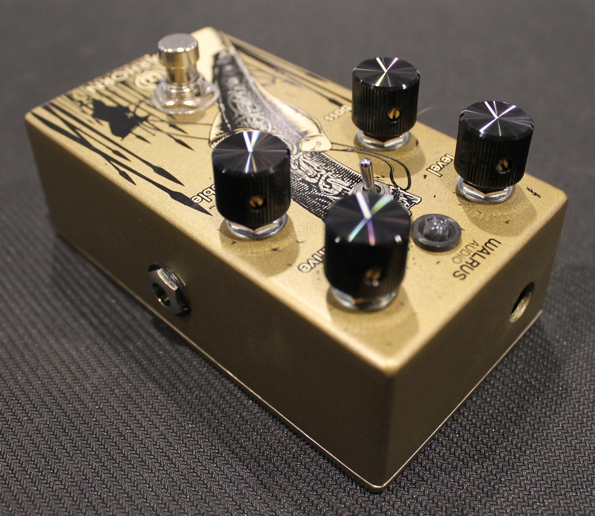 The Walrus Audio Warhorn Overdrive is an overdrive with an extremely flexible character, specifically designed for the midrange of the guitar signal. Two switchable clipping circuits can be called up via the Compression Switch. The top switch position provides a tight compressed sound with which high-gain amps for modern metal sounds can be wonderfully switched on. Alternatively, organic and dynamic voicings for classic Texas Blues cables can be recalled in the lower switch position. For more precise frequency band adjustment, a 2-band equalizer is available, which uses the bass and treble knobs to affect the low end and highs of the signal.